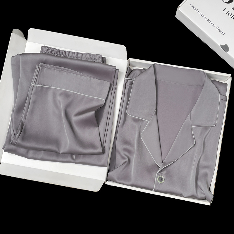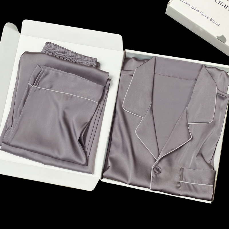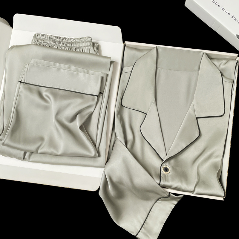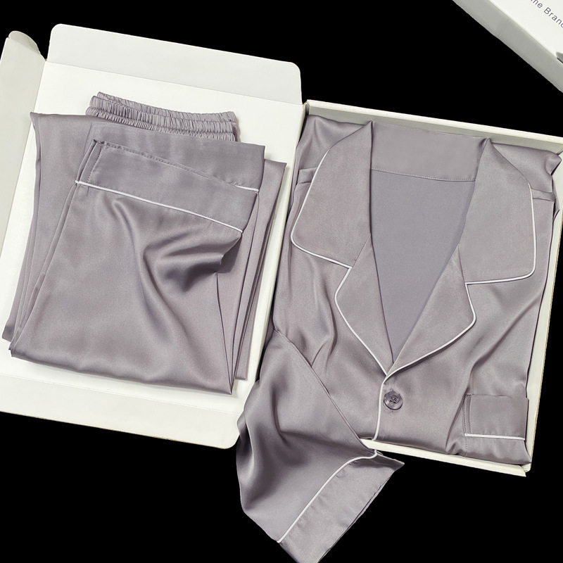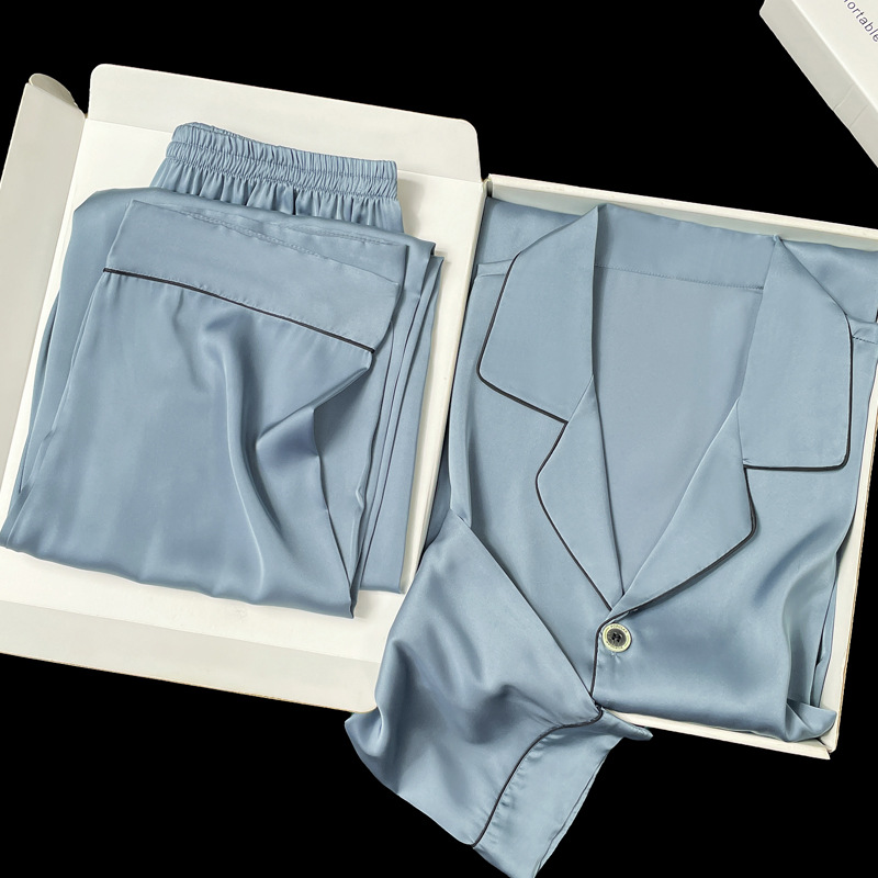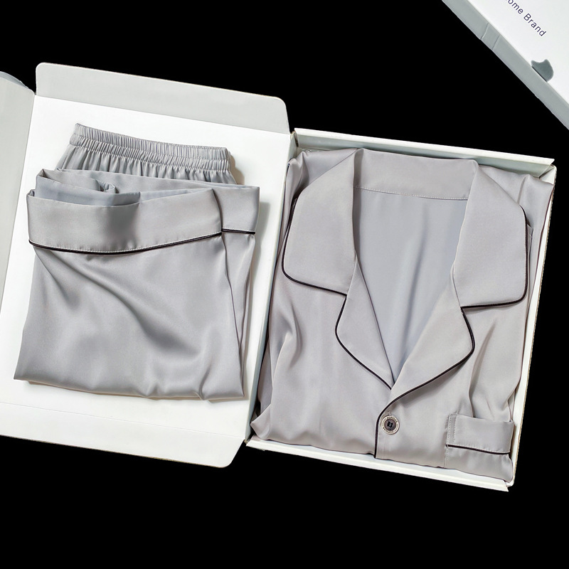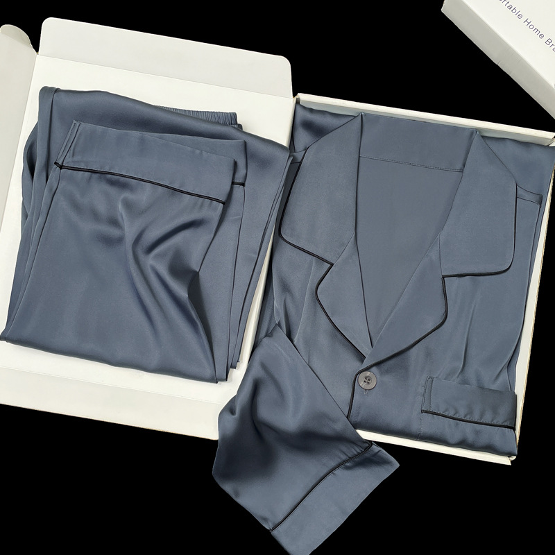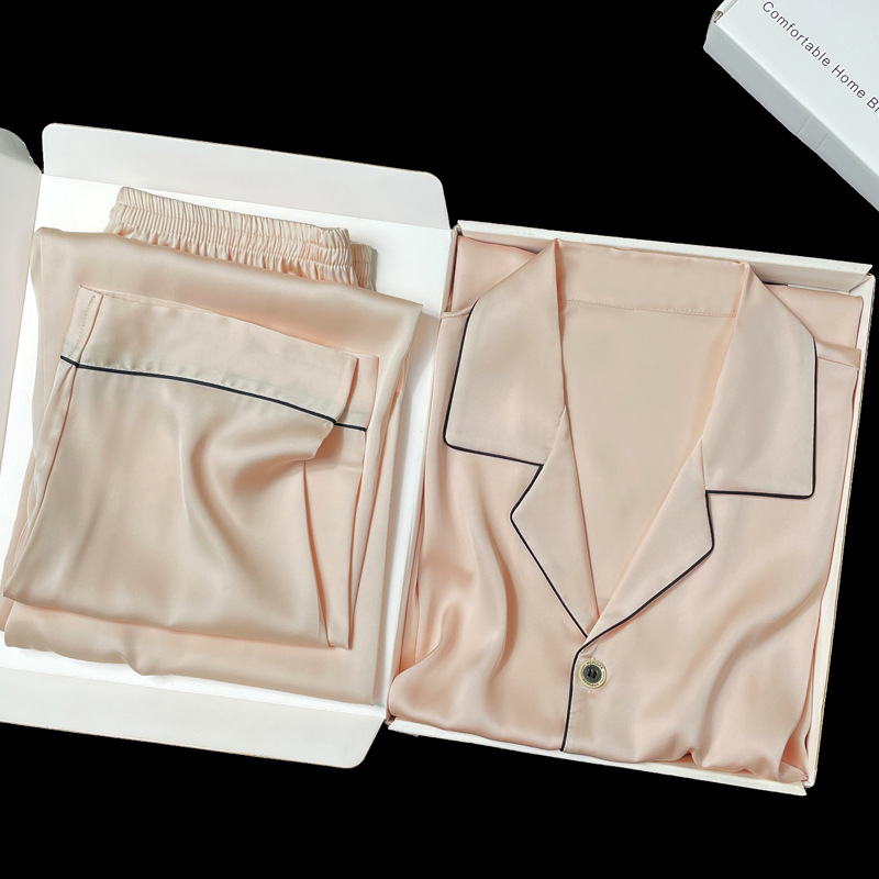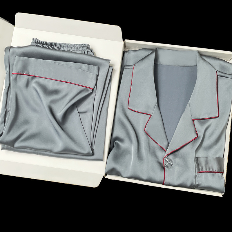아이스 실크 잠옷 남성용 반팔 반바지 여름 얇은 얼음과 얼음 실크 살구 컬러 프론트 버튼 새틴 시뮬레이션 실크 대형 홈스토어 가기