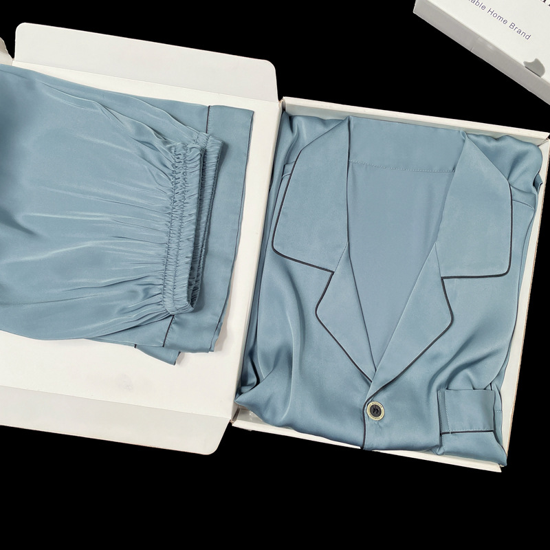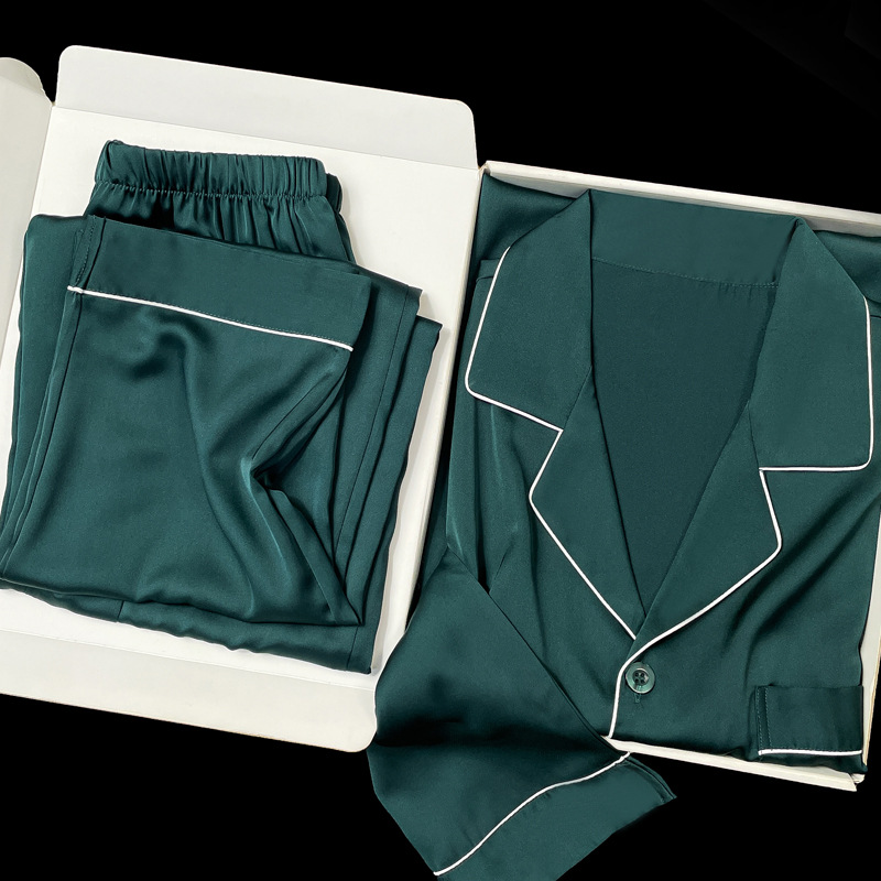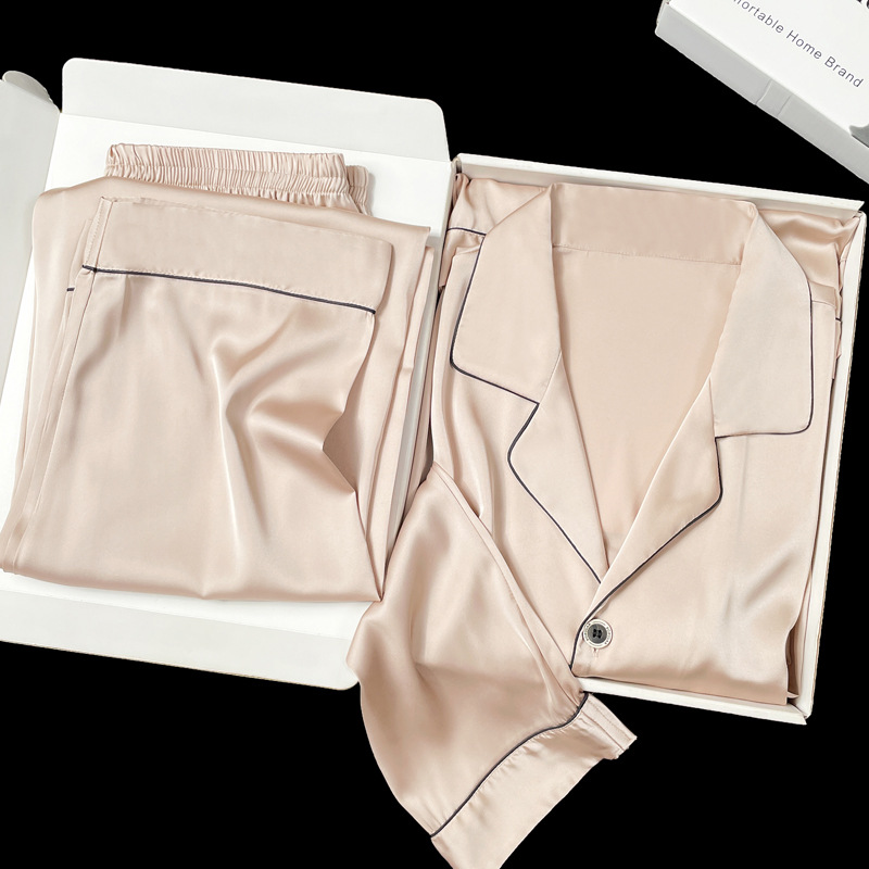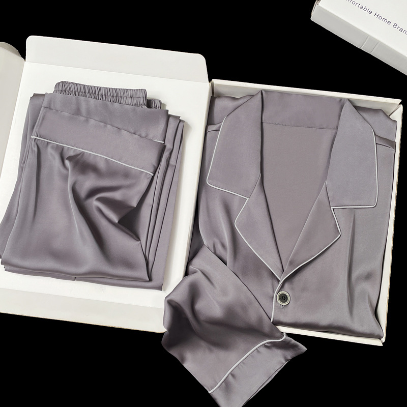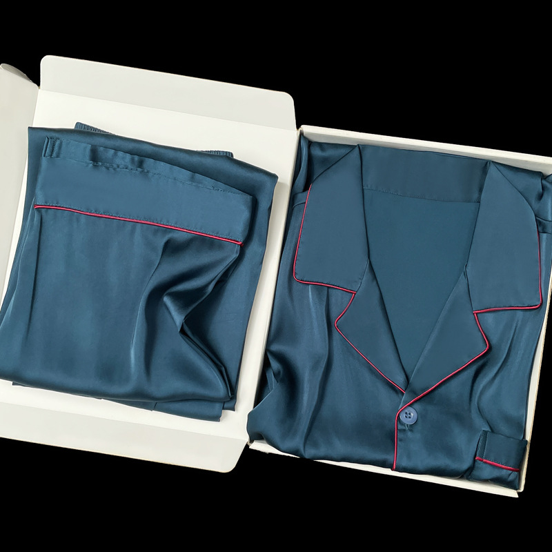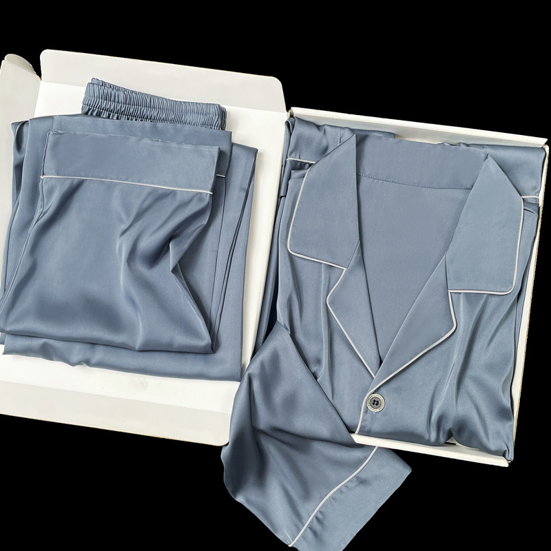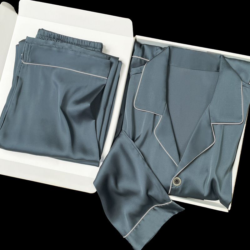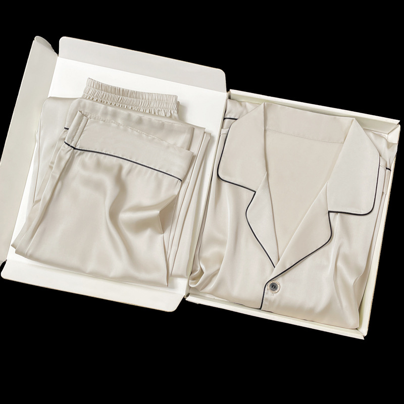 아이스 실크 잠옷 남성용 반팔 반바지 여름 얇은 얼음과 얼음 실크 살구 컬러 프론트 버튼 새틴 시뮬레이션 실크 대형 홈스토어 가기