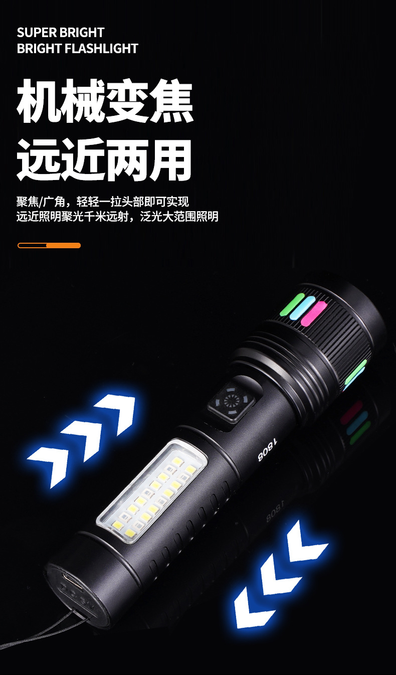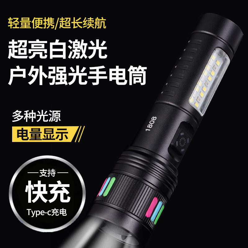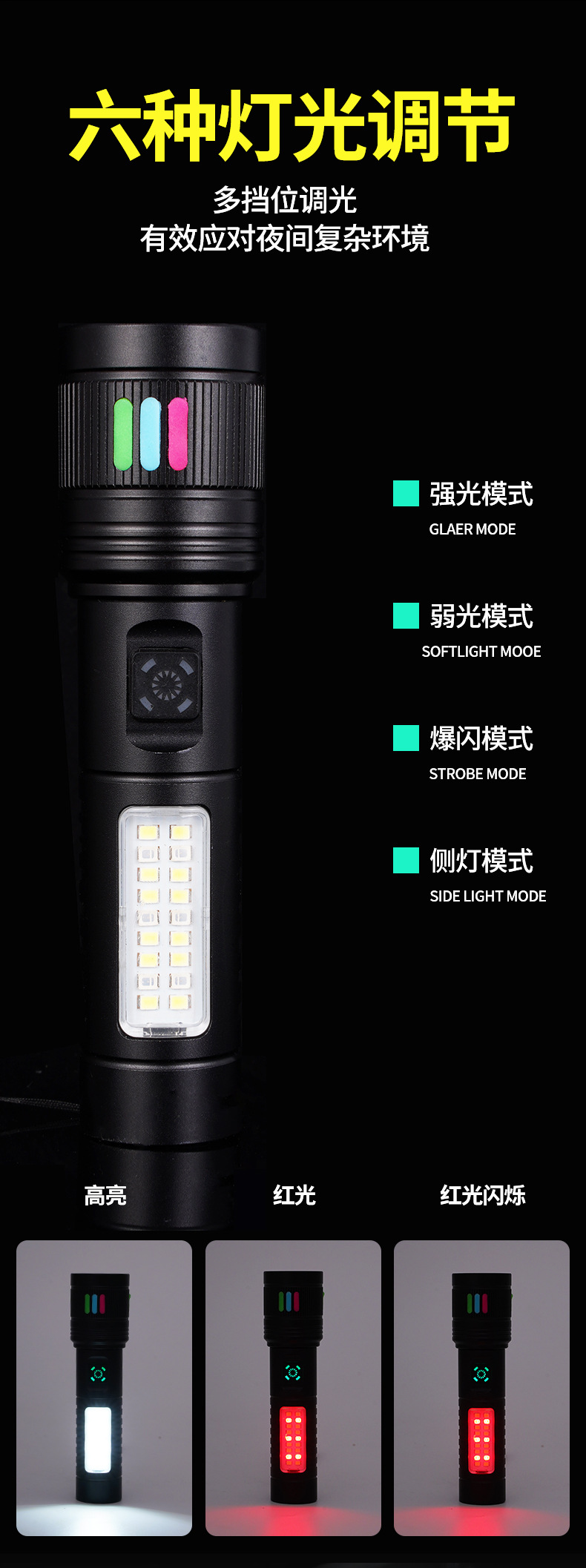 국경 간 다기능 손전등 COB 빨간색과 흰색 경고등 텔레스코픽 줌 흰색 레이저 LED 작업 조명 휴대용스토어 가기