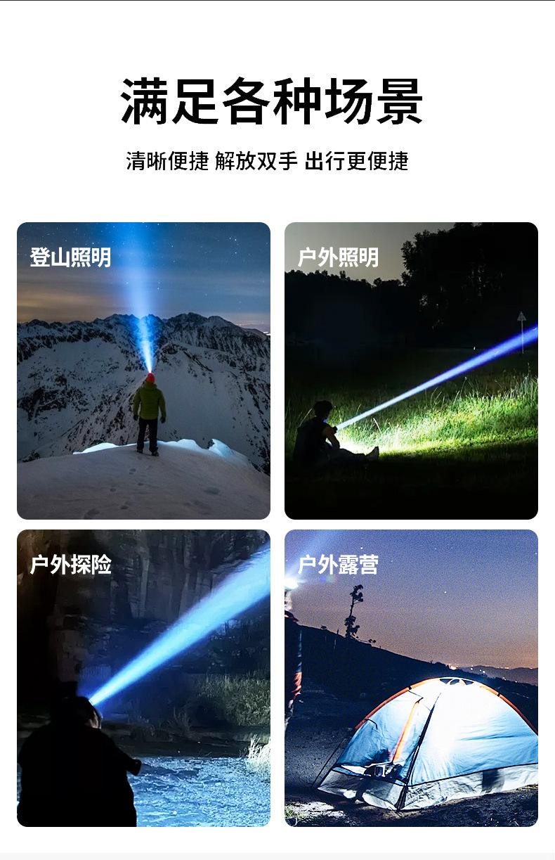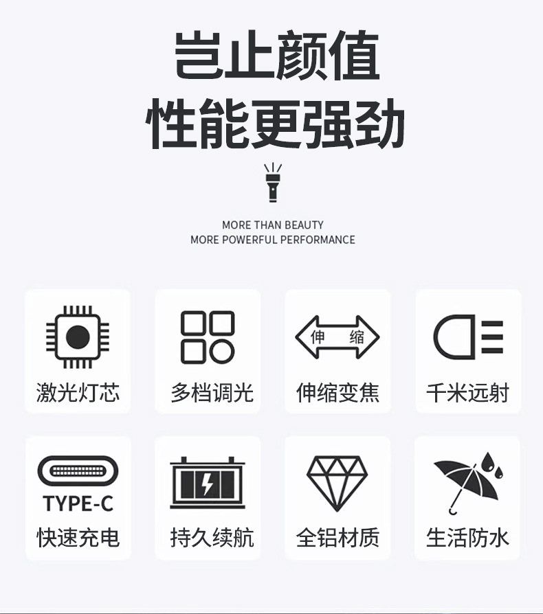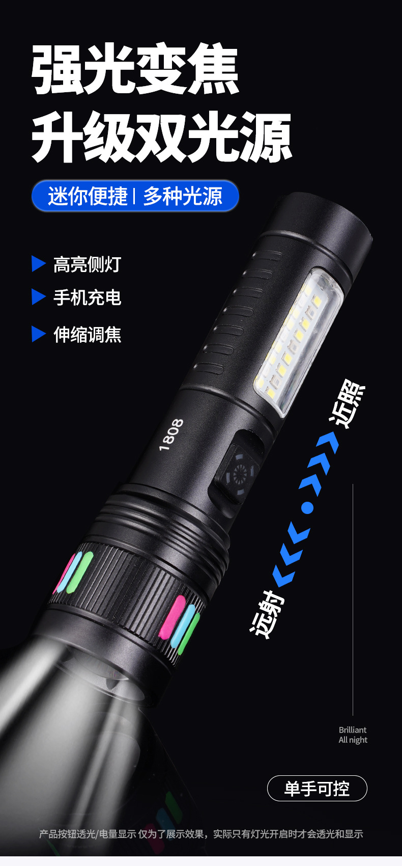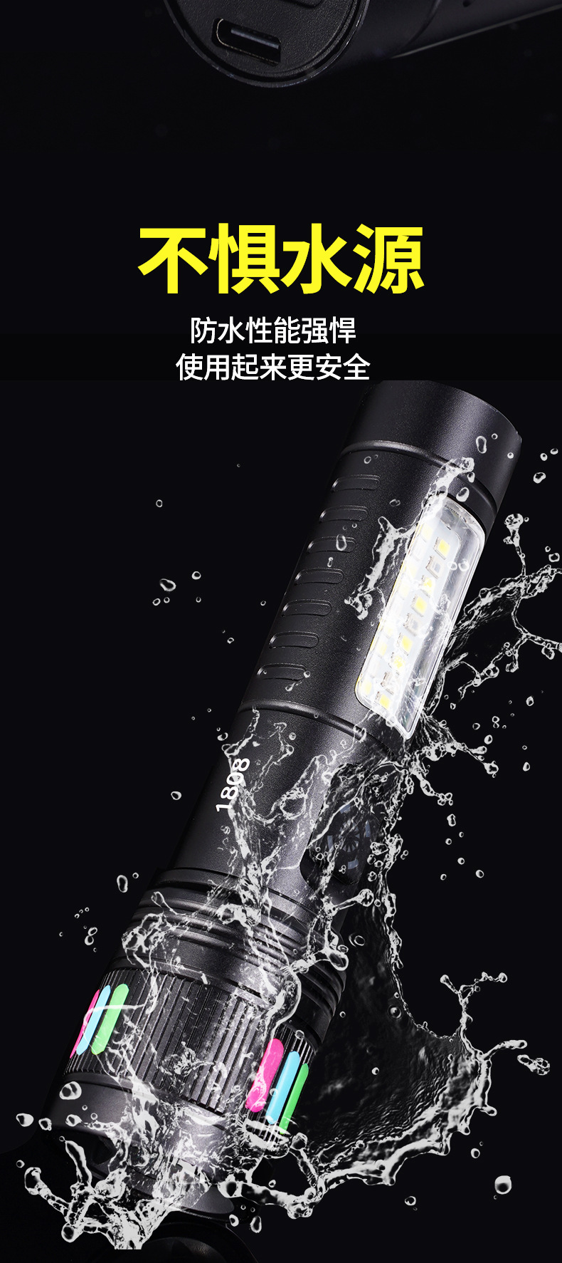 국경 간 다기능 손전등 COB 빨간색과 흰색 경고등 텔레스코픽 줌 흰색 레이저 LED 작업 조명 휴대용스토어 가기