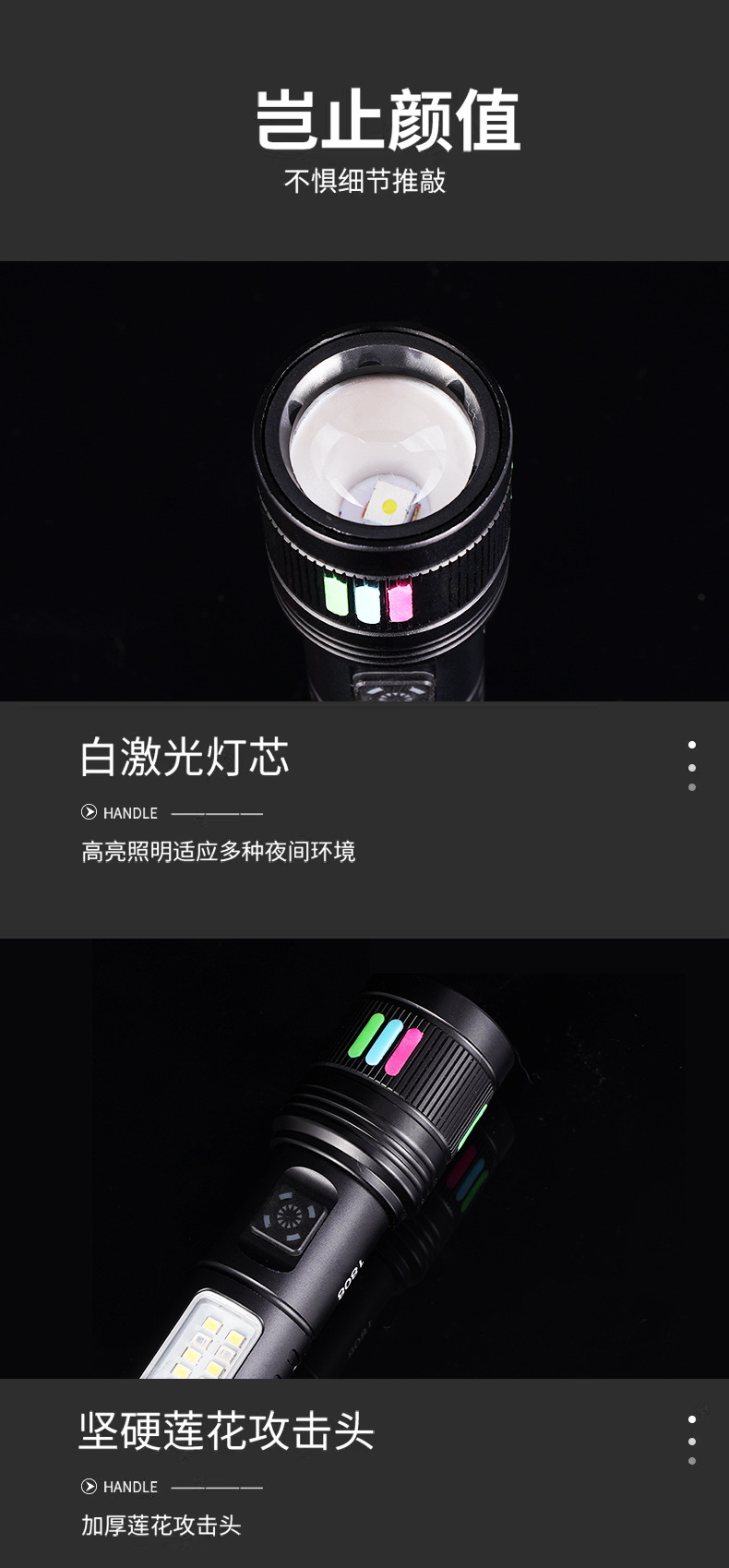 국경 간 다기능 손전등 COB 빨간색과 흰색 경고등 텔레스코픽 줌 흰색 레이저 LED 작업 조명 휴대용