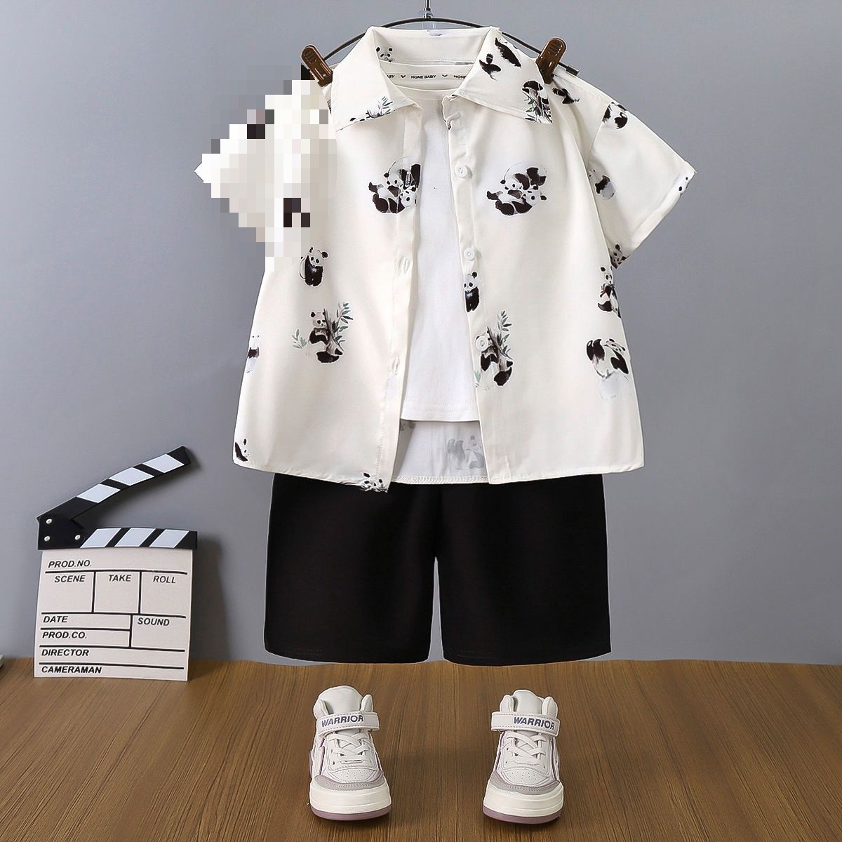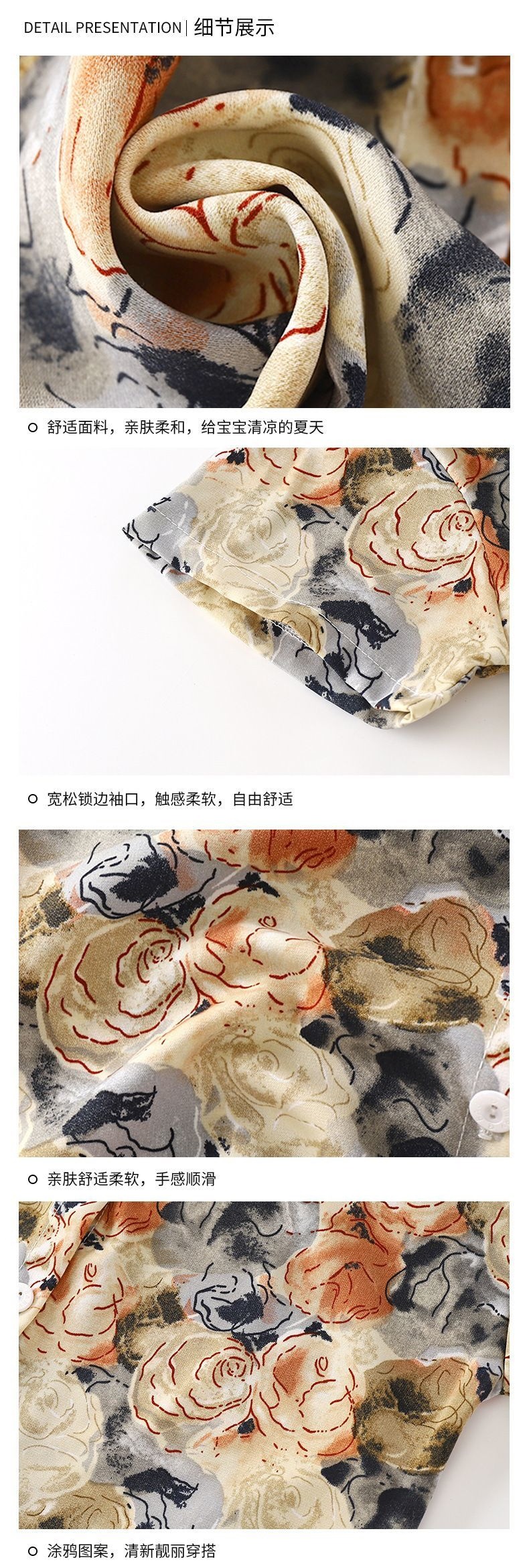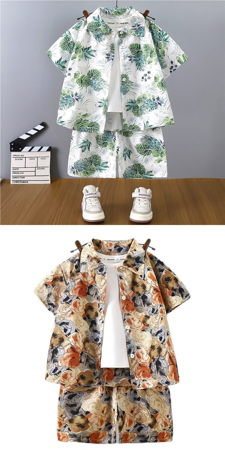 여름 어린이 셔츠 정장 소년 홍콩 스타일 캐주얼 반팔 반바지 남성 비치 어린이 꽃 셔츠 투피스 양복