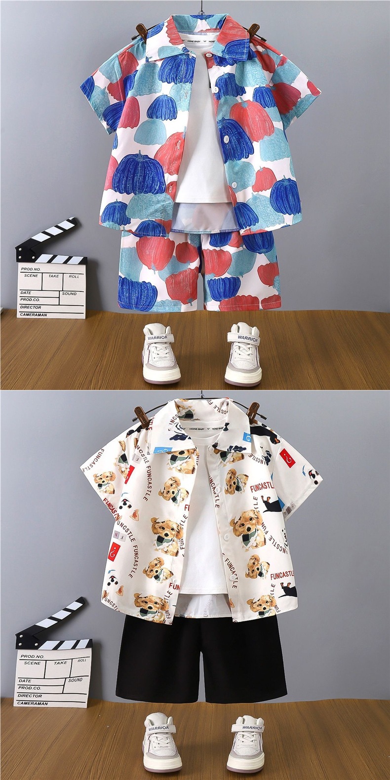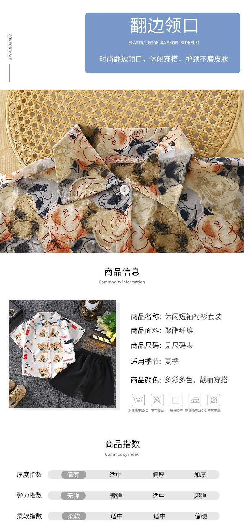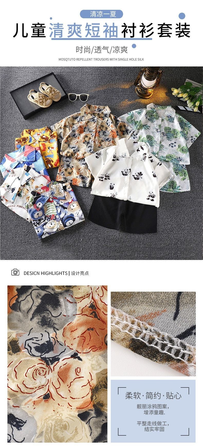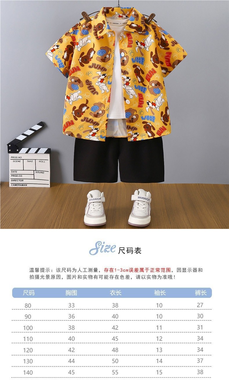 여름 어린이 셔츠 정장 소년 홍콩 스타일 캐주얼 반팔 반바지 남성 비치 어린이 꽃 셔츠 투피스 양복스토어 가기