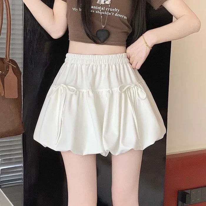 여성용 보우 버드 스커트 2025 봄 여름 새로운 스타일 하이 웨이스트 슬리밍 A 라인 푹신한 짧은 스커트