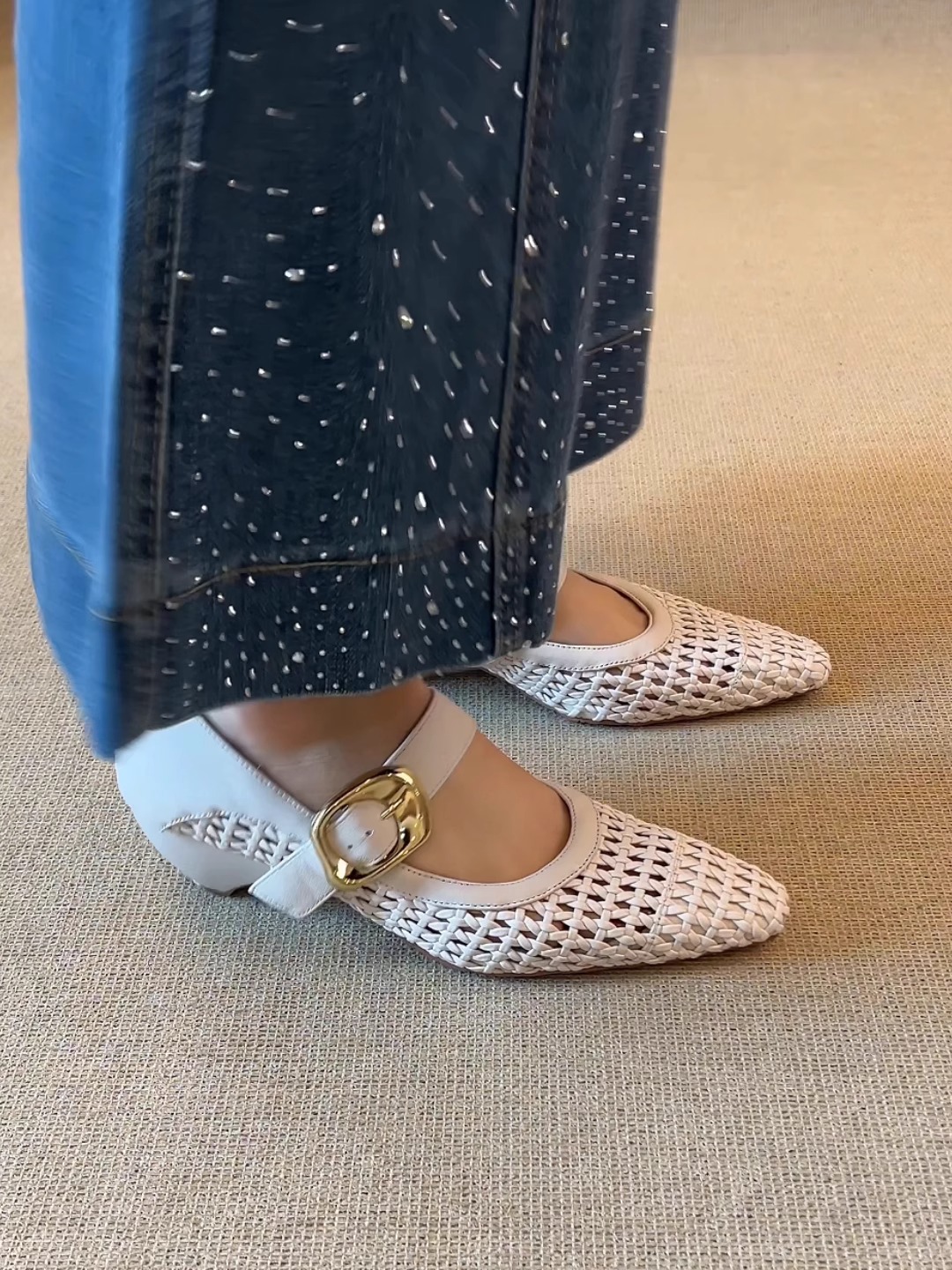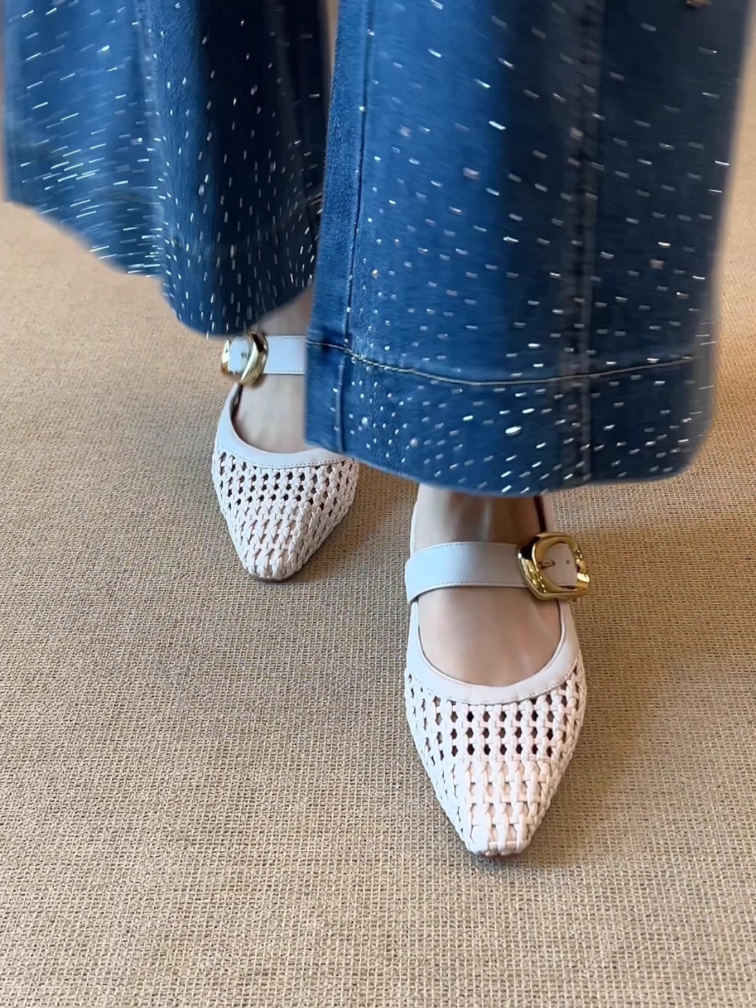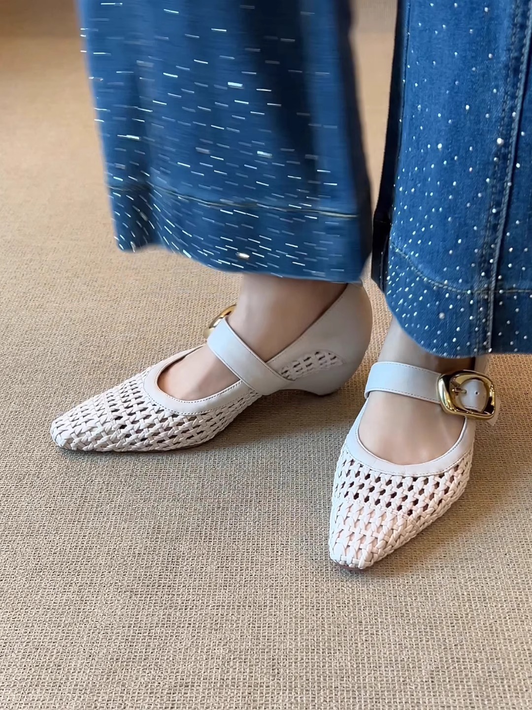 Cowhide 버전 ~ 패션 조커 우아한 금속 버클 포인팅 싱글 레이어 신발 여성용 짠 빈 통기성 얕은 샌들스토어 가기