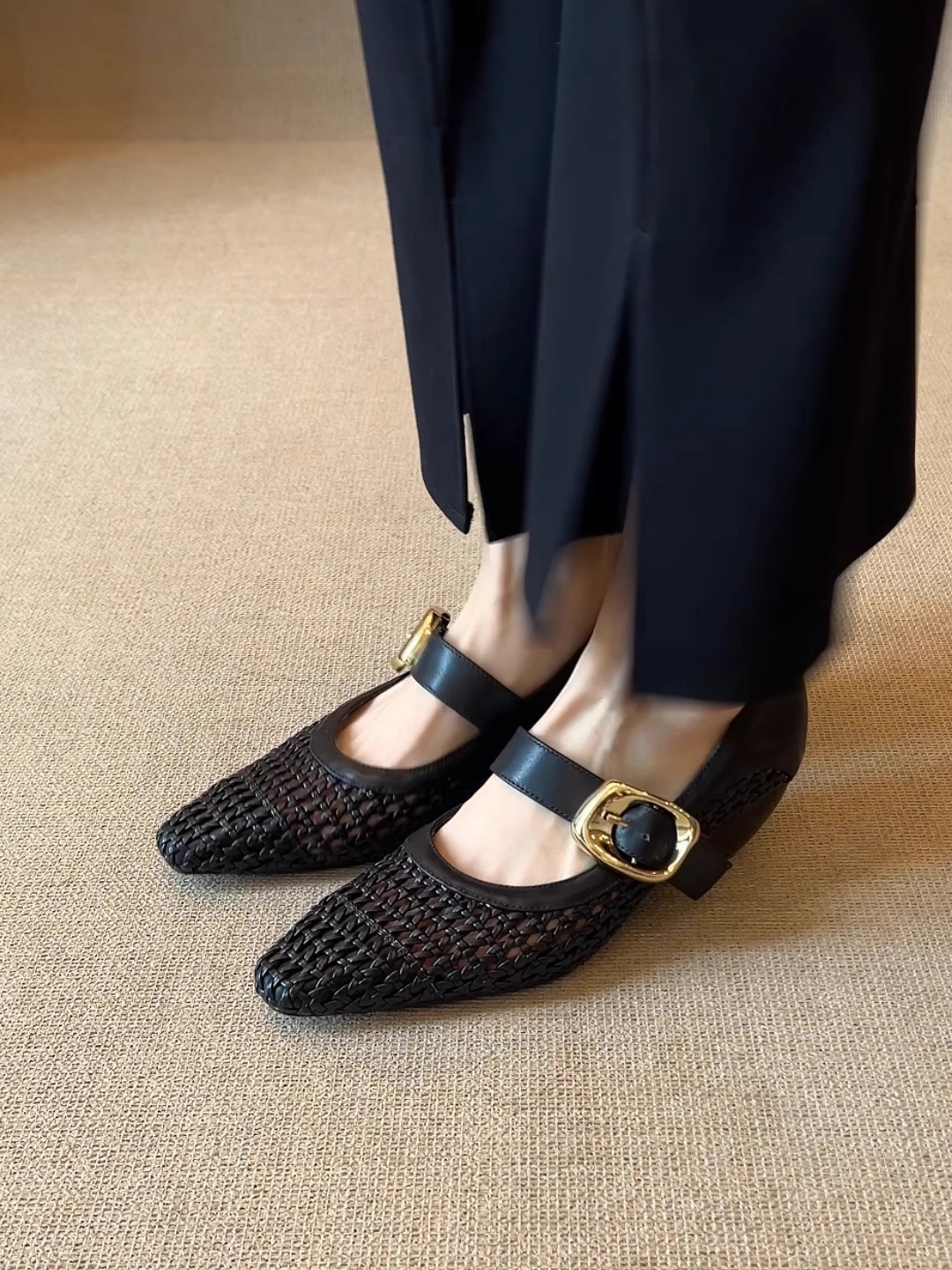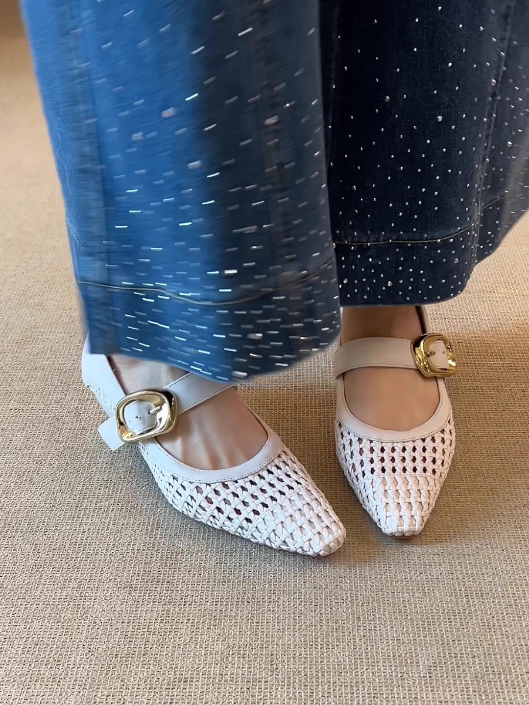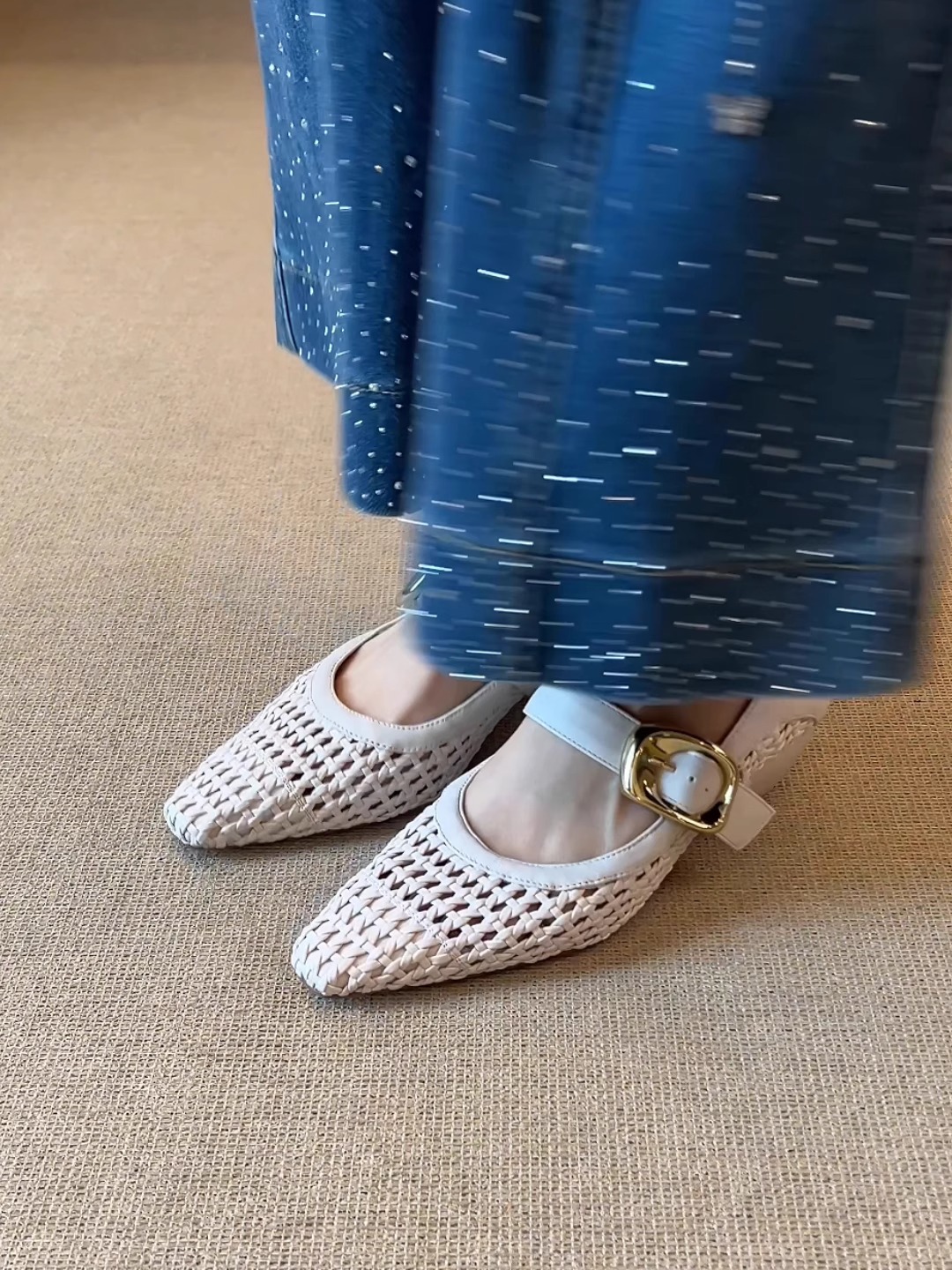 Cowhide 버전 ~ 패션 조커 우아한 금속 버클 포인팅 싱글 레이어 신발 여성용 짠 빈 통기성 얕은 샌들스토어 가기