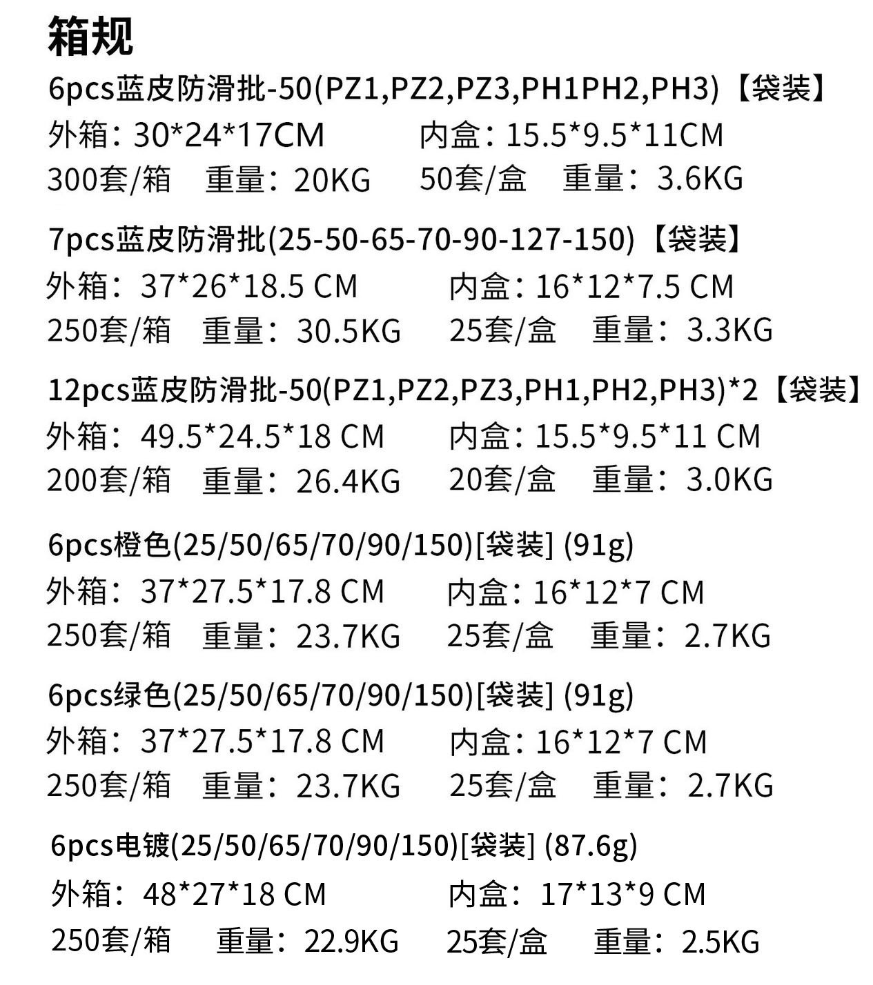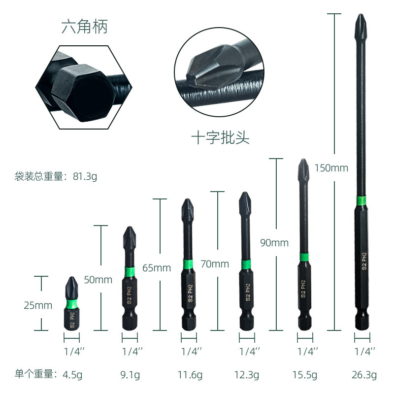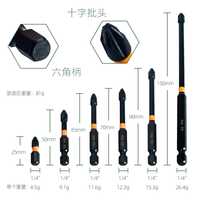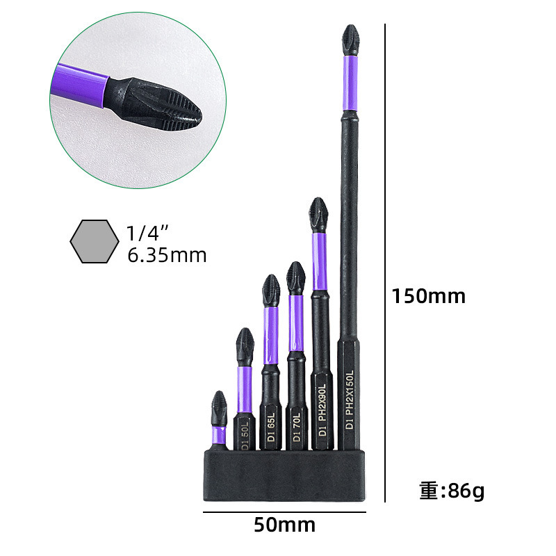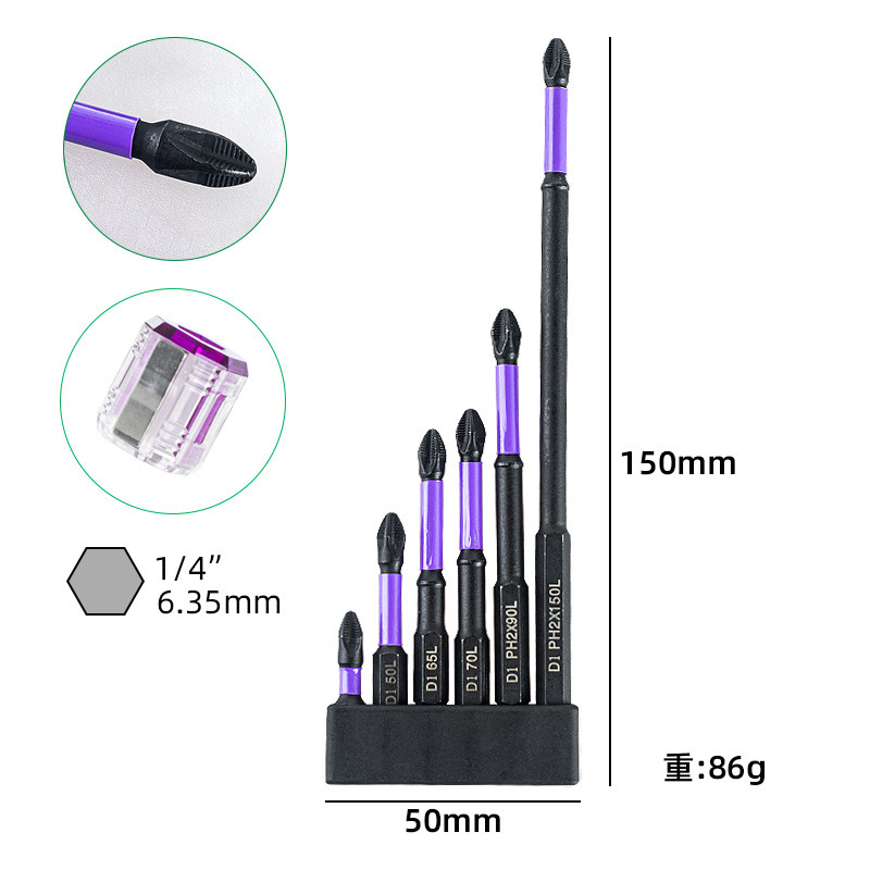 • 8개[보라색 미끄럼 방지 임팩트 배치(25/50/65/70/90/150) + 수납 베이스 + 육각 손잡이 및 자화 장치] 91.5g