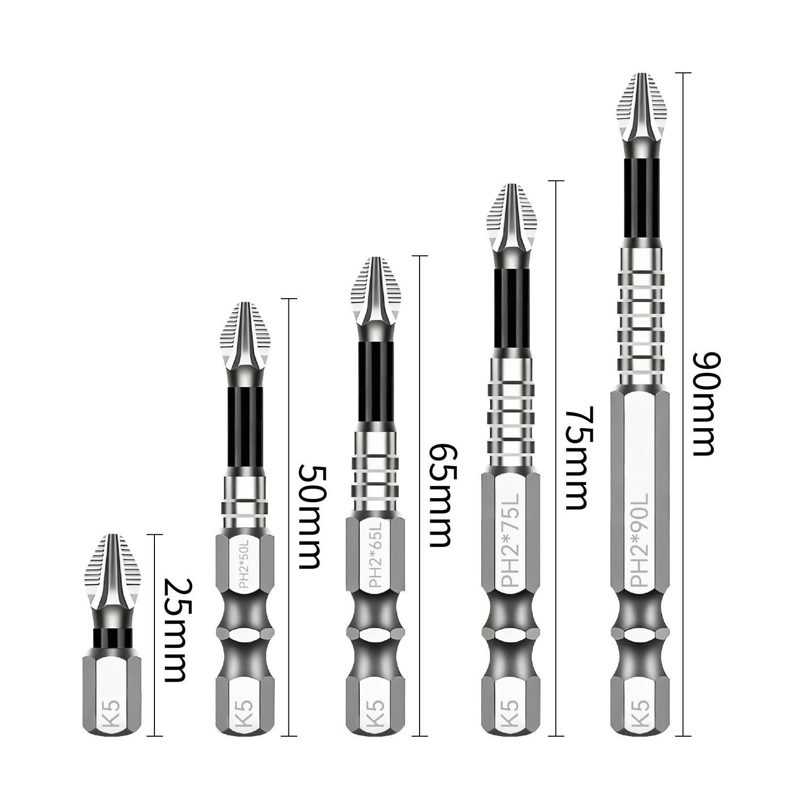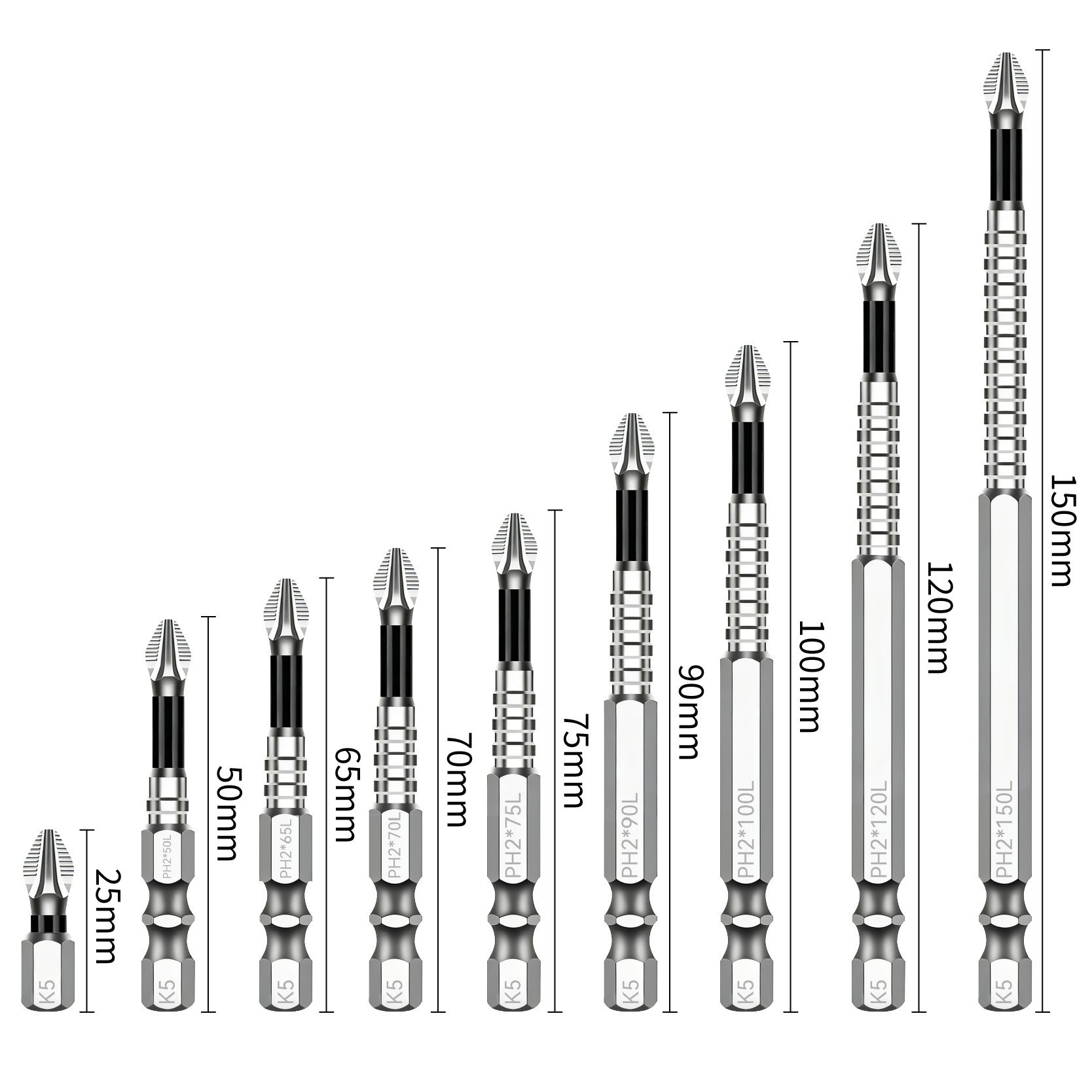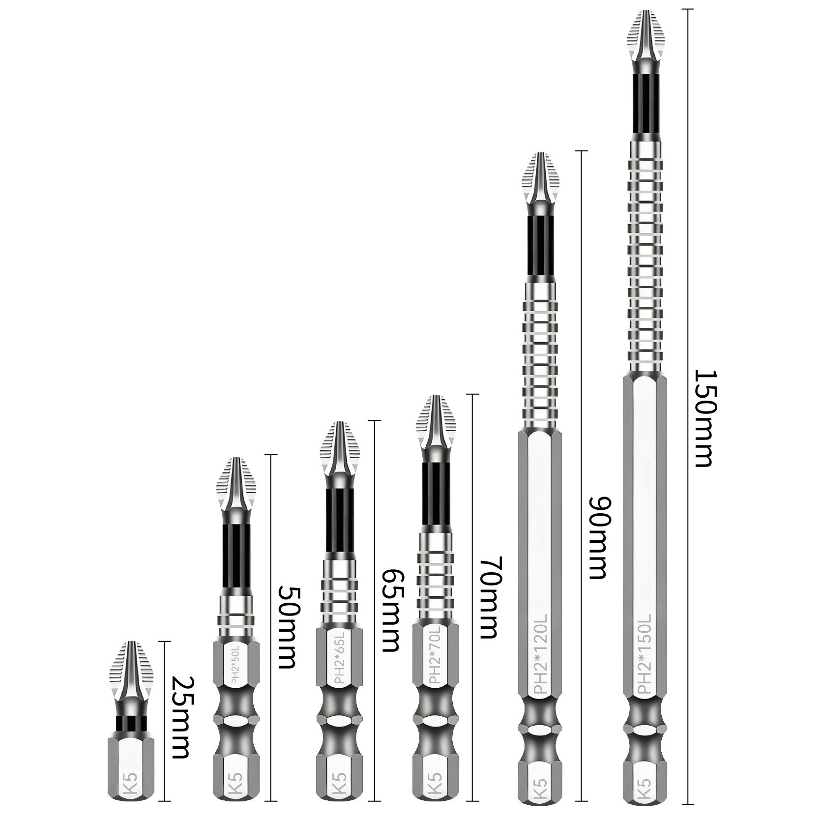 • 8개[보라색 미끄럼 방지 임팩트 배치(25/50/65/70/90/150) + 수납 베이스 + 육각 손잡이 및 자화 장치] 91.5g