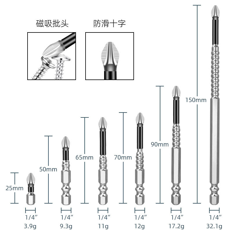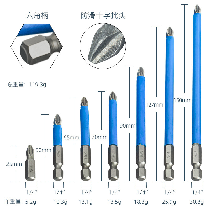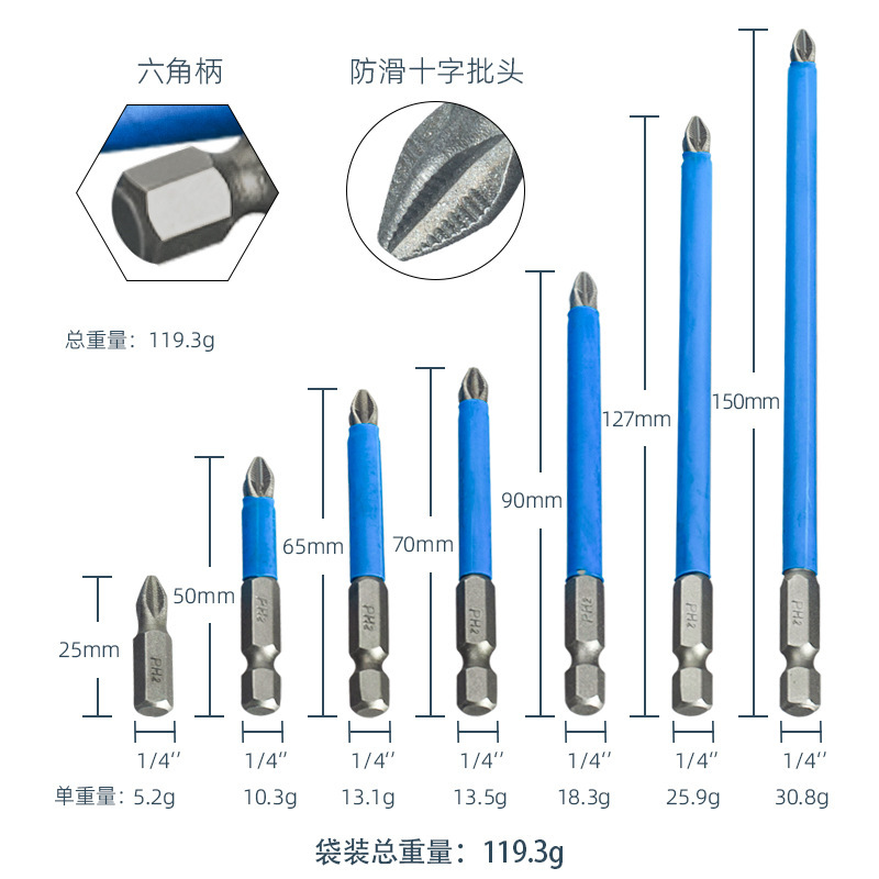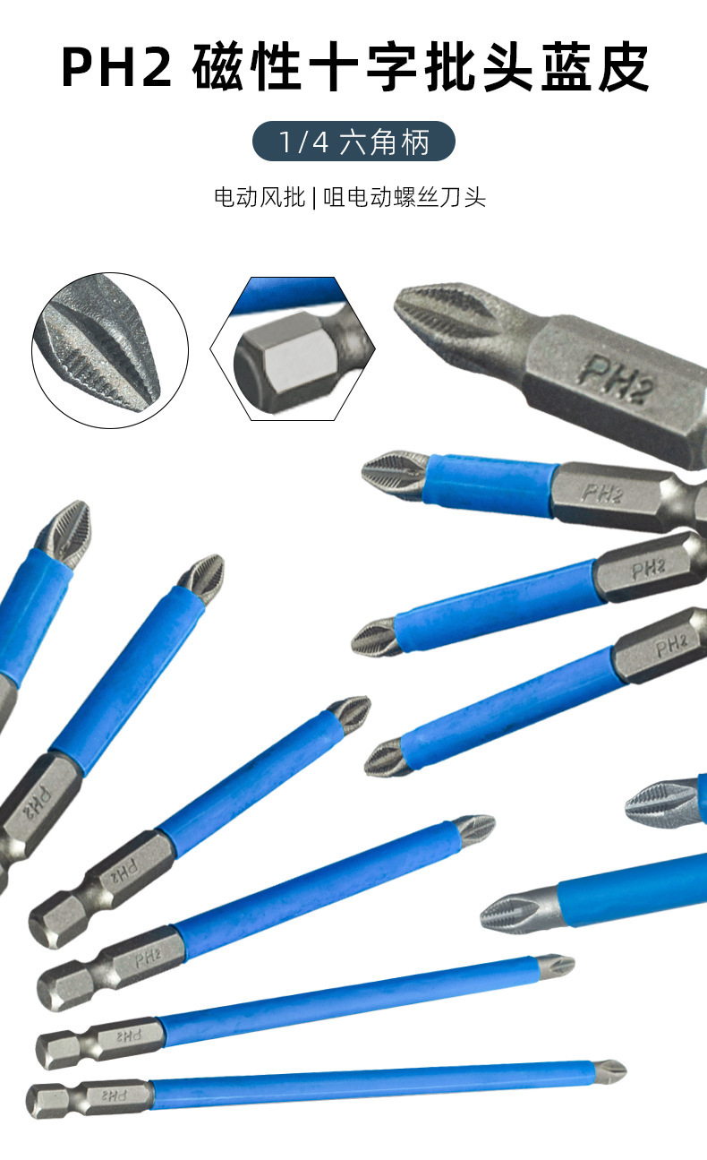 국경 간 미끄럼 방지 비트, 전기 에어 비트, 전기 드라이버 비트, 마그네틱 비트, PH2 블루 가죽 크로스 비트스토어 가기