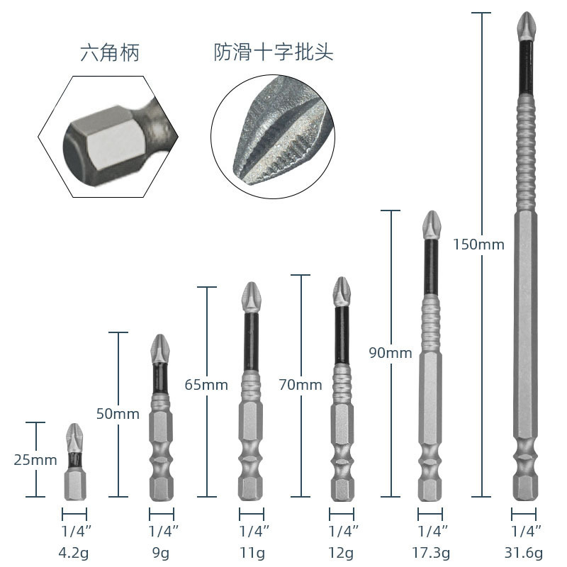 국경 간 미끄럼 방지 비트, 전기 에어 비트, 전기 드라이버 비트, 마그네틱 비트, PH2 블루 가죽 크로스 비트