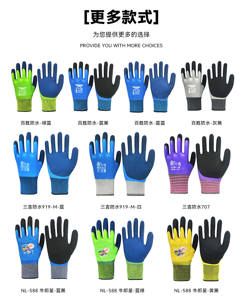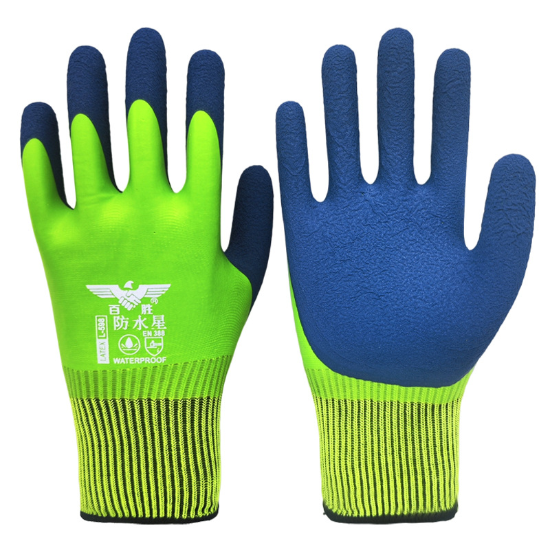 • Yum 13핀 방수 스타 라텍스 폼 세미 장갑 녹색 및 파란색