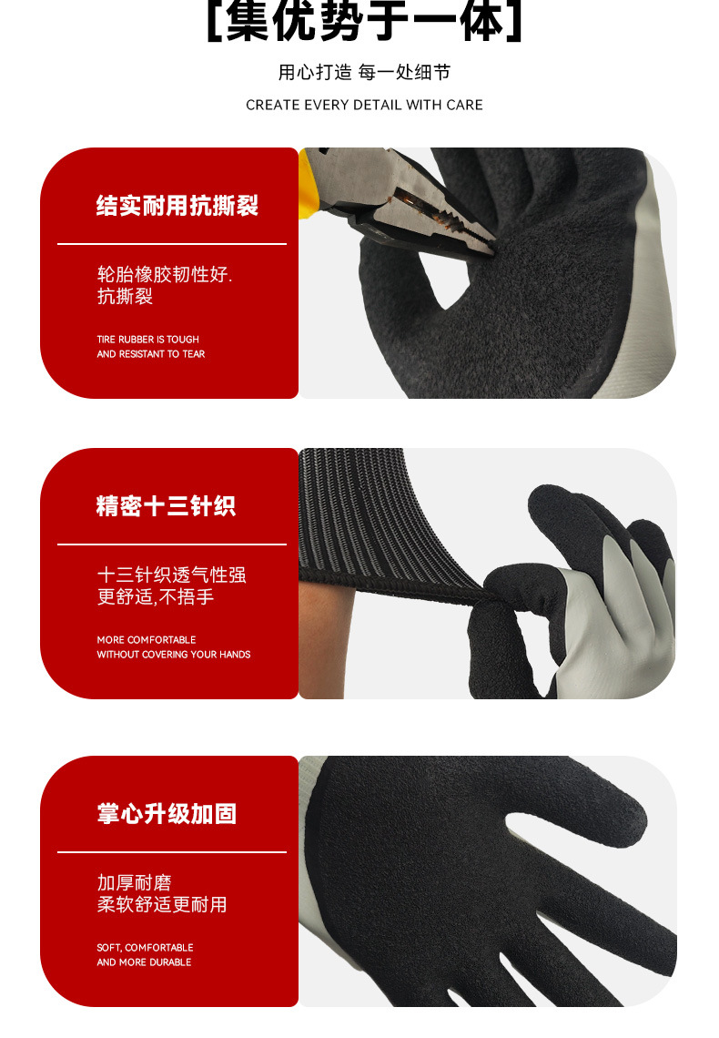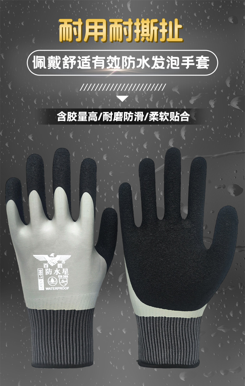 • Yum 13핀 방수 스타 라텍스 폼 세미 행잉 장갑 그레이 및 블랙