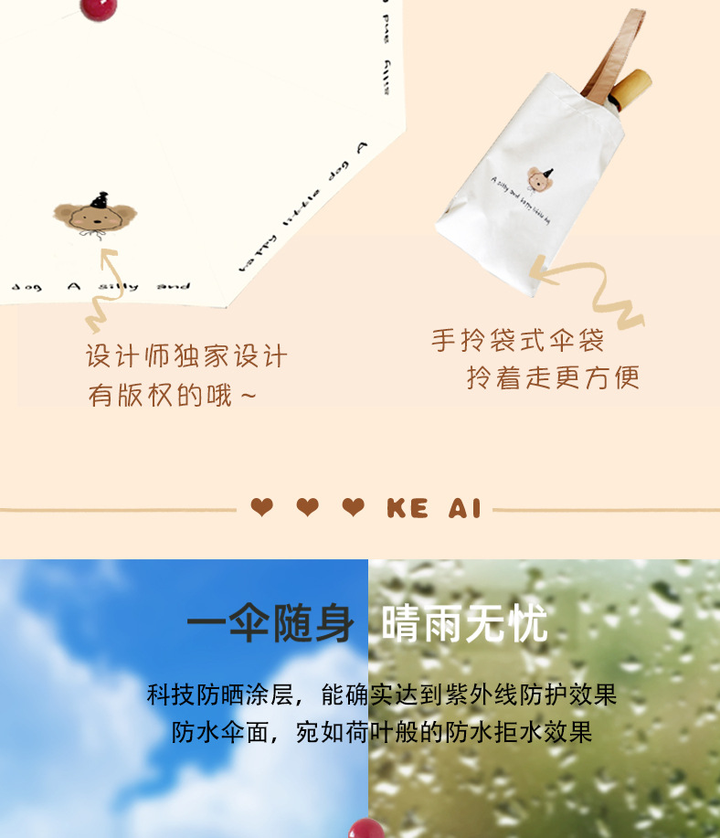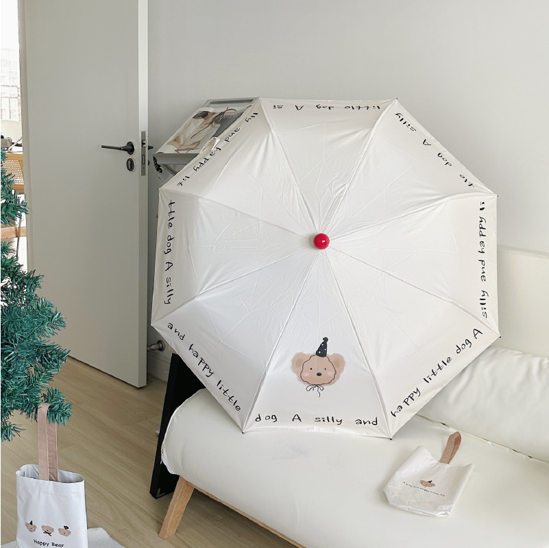 여성용 빨간 코 우산, 비가 오나 눈이 오나, 귀엽고 컴팩트하며 휴대성이 뛰어난 접이식 비닐 자외선 차단 우산, 학생용스토어 가기