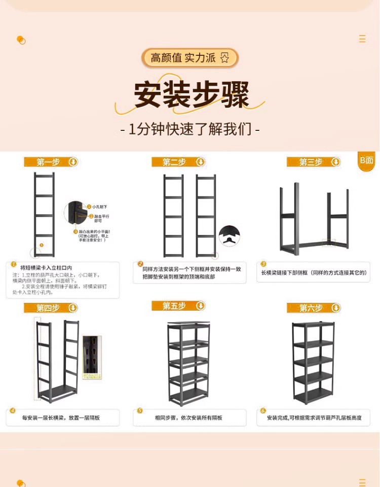 가정용 강철 저장 선반 바닥 다층 창고 발코니 거실 침실 잡화 보관 선반