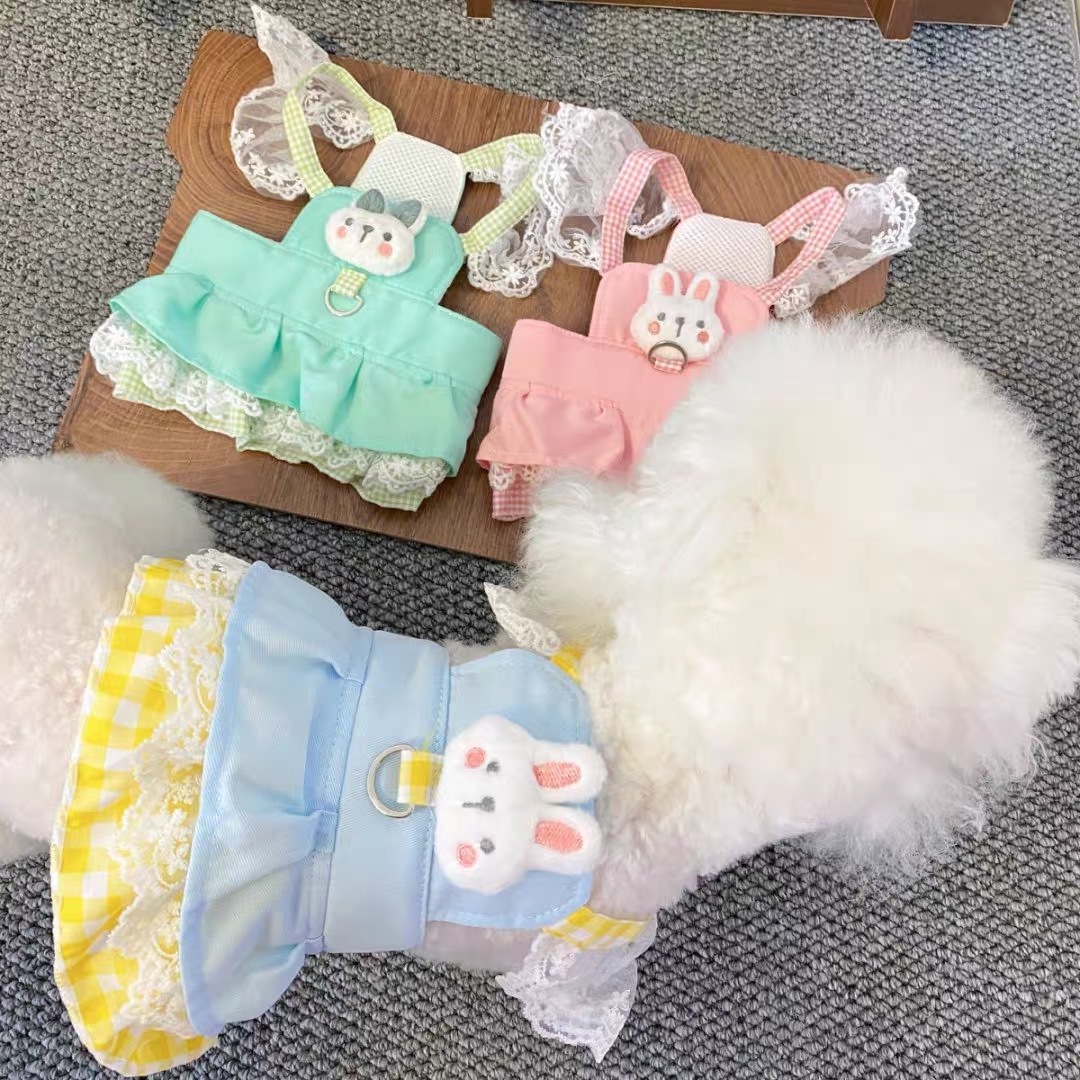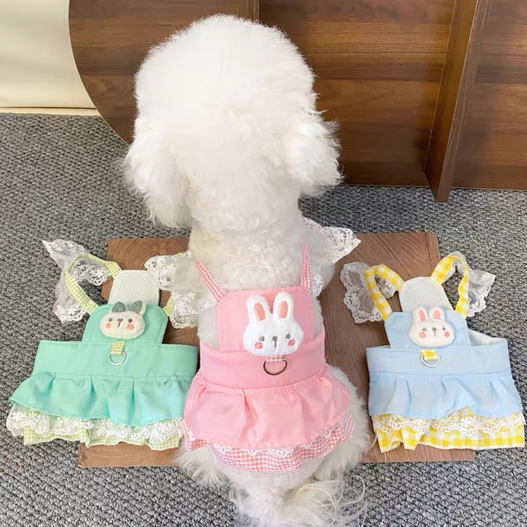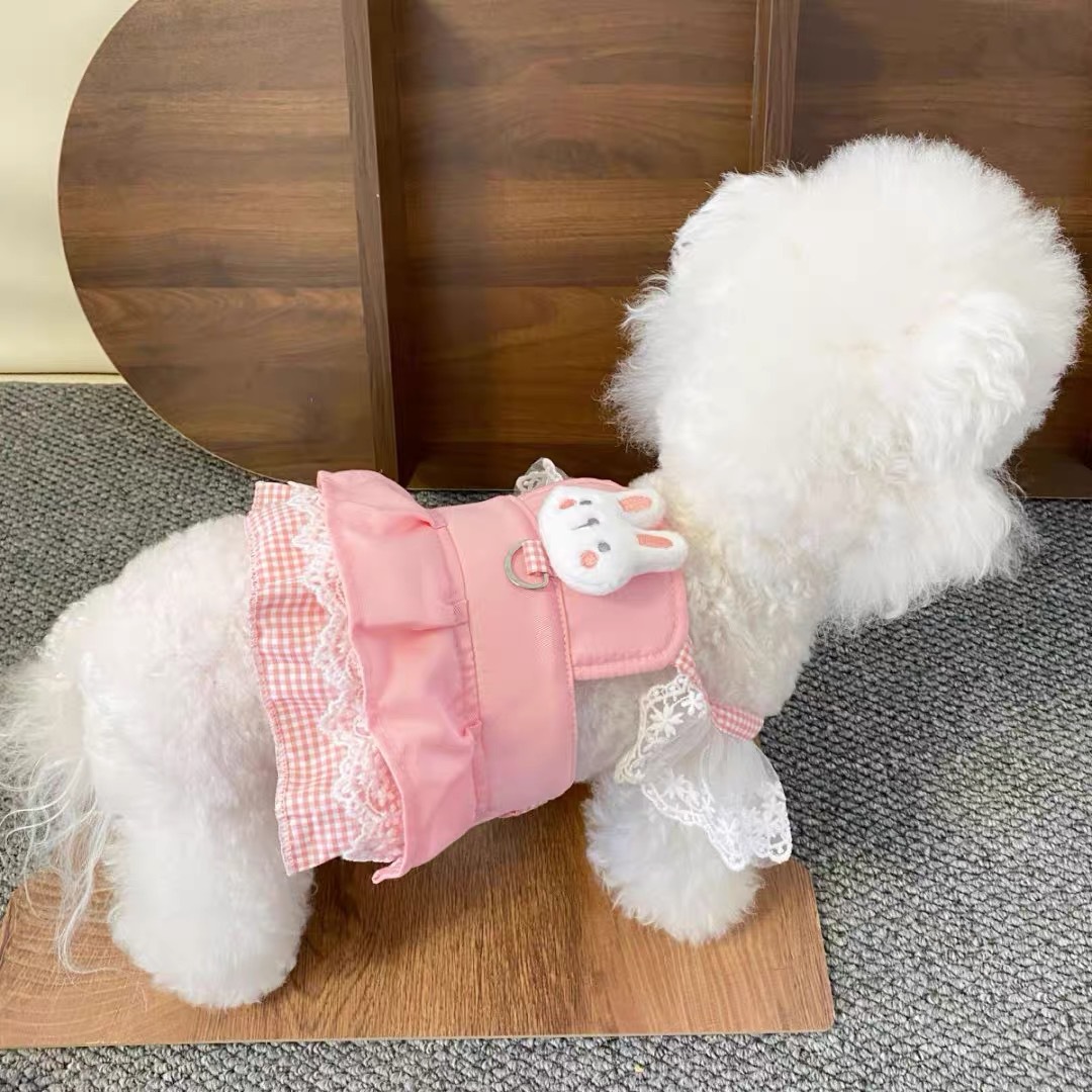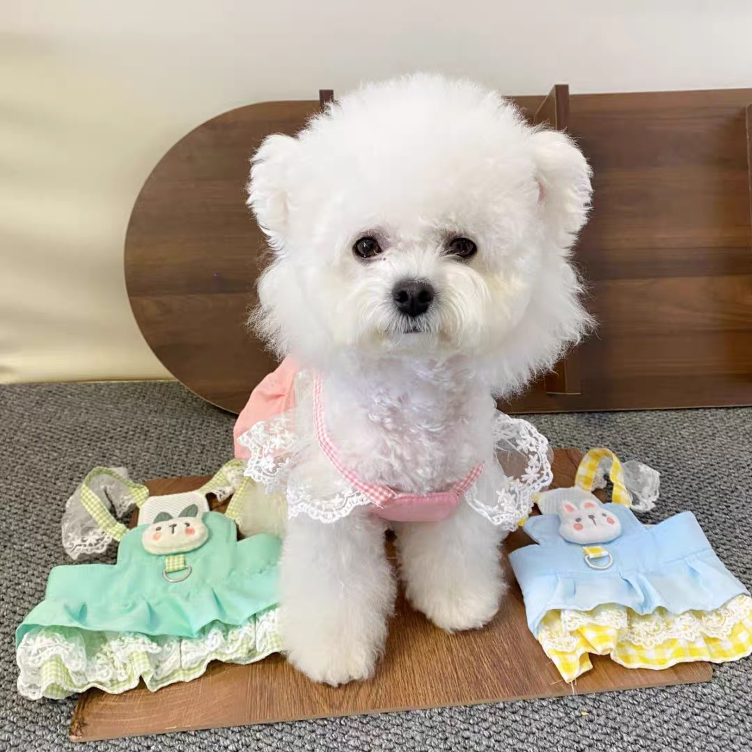 애완견 옷, 공주 스커트, 소형견 테디 비숑 요크셔 여름 얇은 걸이용 가죽끈