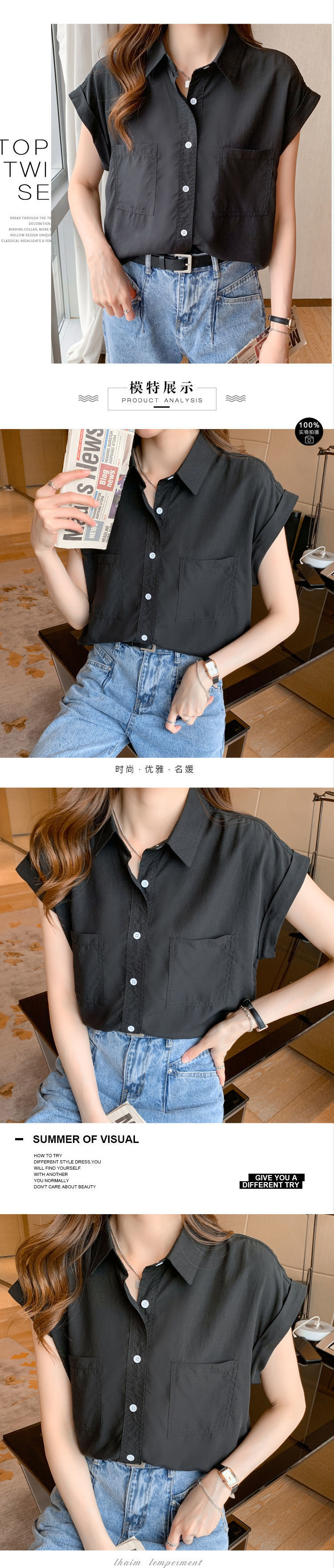 여름 신작 여성용 반팔 쉬폰 셔츠, 패셔너블한 복고풍 홍콩 스타일 캐주얼 다용도 슬리밍 셔츠 여성용 상의스토어 가기