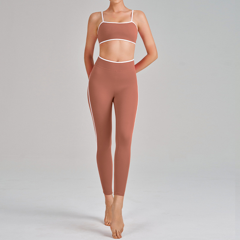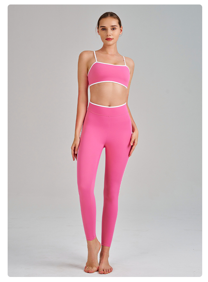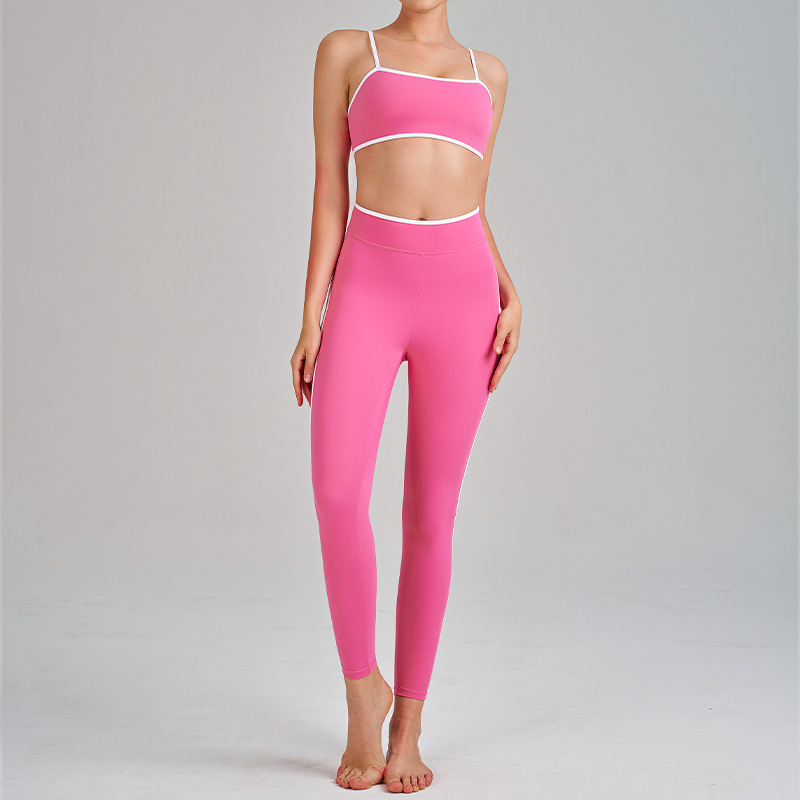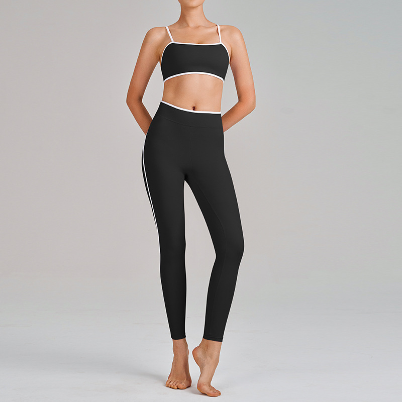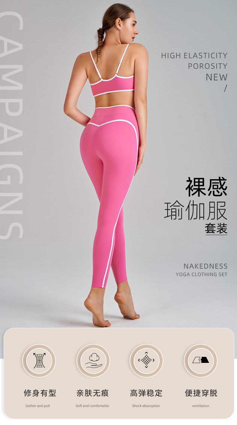 국경을 넘는 신상 요가복 하이웨이스트 힙업 복부보정 슬리밍 끈나시 등라인보정 러닝 스포츠 브라 세트 여성용