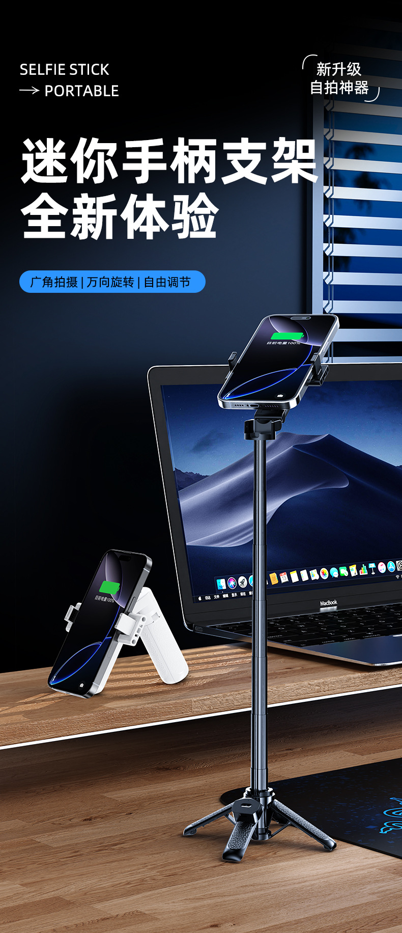 국경 간 인기 Z40 미니 휴대폰 셀카봉, 새로운 업그레이드, 용골 충전 리모컨, 뷰티 필 라이트 포함