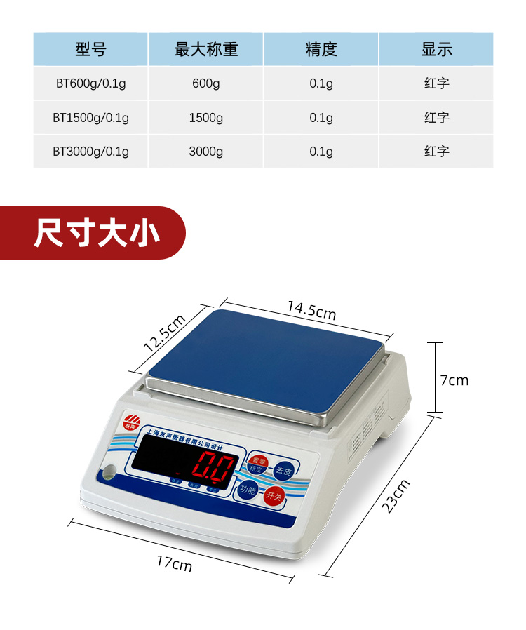 상하이 전자 저울 BT600g 1500g 3000g 그램 저울 0.1g 약용 실험실 저울