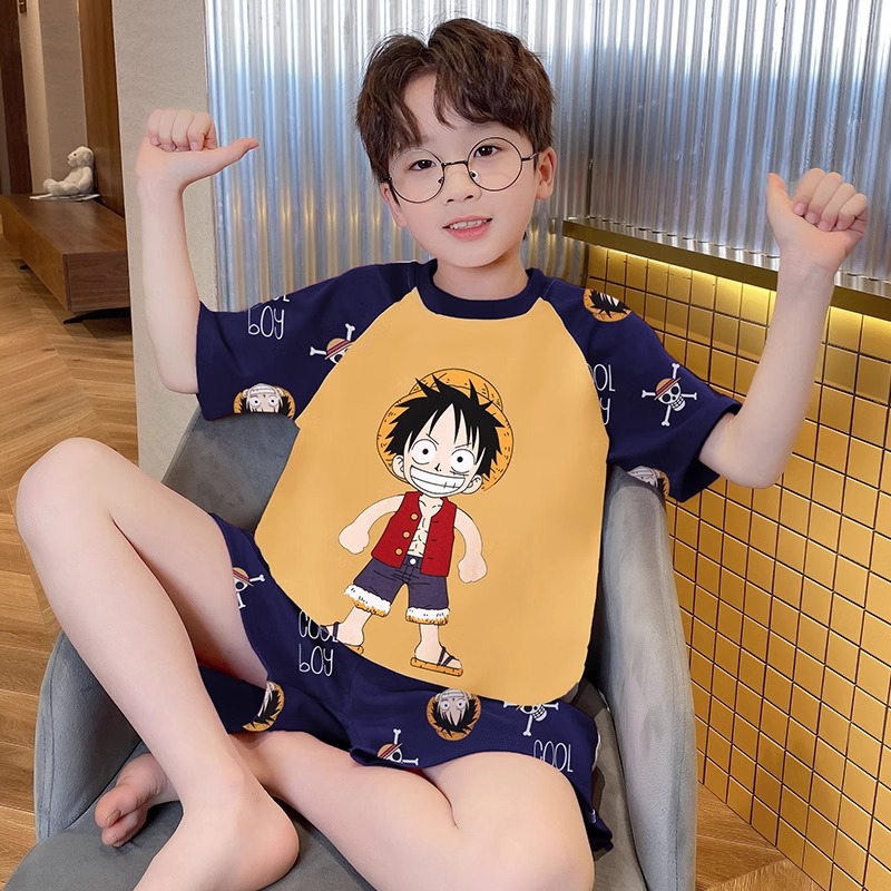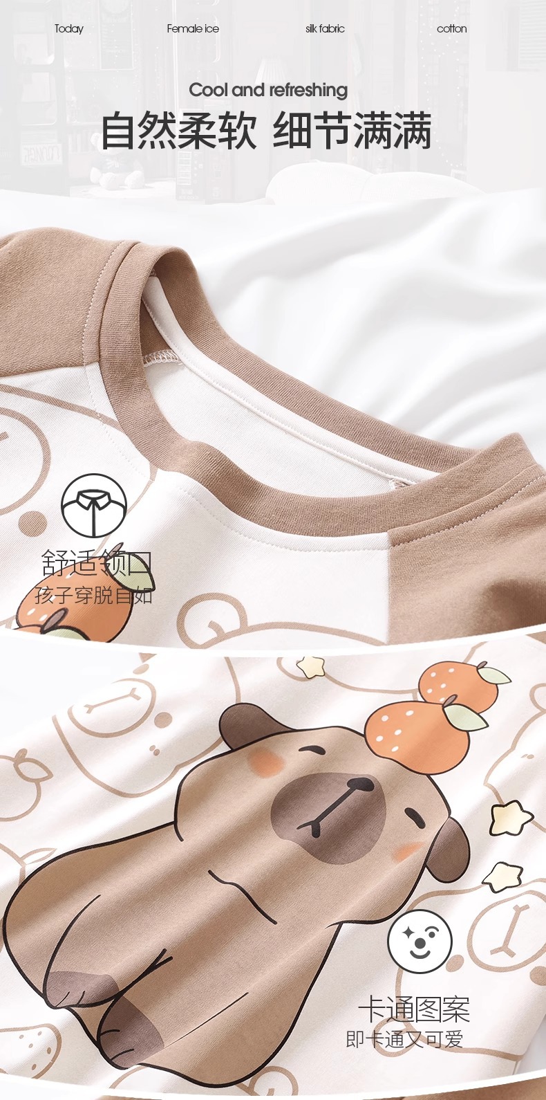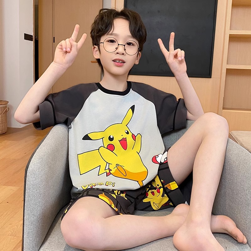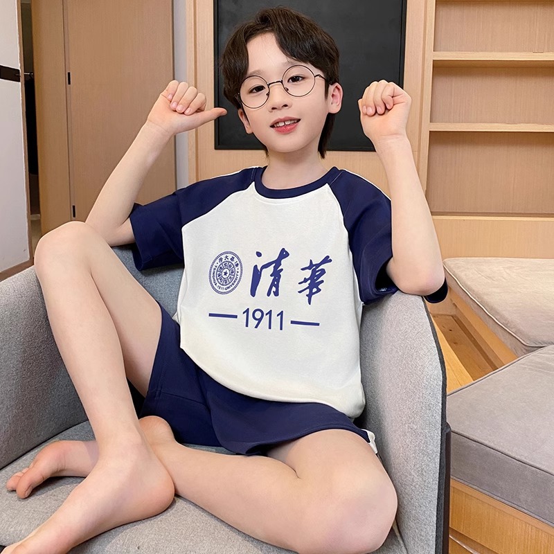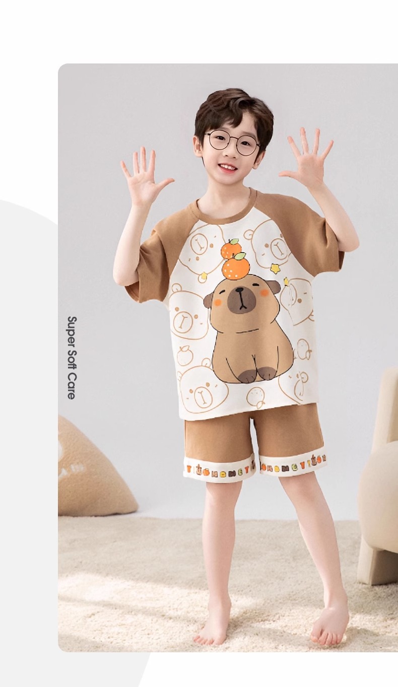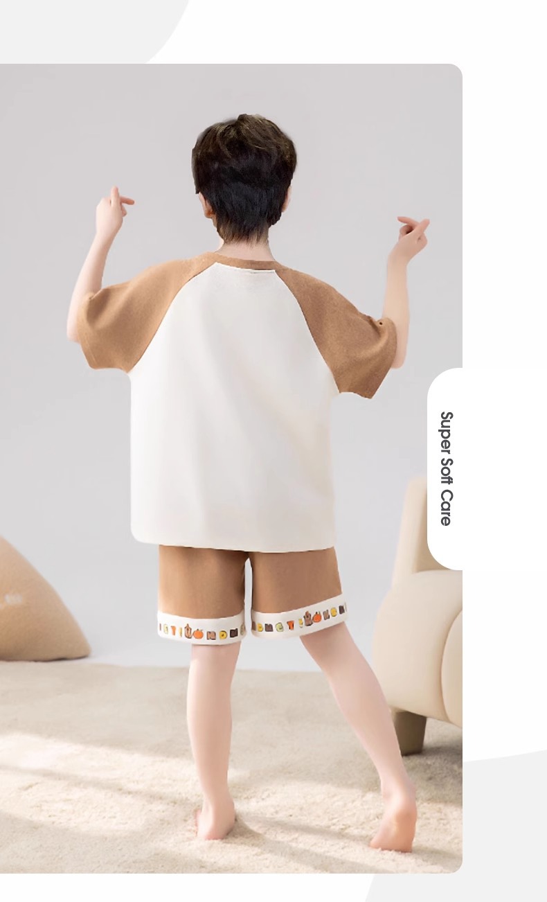소년 잠옷 여름 순수 면화 얇은 반팔 반바지 2025 새로운 여름 스타일 어린이 소년 및 어린이 가정 의류스토어 가기