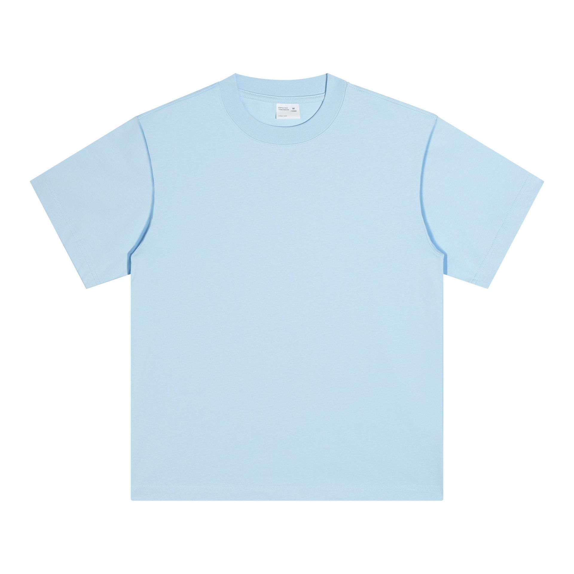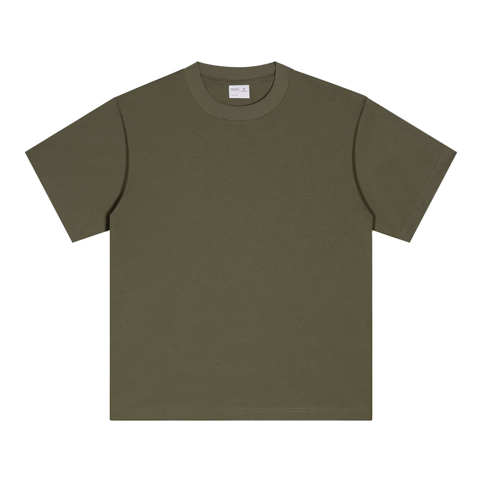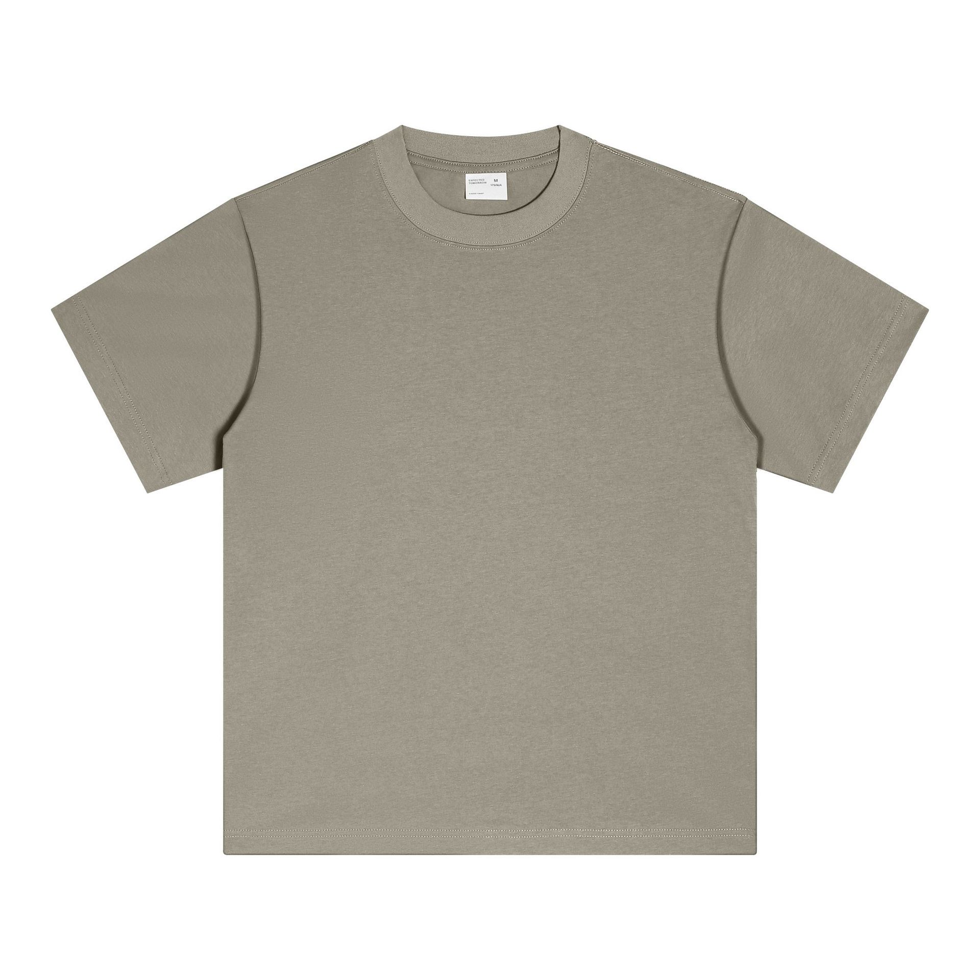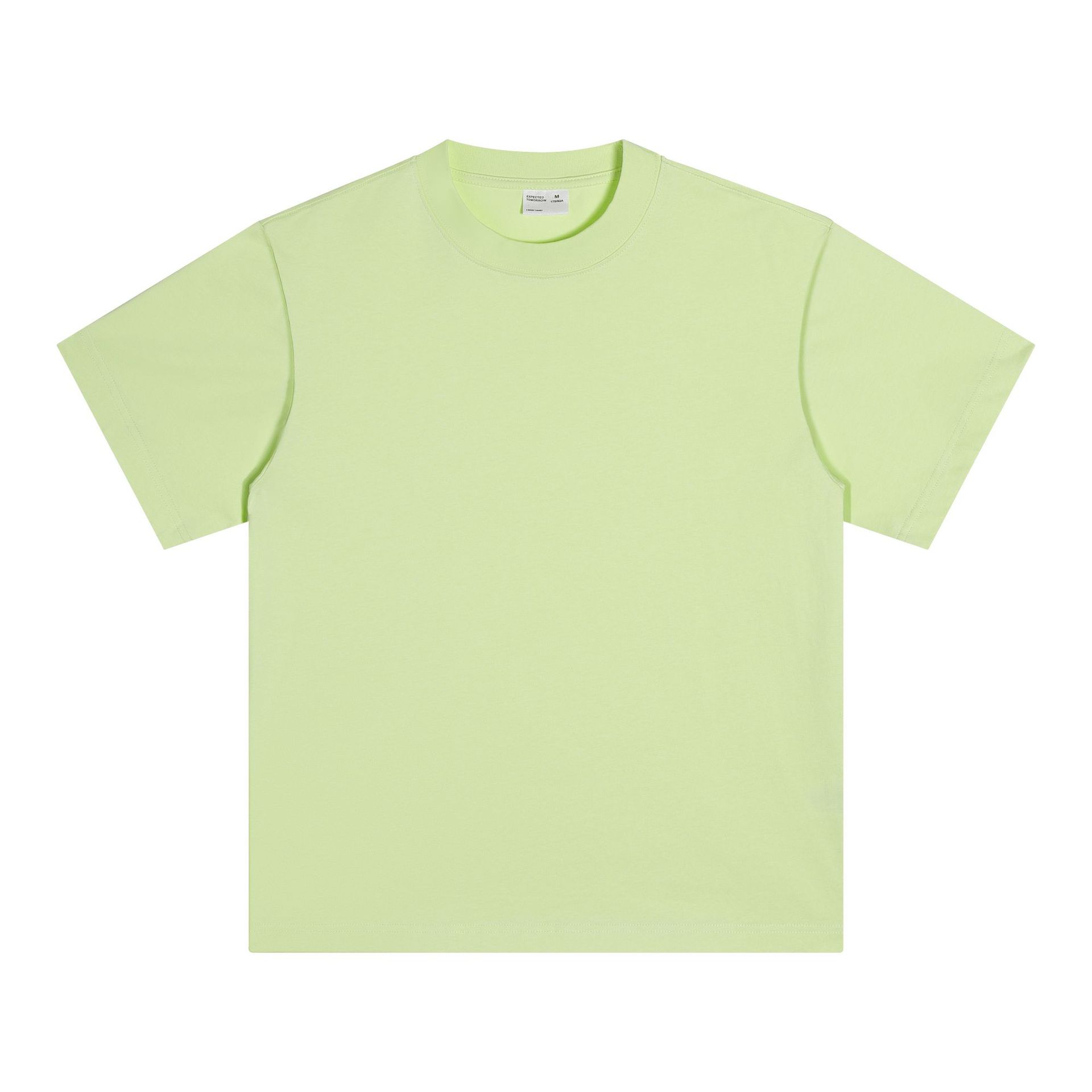 미국의 무거운 300G 대형 드롭 어깨 느슨한 크루 넥 티셔츠 남성 패션 브랜드 단색 느슨한 더블 원사 코튼 짧은 소매