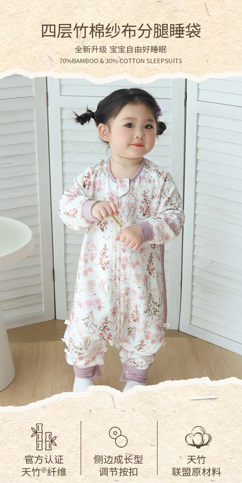 [엄정한 선거연합] 아기 침낭 4 층 대나무면 거즈 수면가방 에어컨이 설치된 방 다리 잠자기 가방 어린이 병아리 방지 퀼트스토어 가기