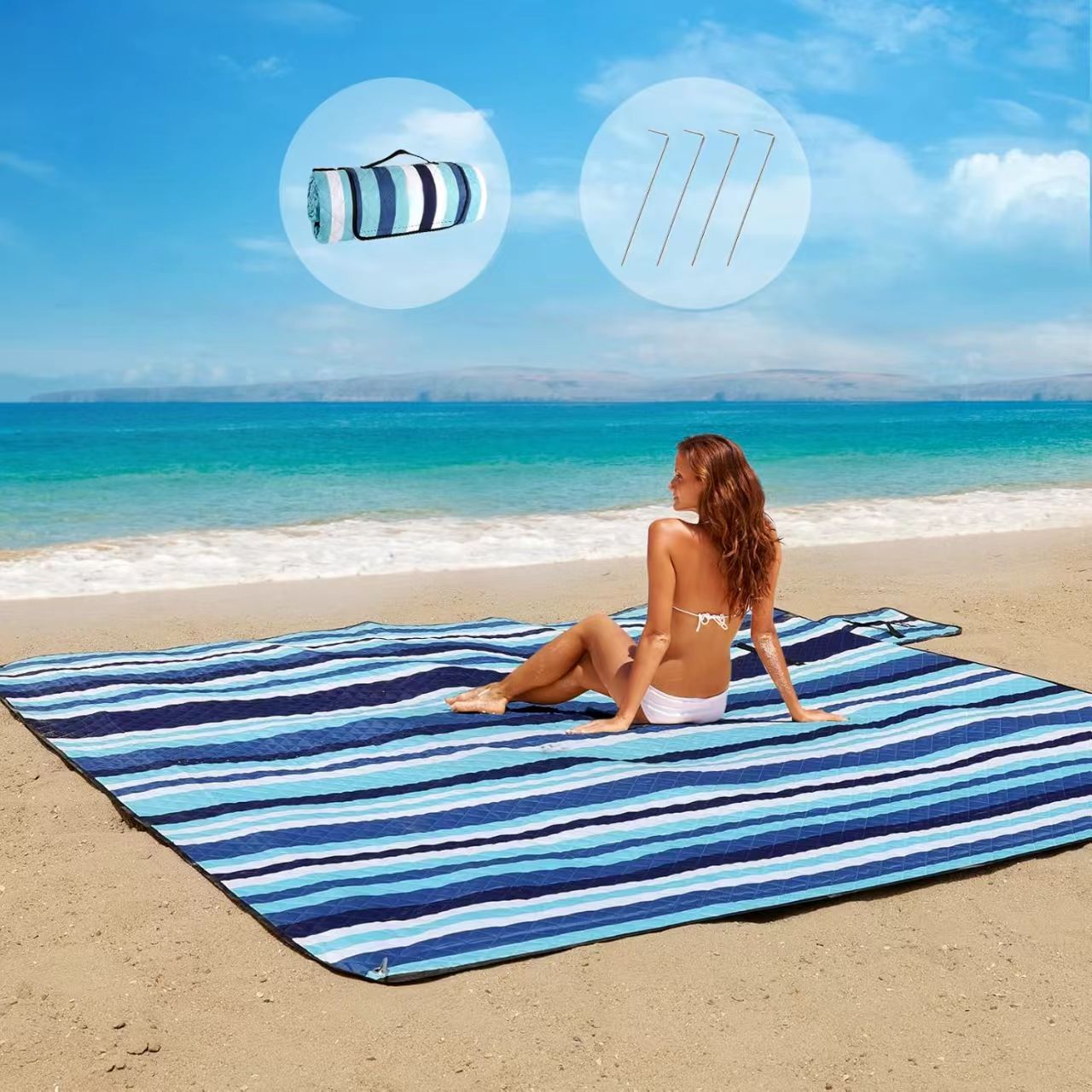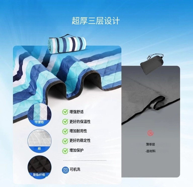2025 새로운 피크닉 담요 비치 담요 슈퍼 두꺼운 3 층 모래 방지 기계 세탁 가능 방수 접이식 야외 매트 캠핑