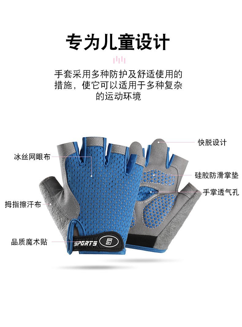 사이클링 장갑 반 손가락 미끄럼 방지 실크 통기성 스포츠 훈련 보호 내마모성 야외 사이클링 어린이 장갑