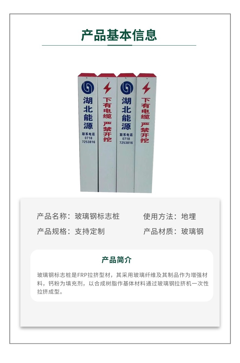 玻璃钢警示桩然气管道电缆标志桩供水光缆地埋标识柱界桩柱光缆燃气供水管道地埋标识桩标识桩