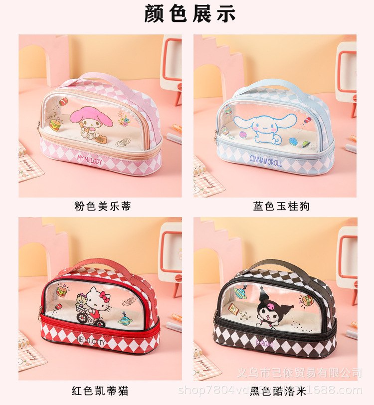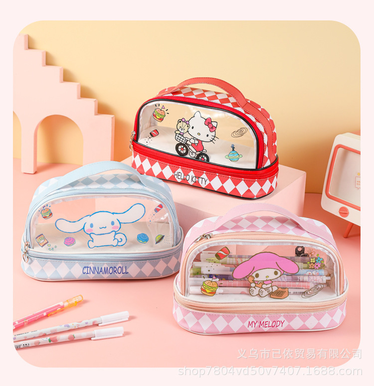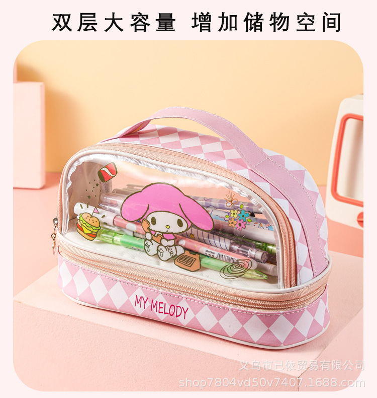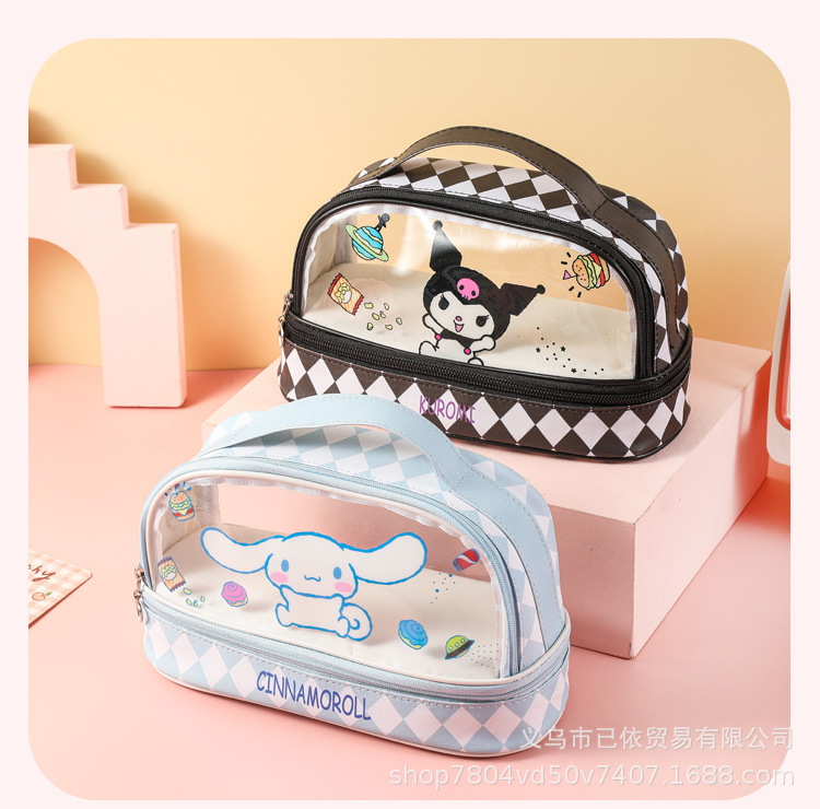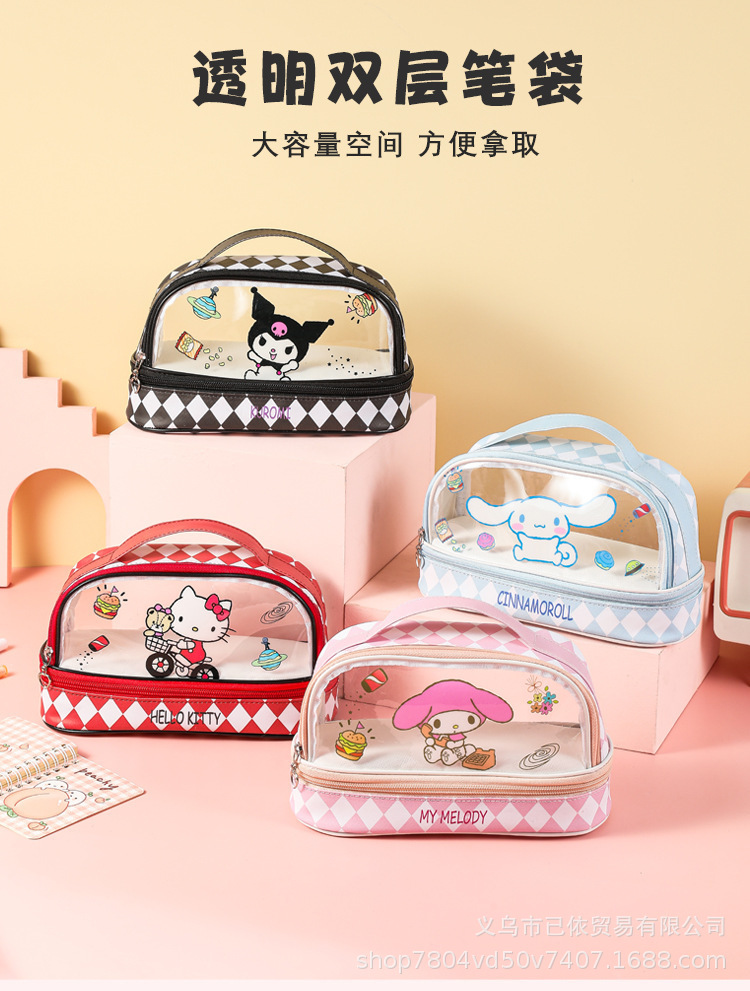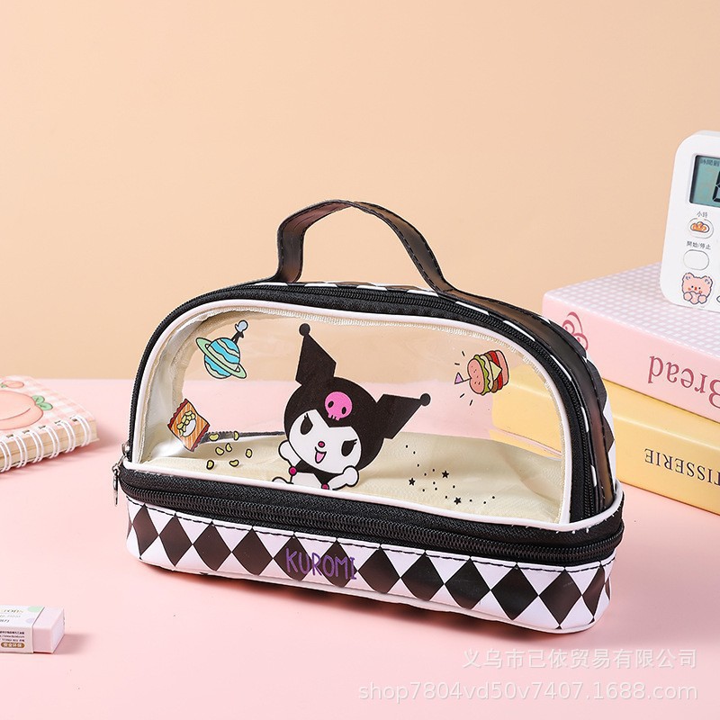 투명한 더블 레이어 연필 케이스 Sanrio Kulomi 초등학생을위한 3 차원 대용량 문구 가방 휴대용 만화 연필 케이스