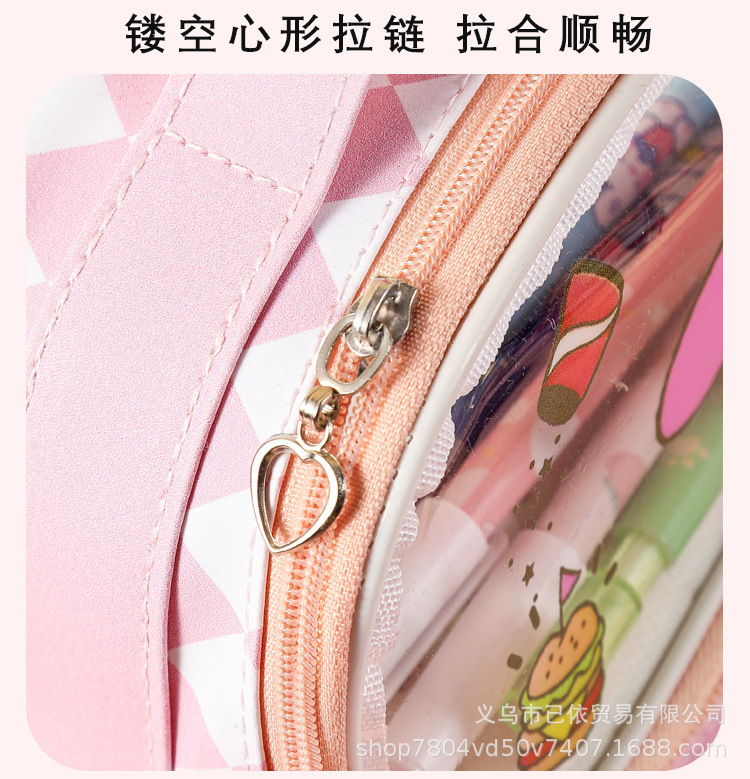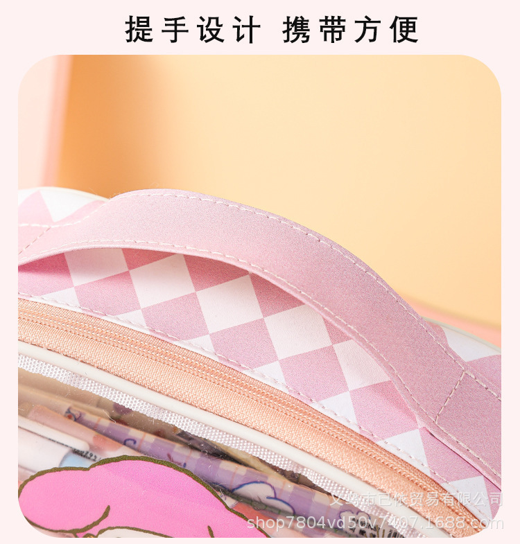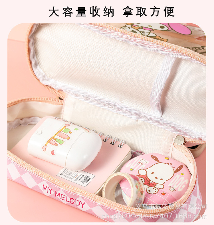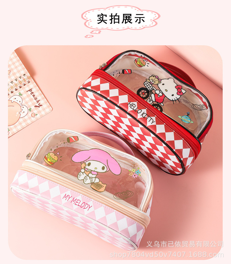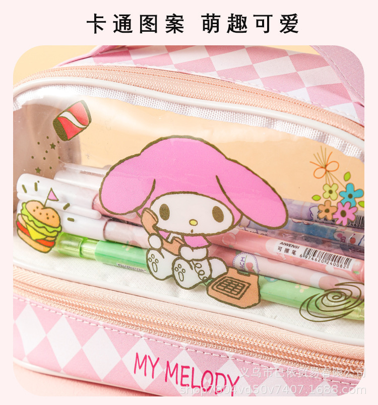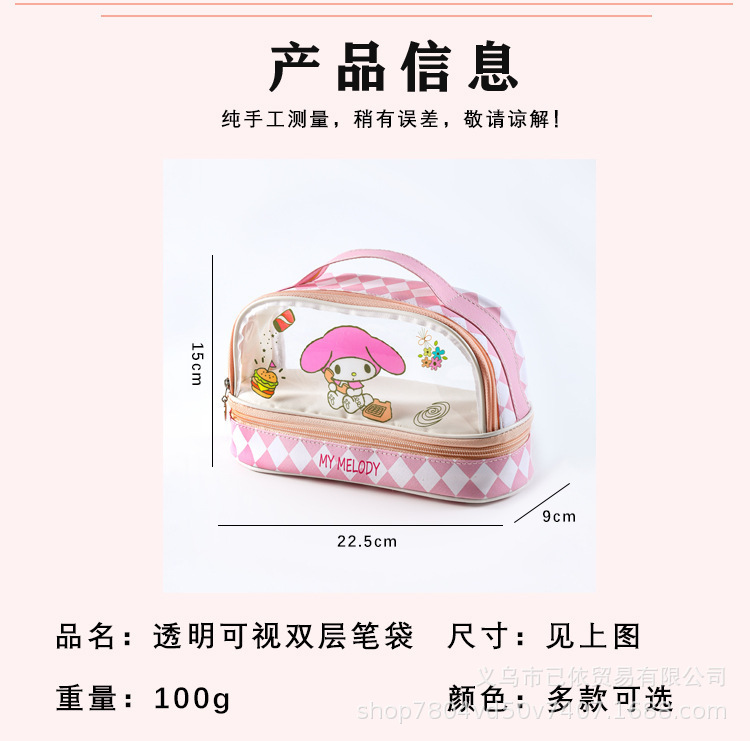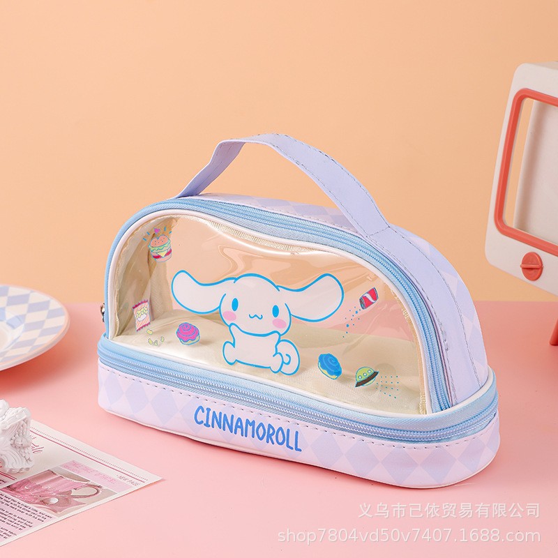 투명한 더블 레이어 연필 케이스 Sanrio Kulomi 초등학생을위한 3 차원 대용량 문구 가방 휴대용 만화 연필 케이스