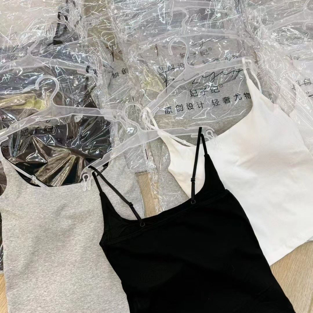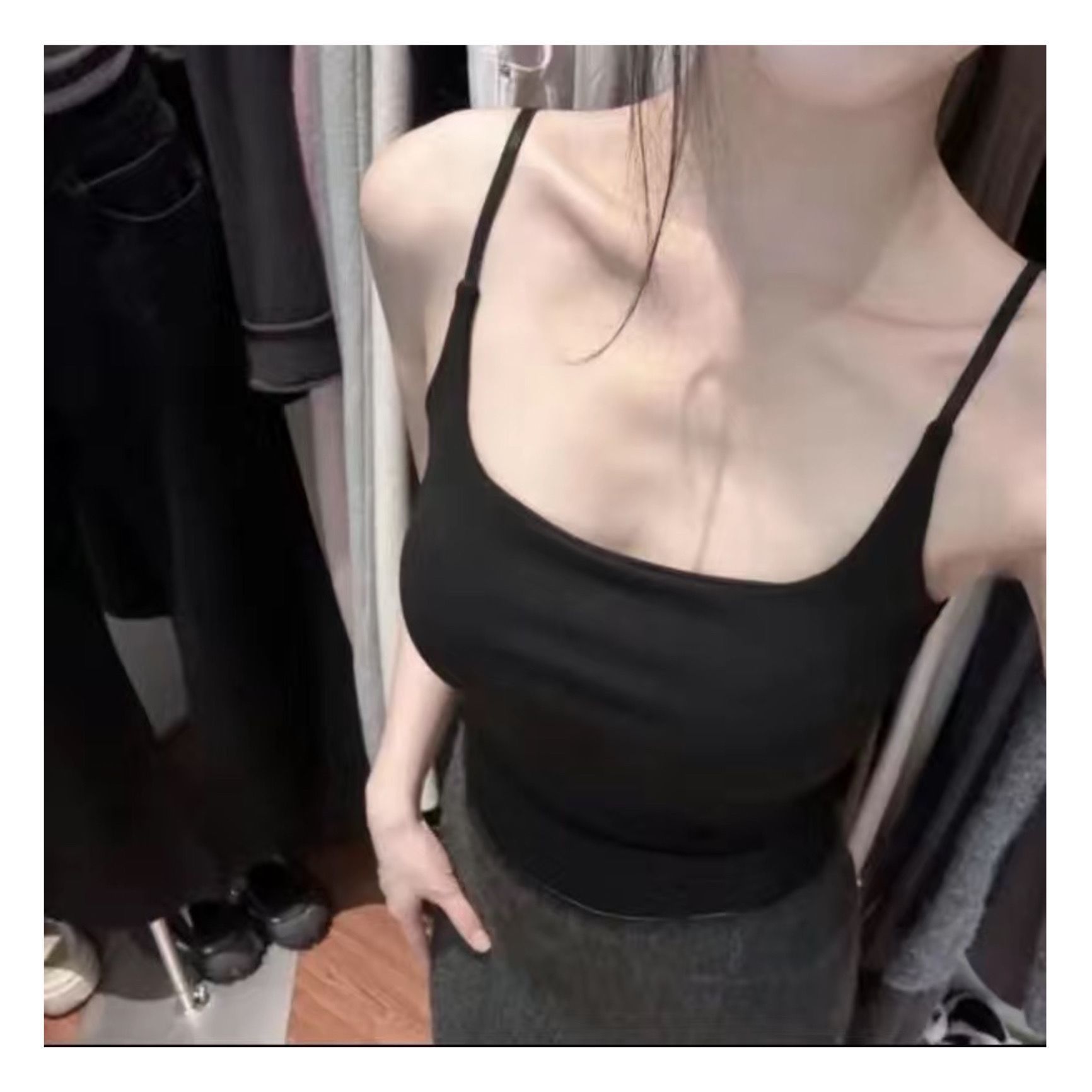 여름 신상품, 등이 예쁜 뷔스티에 탑, 가슴 패드 내장, 일체형, 조절 가능한 얇은 어깨끈, 단색, 슬림핏, 여성용스토어 가기