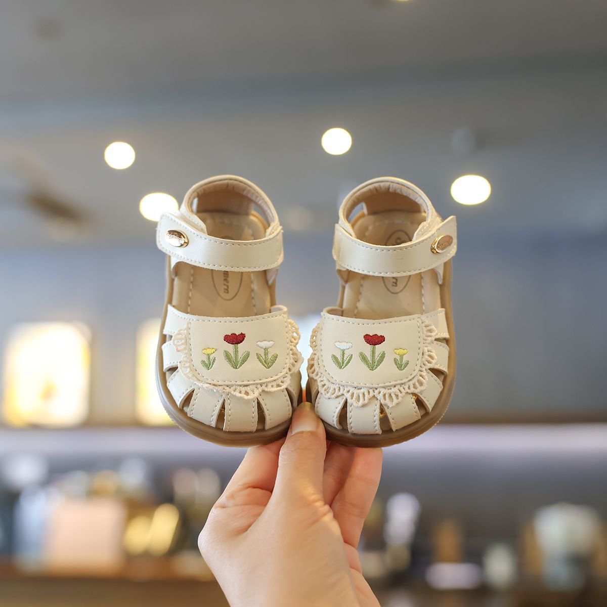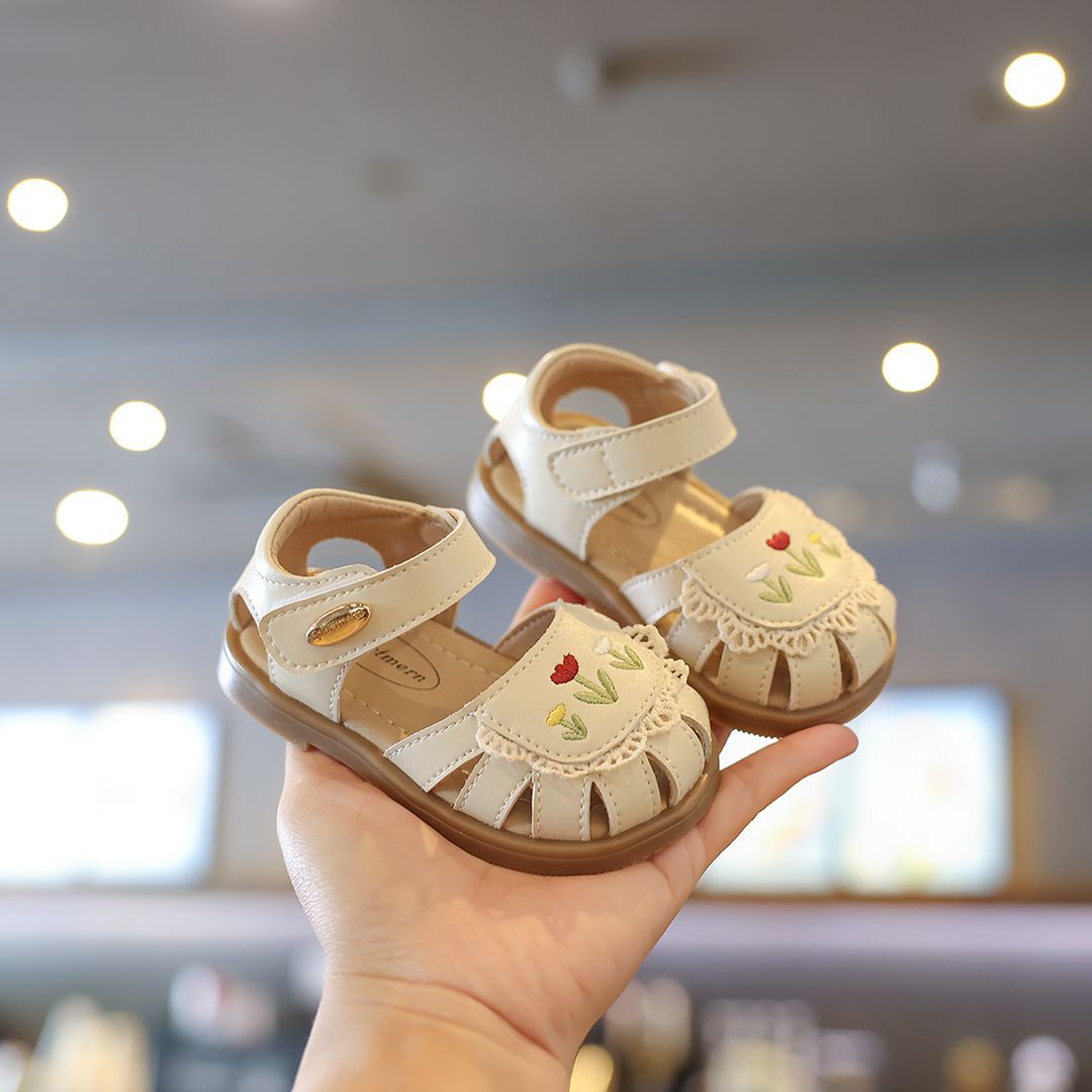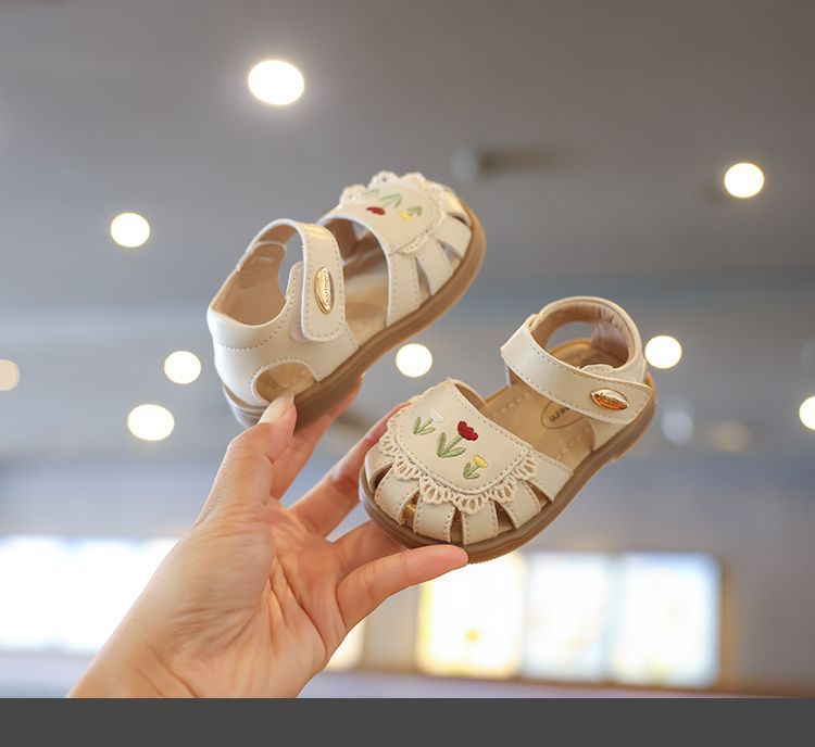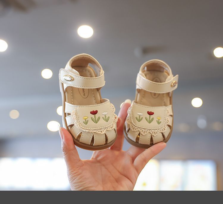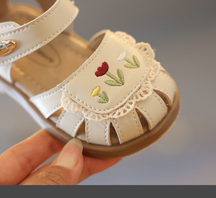 샌들 어린이 발가락 샌들 여름 유아 샌들 부드러운 바닥 아기 공주 스타일 둥근 발가락 꽃 슈퍼 부드러운 공주 신발스토어 가기