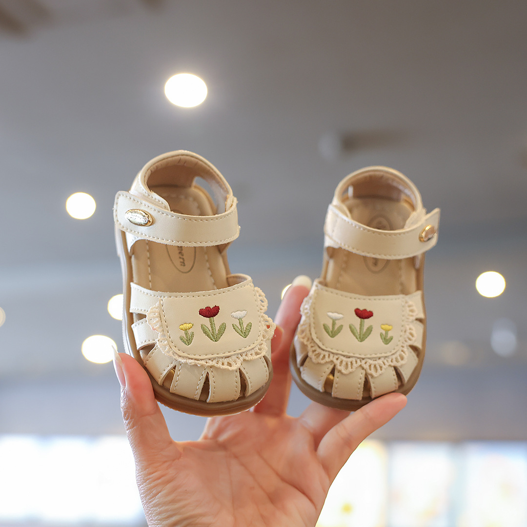 샌들 어린이 발가락 샌들 여름 유아 샌들 부드러운 바닥 아기 공주 스타일 둥근 발가락 꽃 슈퍼 부드러운 공주 신발