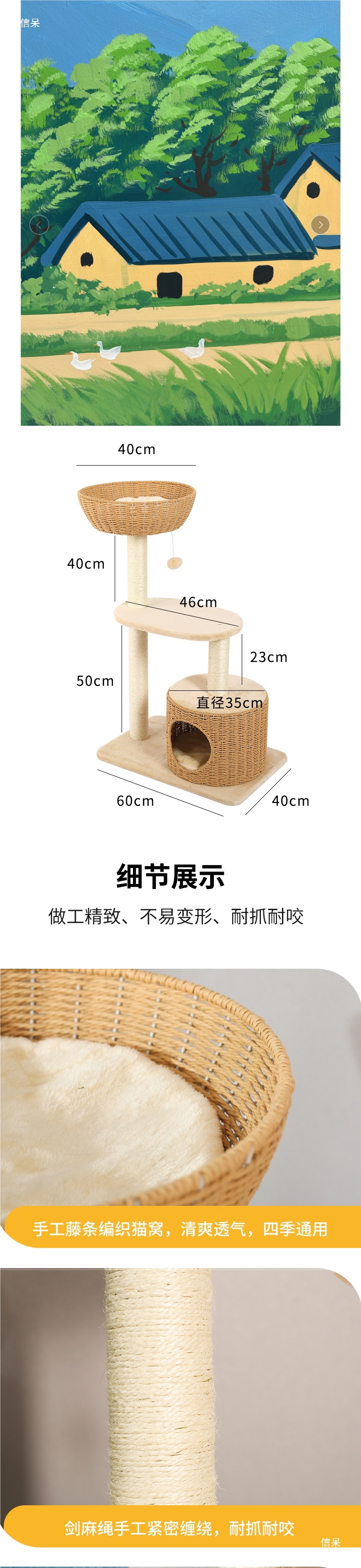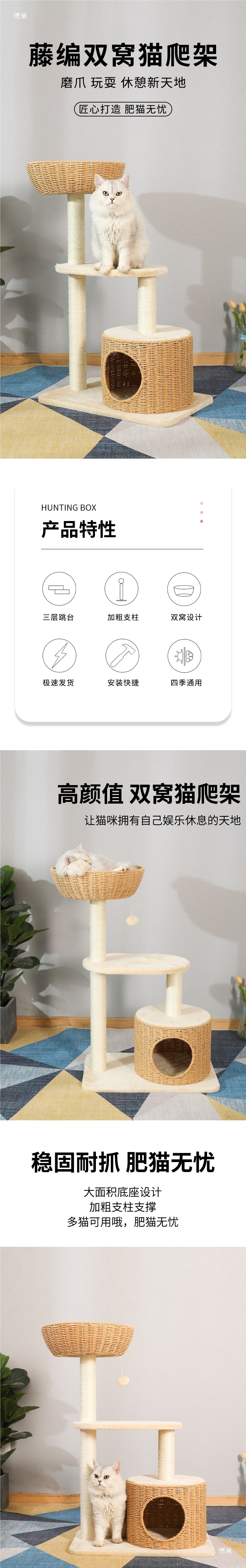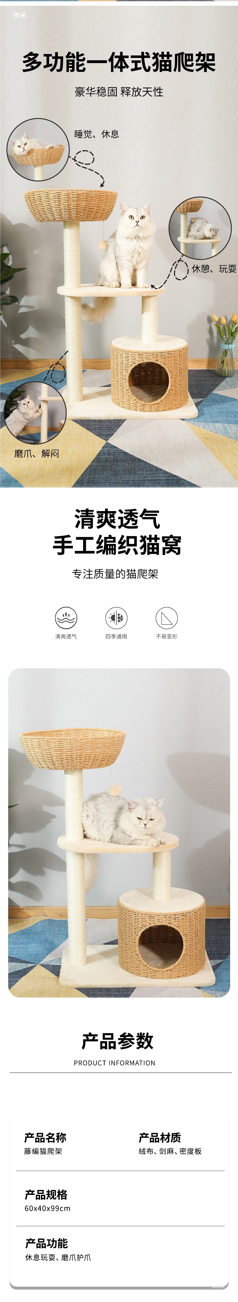 고양이 클라이밍 프레임, 고양이 둥지, 고양이 트리, 일체형 사자수 고양이 스크래치 포스트, 등나무 대형 고양이 점프 플랫폼, 고양이 선반, 고양이 장난감스토어 가기