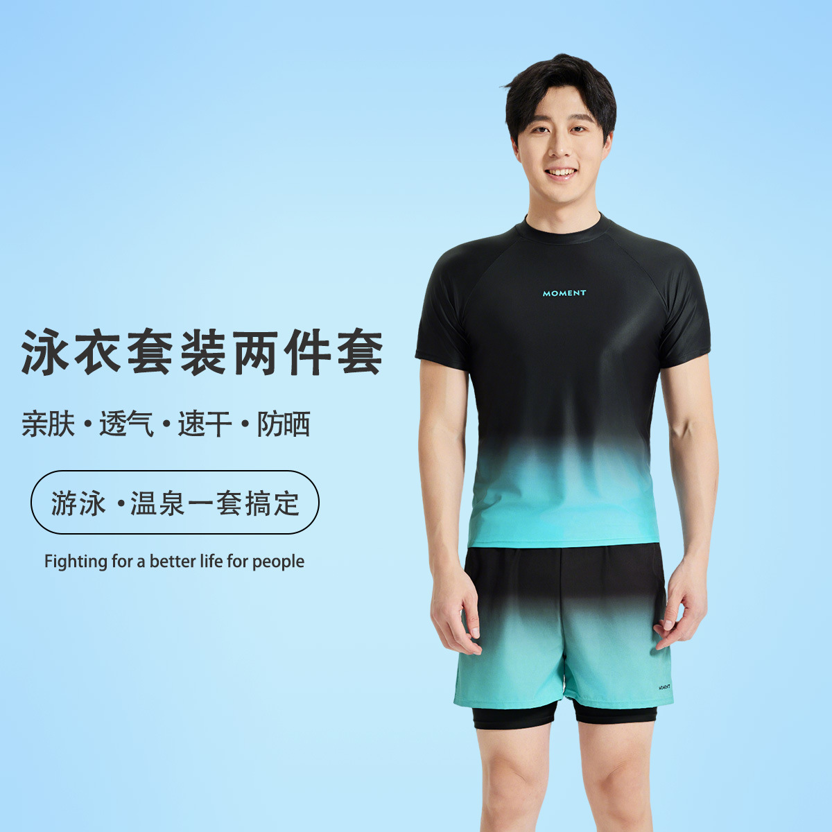 여름 신작 남성 수영복 반팔 통기성 속건성 스플릿 대형 해변 해변 캐주얼 휴가 수영복 세트