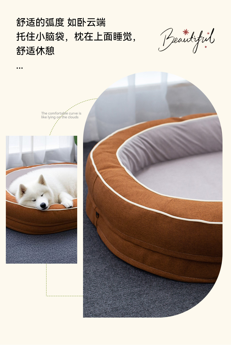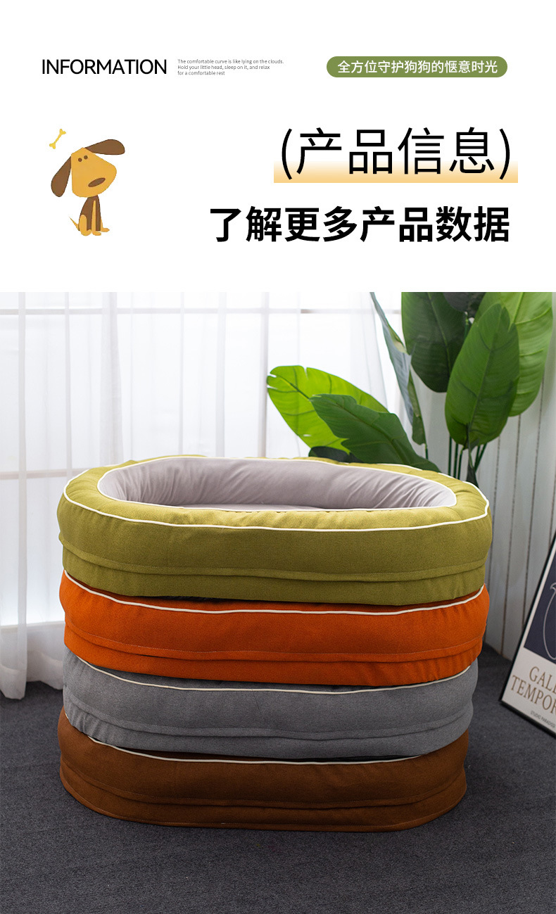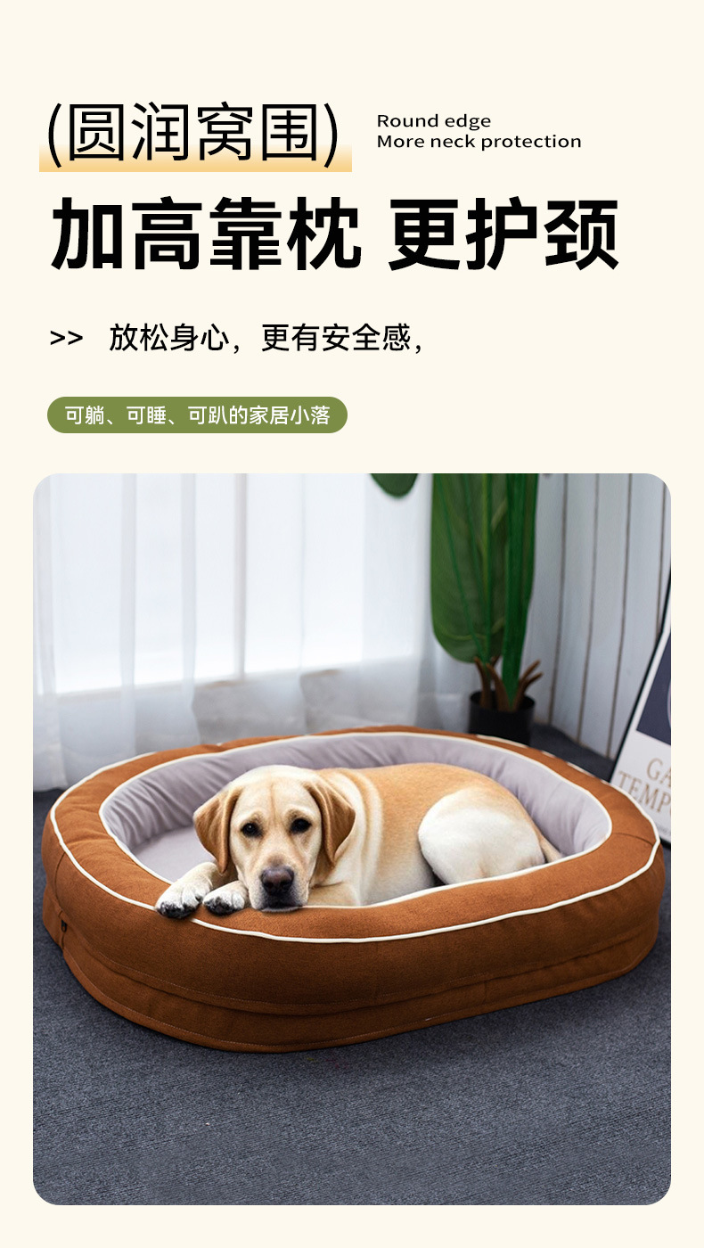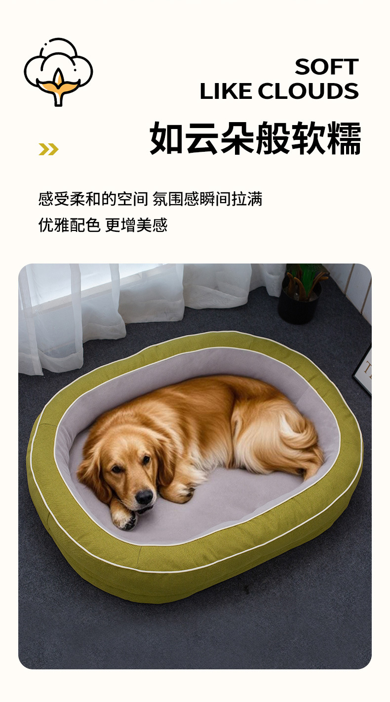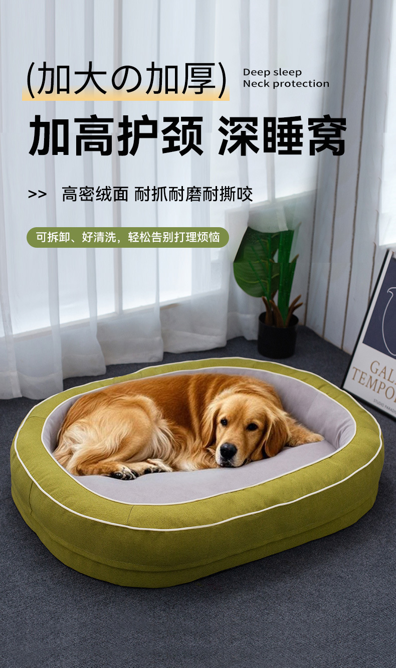 사계절 사용 가능한 타원형 대형 애완동물 침대, 대형견 침대, 고양이 침대, 강아지 침대, 두꺼운 접이식 침대스토어 가기