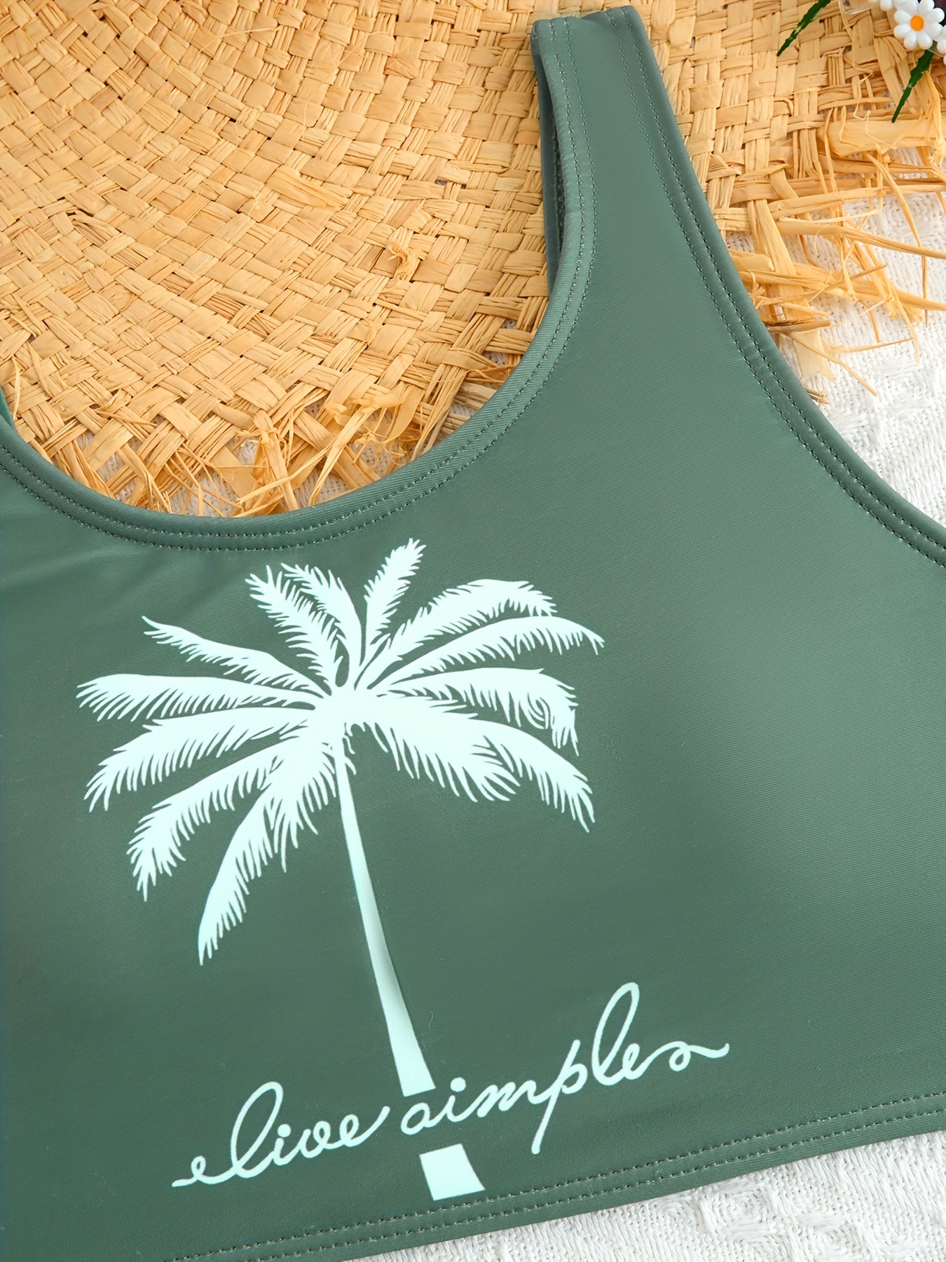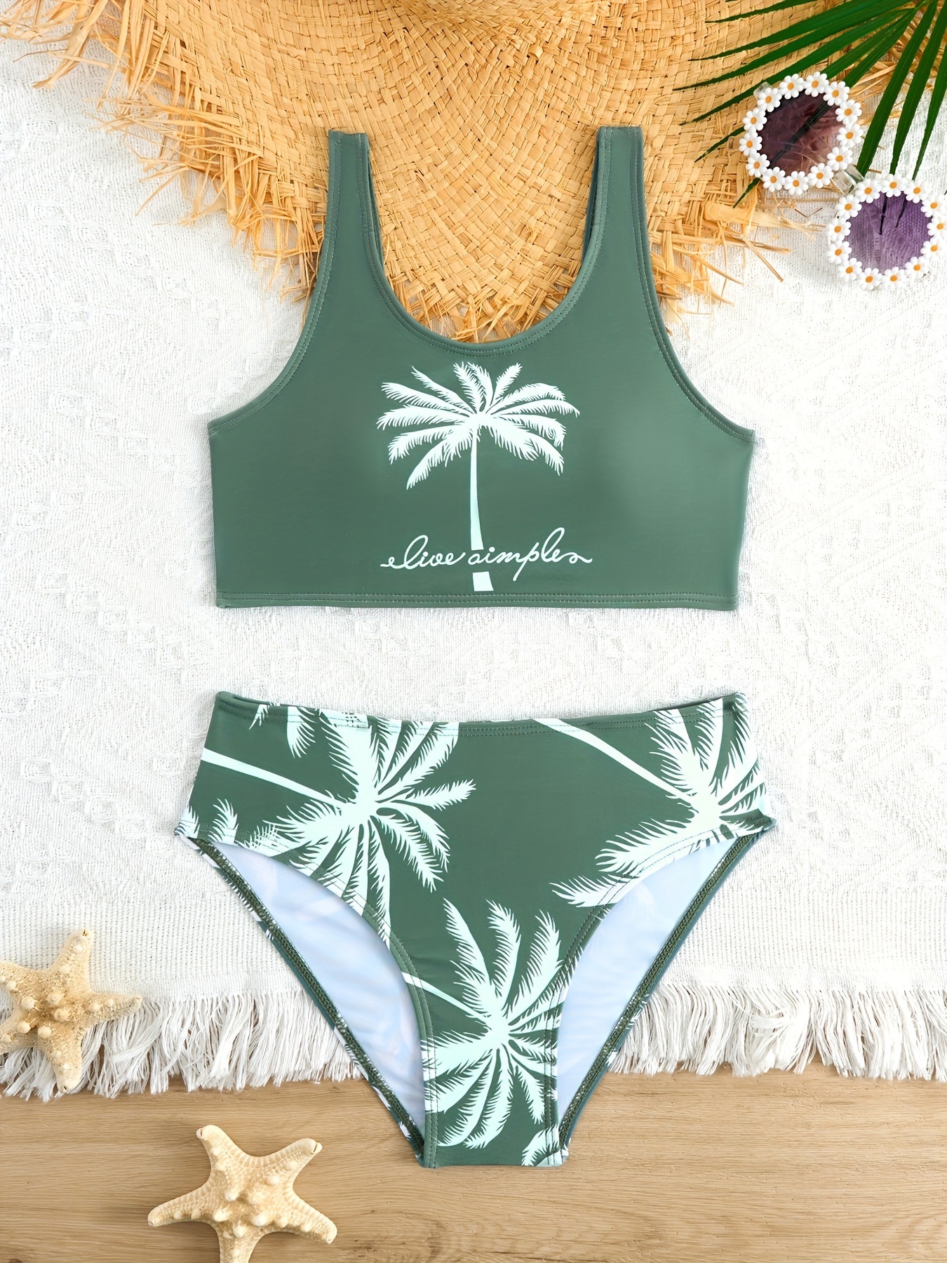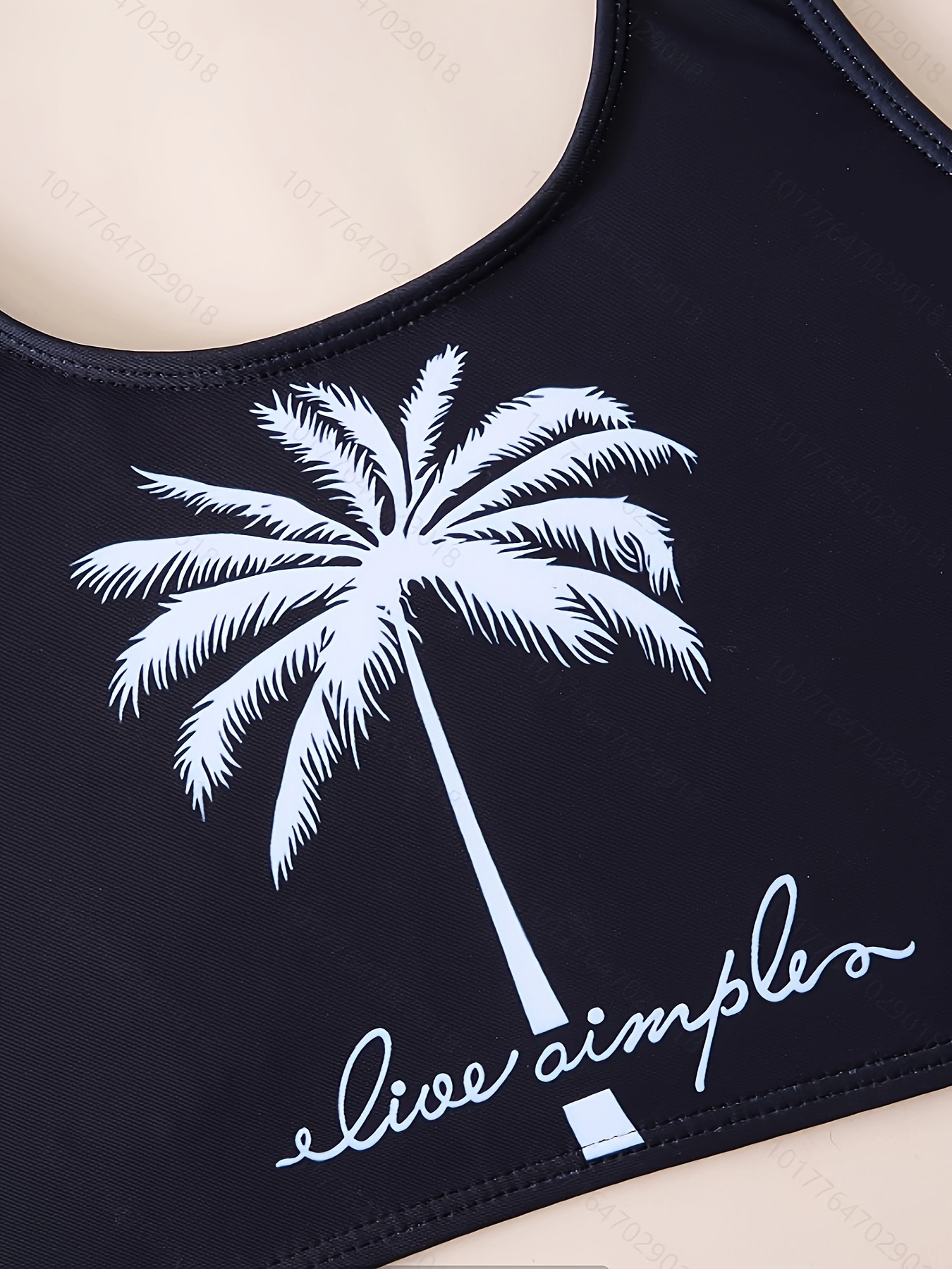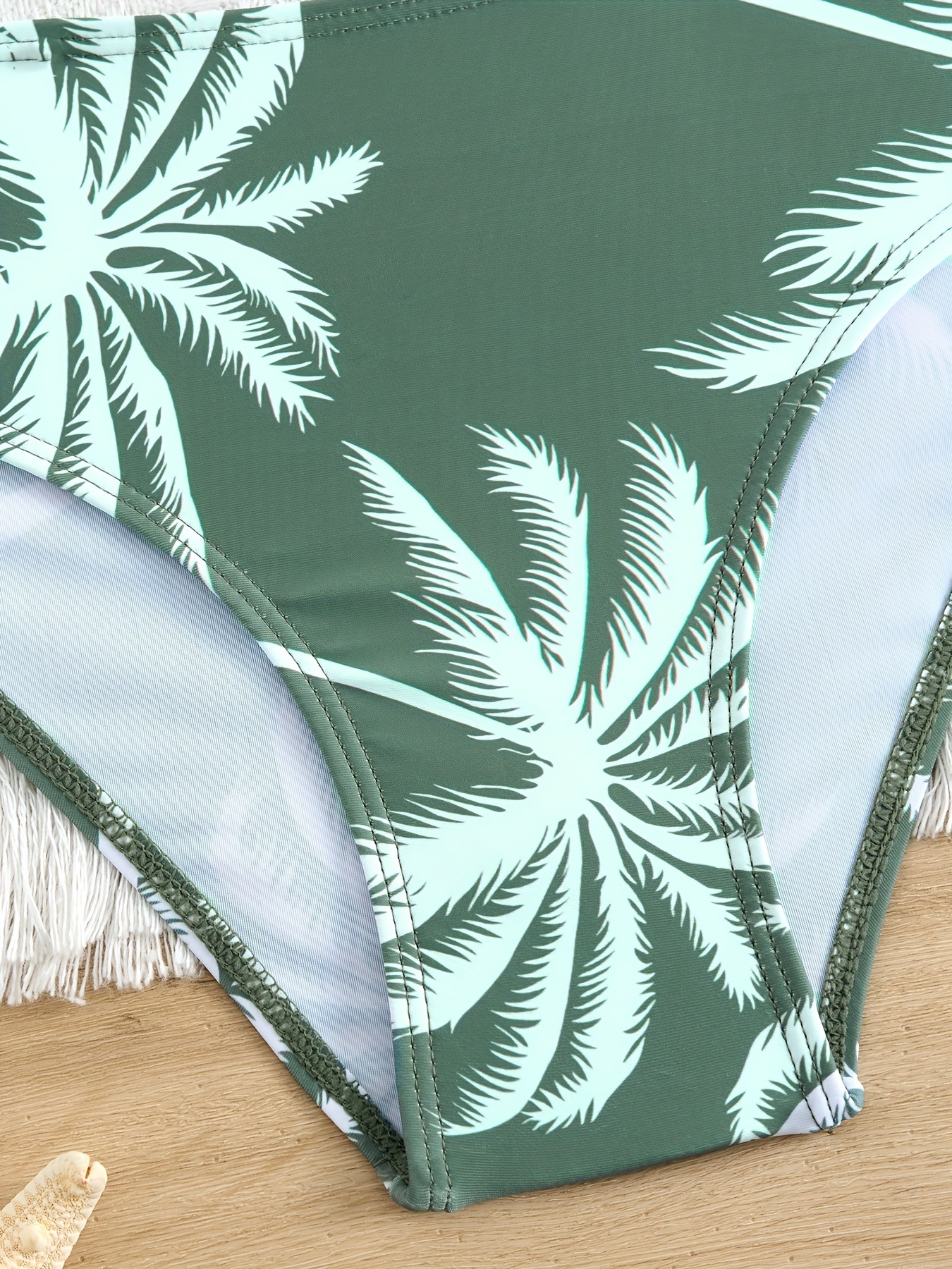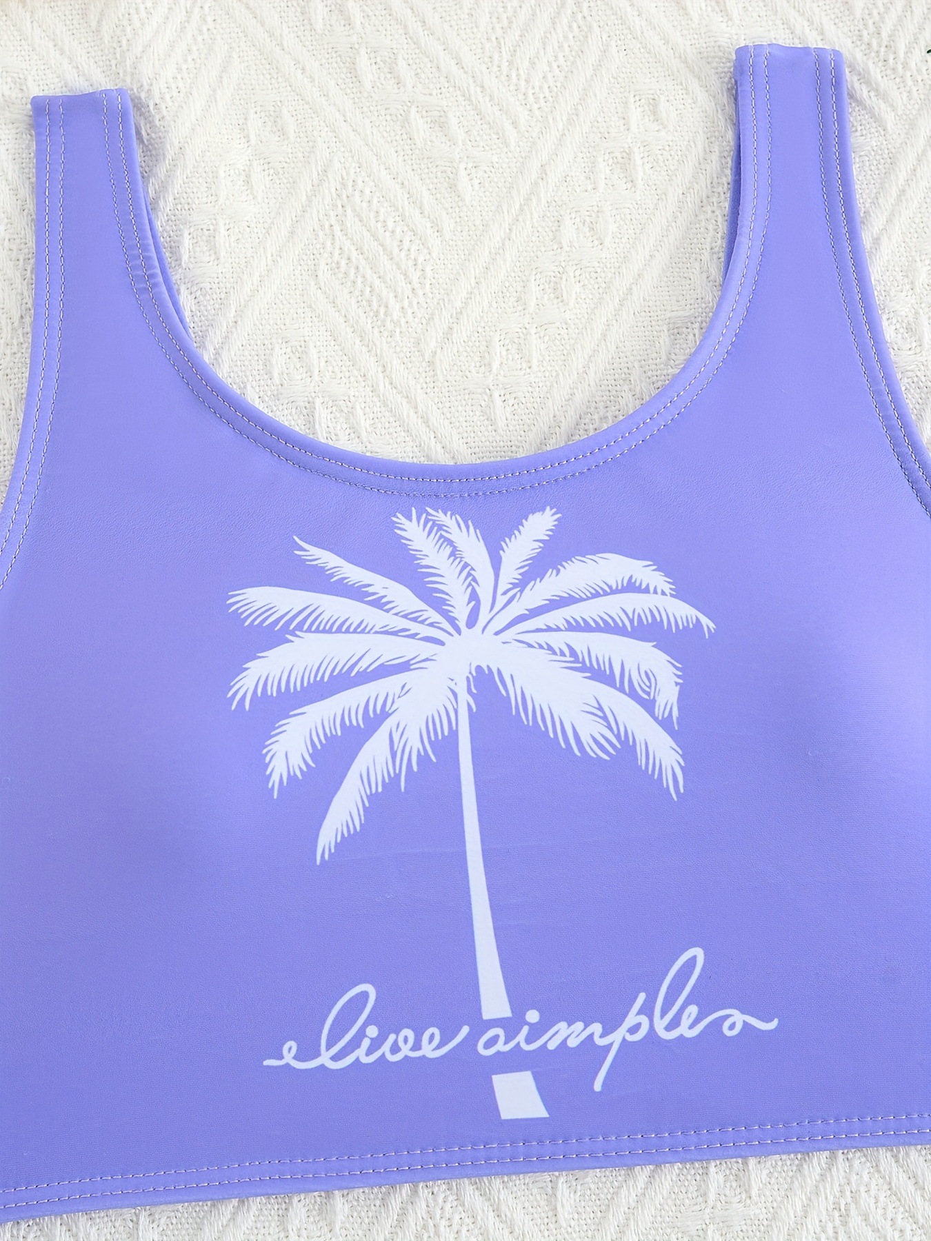 2025 유럽 및 미국 아동용 수영복, 여아용 열대 프린트 스포츠 스타일 분리형 비키니, 배를 가려주는 슬리밍 효과, 중대형 아동용 수영복, 만화 디자인