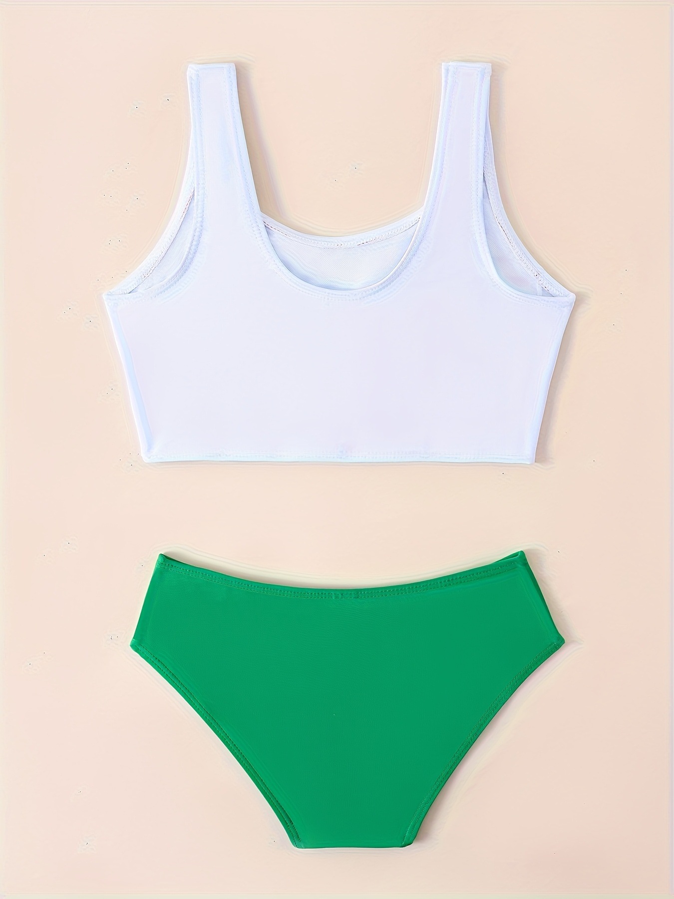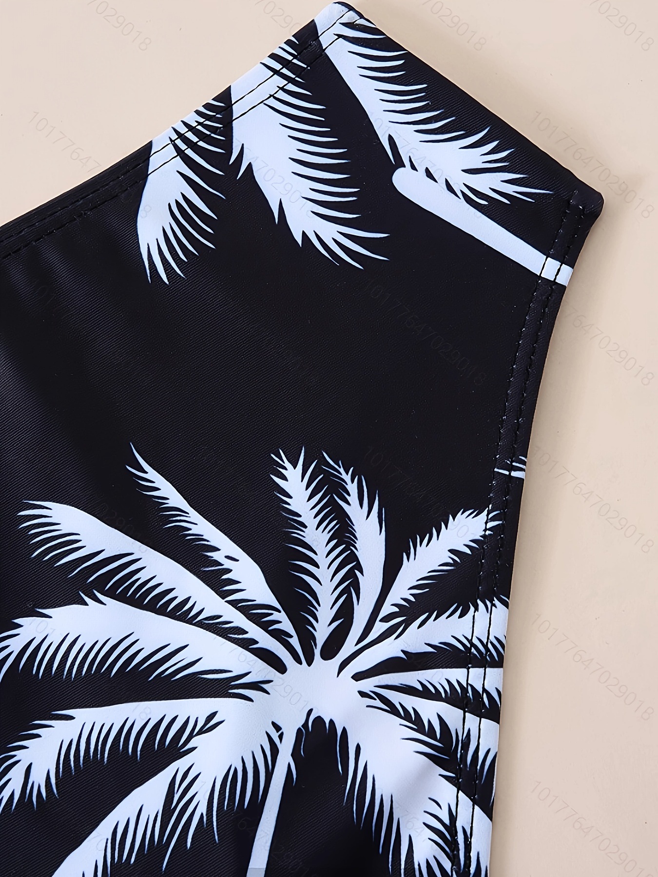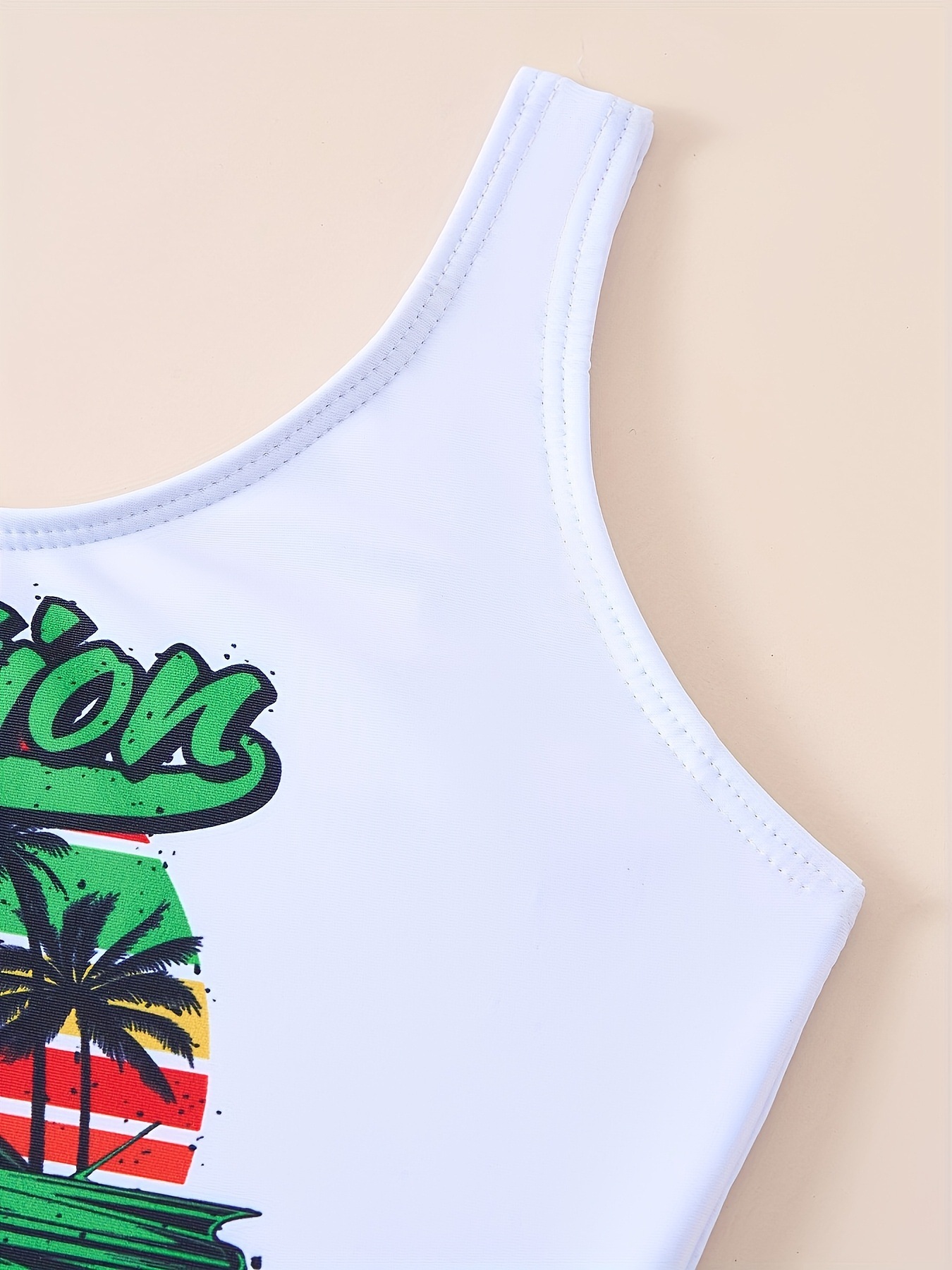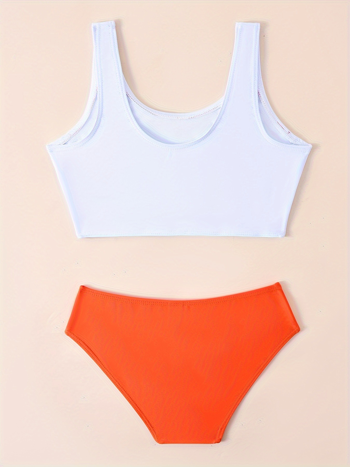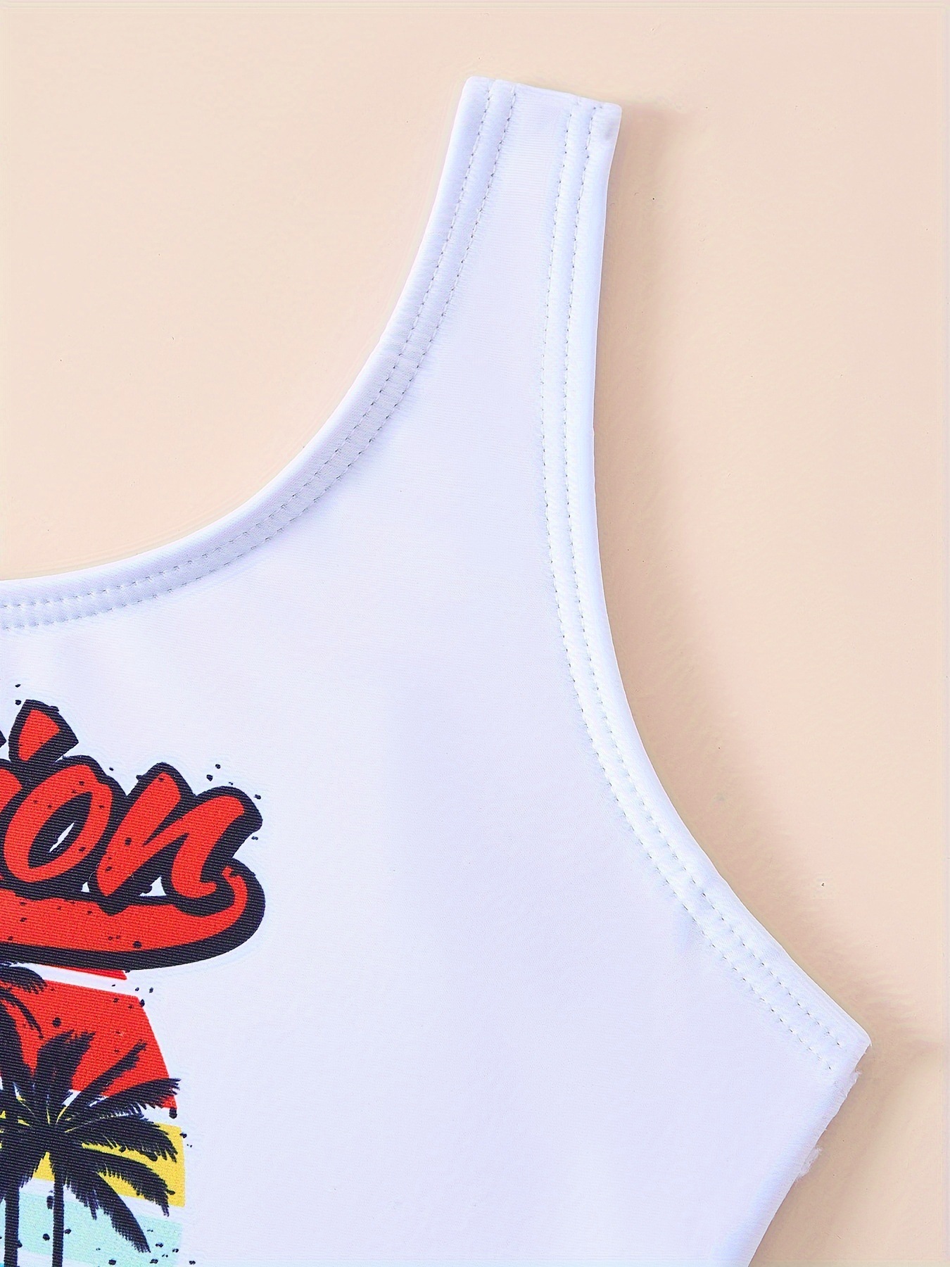 2025 유럽 및 미국 아동용 수영복, 여아용 열대 프린트 스포츠 스타일 분리형 비키니, 배를 가려주는 슬리밍 효과, 중대형 아동용 수영복, 만화 디자인