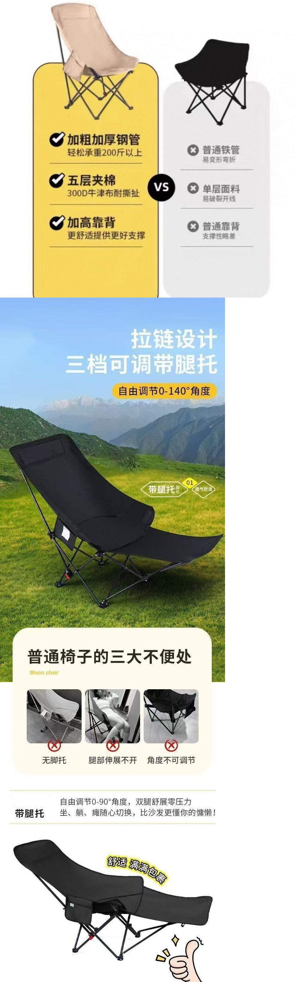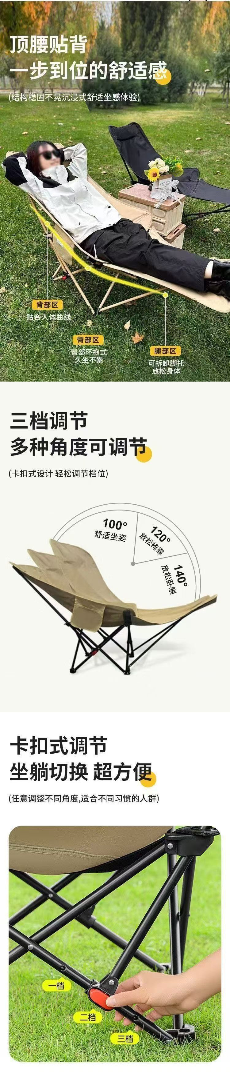 • 】3단계 리클라이닝 수면】성다칭+탈착식 다리받침대+수납가방