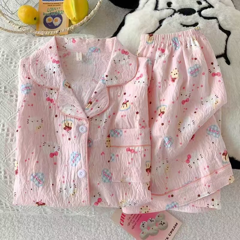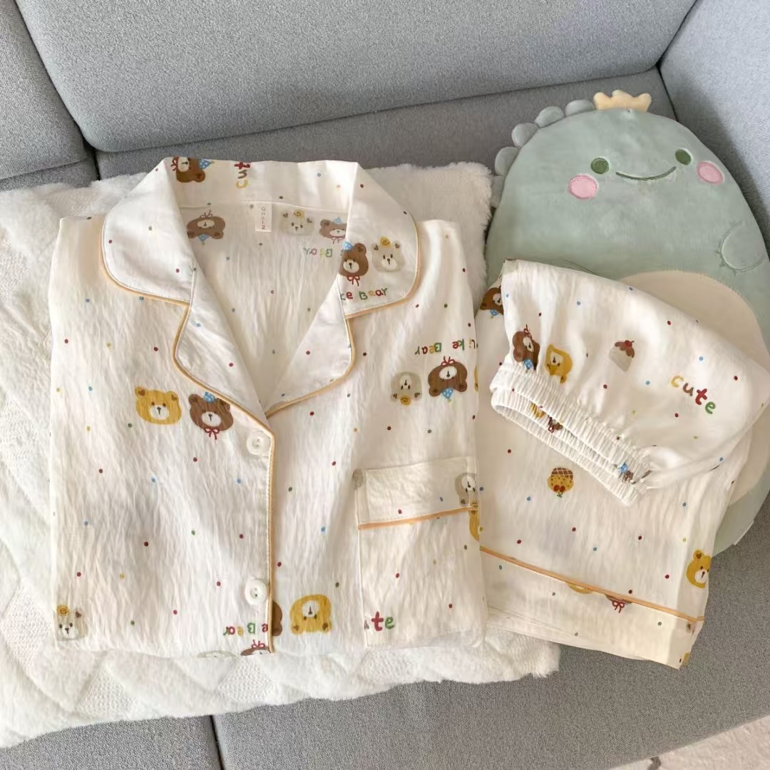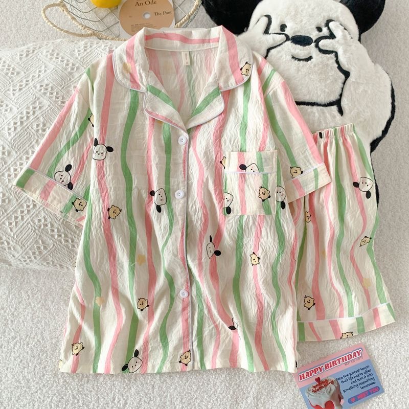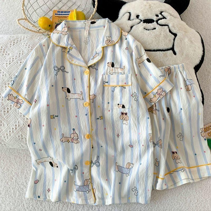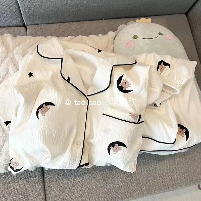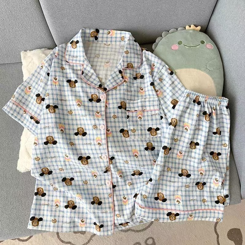 2025 여성을위한 새로운 클라우드 코튼 잠옷 여름 반팔 만화 귀여운 느슨한 소녀는 집 밖에서 옷 세트를 입을 수 있습니다스토어 가기