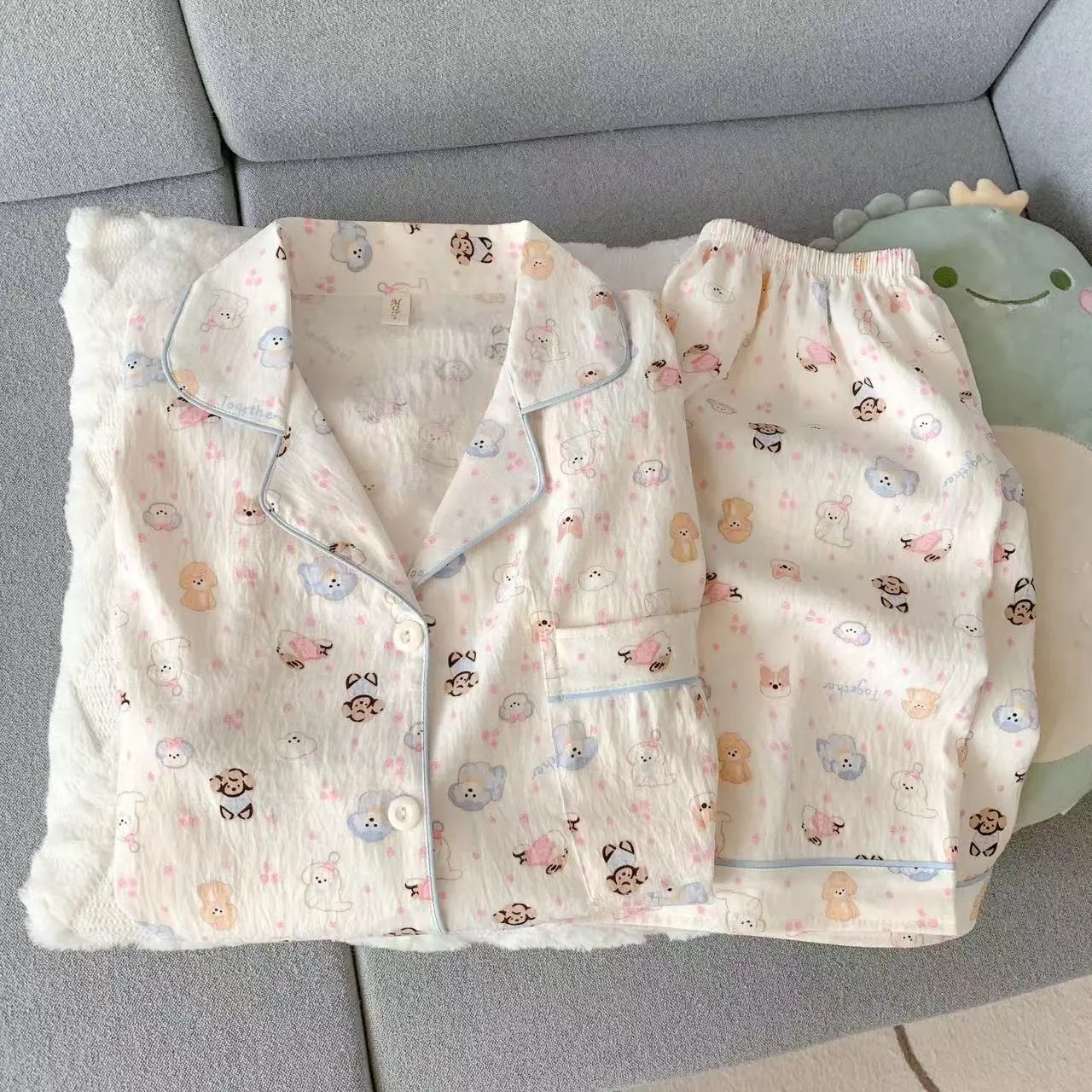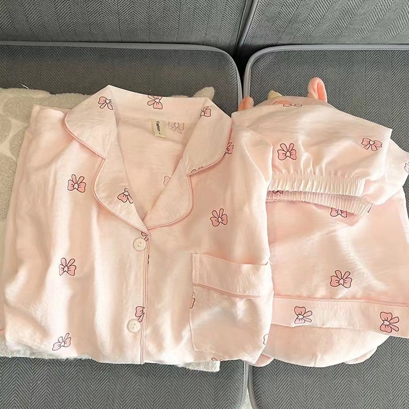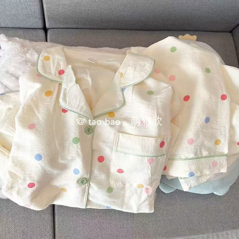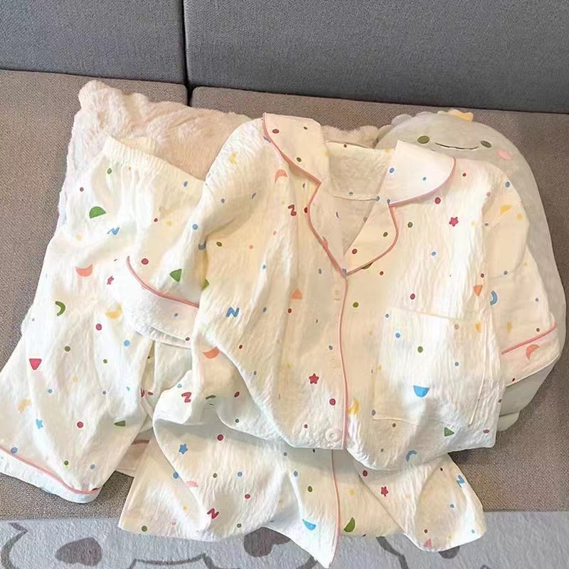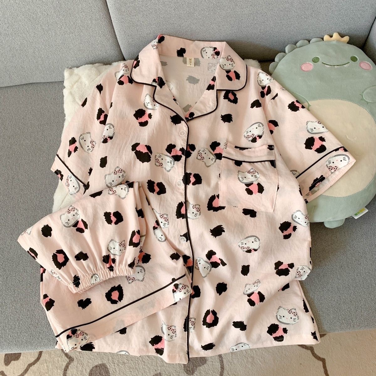 2025 여성을위한 새로운 클라우드 코튼 잠옷 여름 반팔 만화 귀여운 느슨한 소녀는 집 밖에서 옷 세트를 입을 수 있습니다스토어 가기