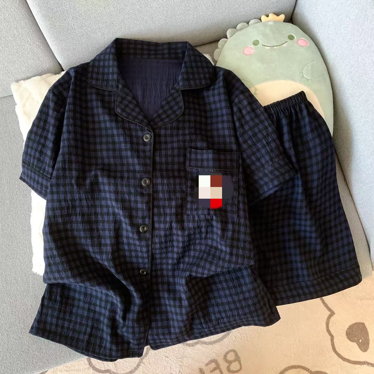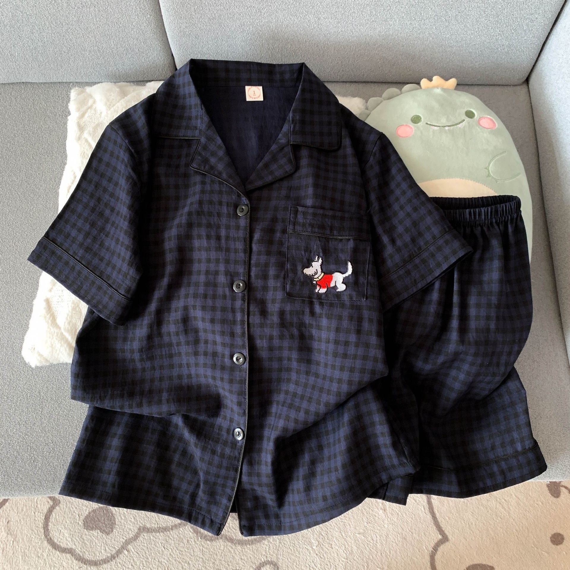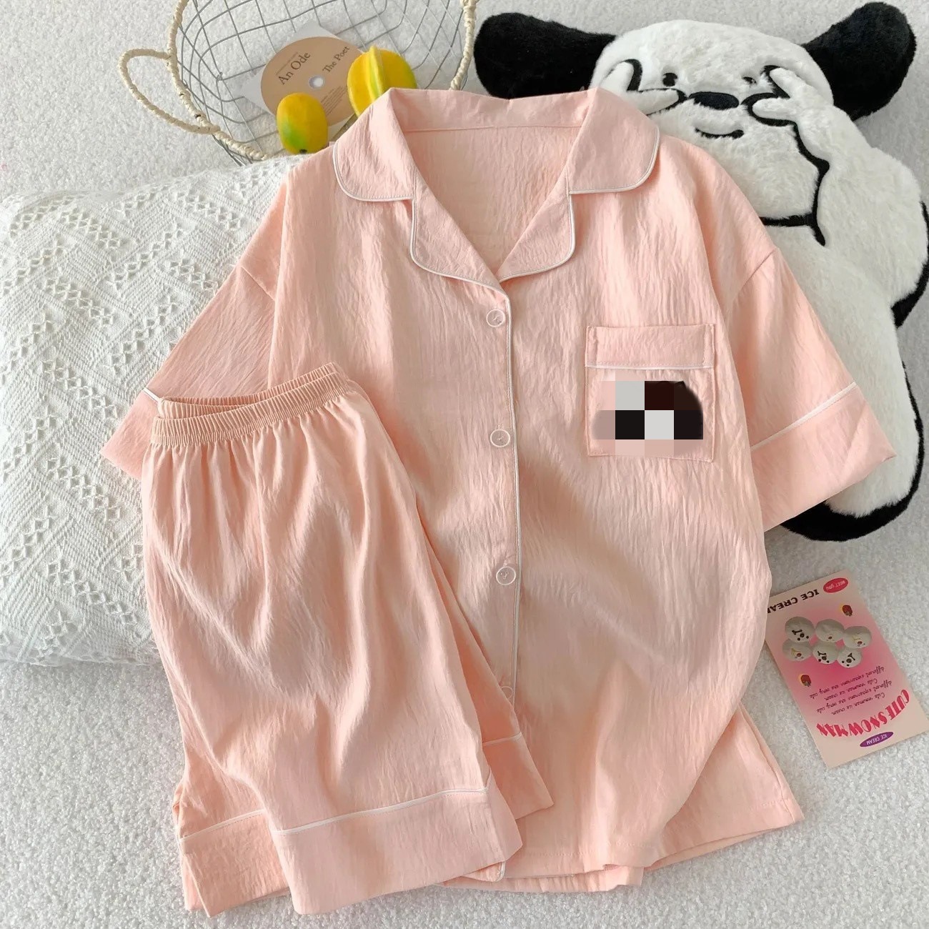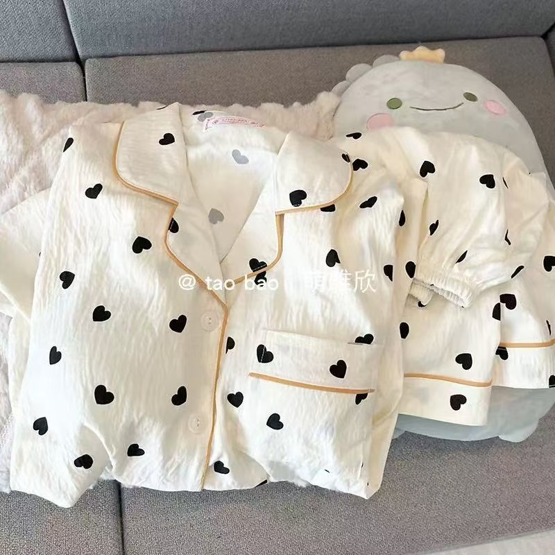 2025 여성을위한 새로운 클라우드 코튼 잠옷 여름 반팔 만화 귀여운 느슨한 소녀는 집 밖에서 옷 세트를 입을 수 있습니다스토어 가기
