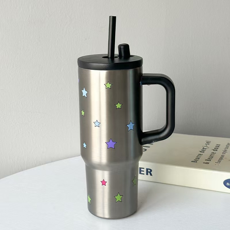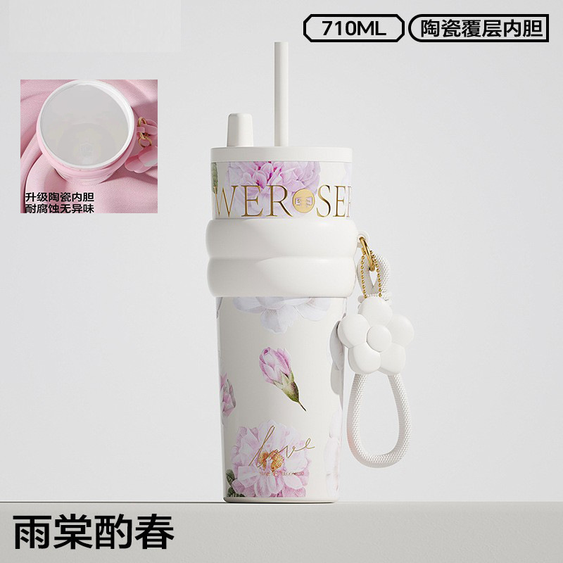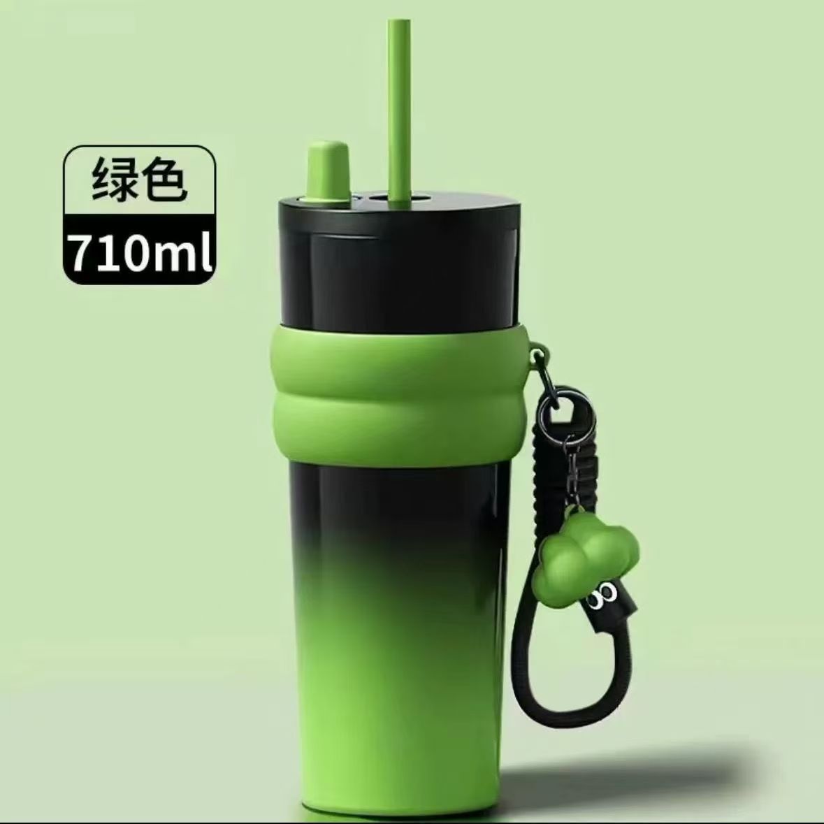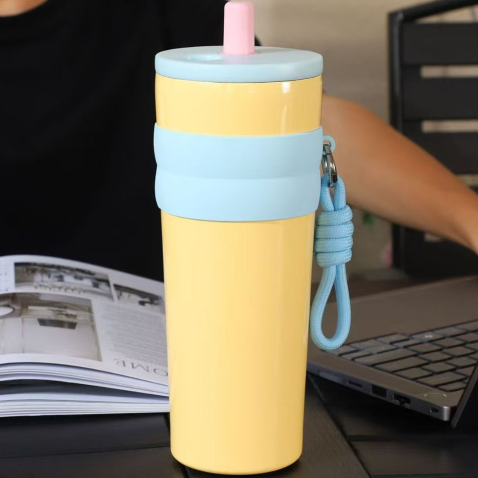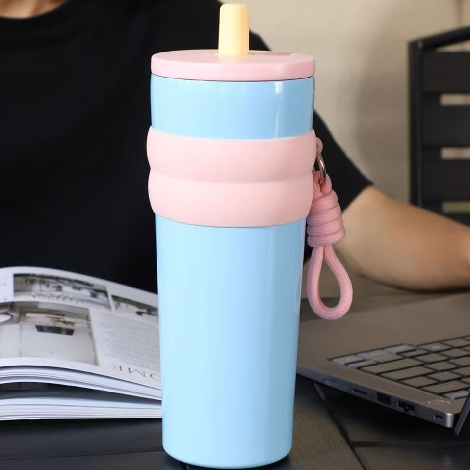 국경 간 대용량 스테인레스 스틸 보온병 컵 휴대용 로프 휴대용 자동차 컵 창조적 인 고가의 짚 얼음 컵스토어 가기