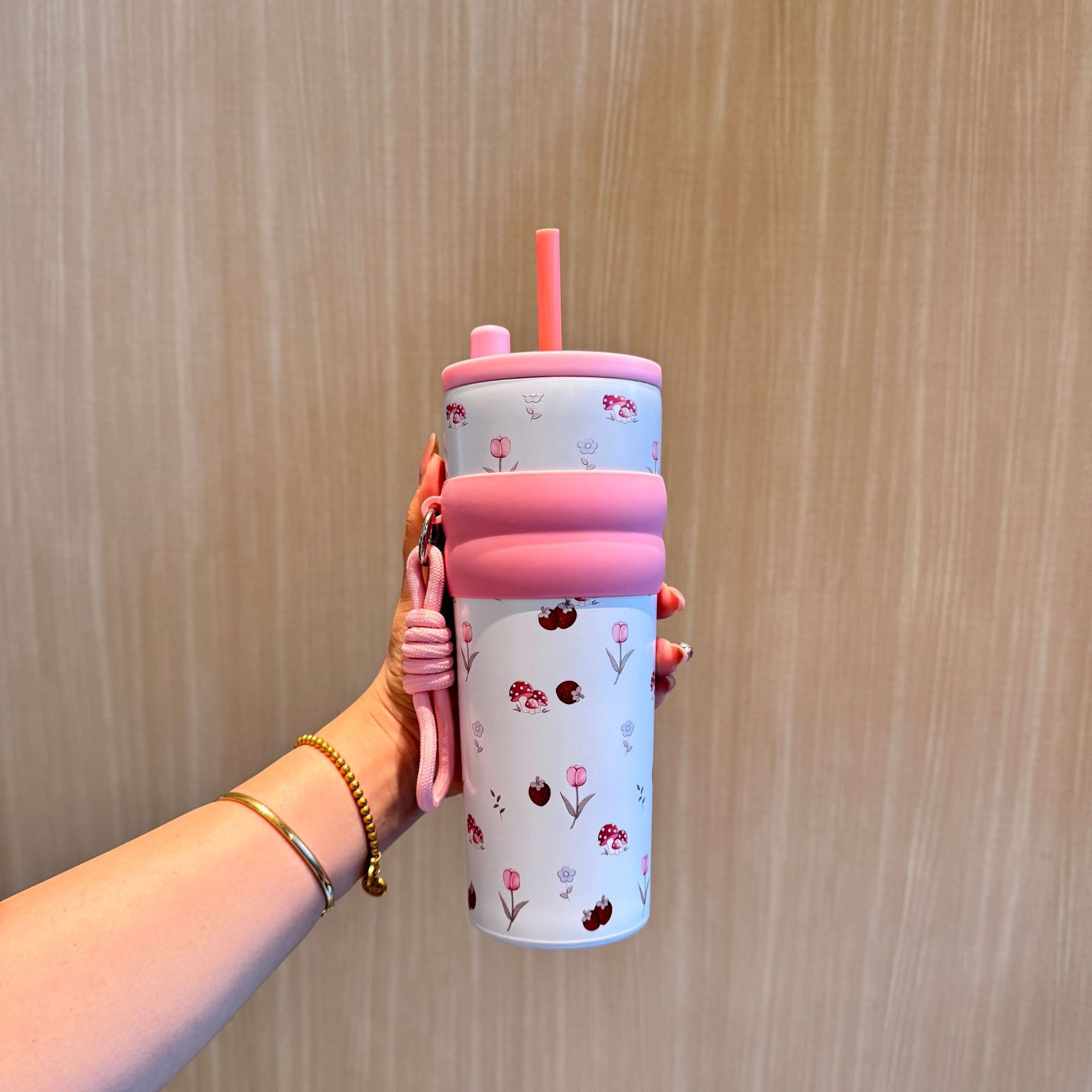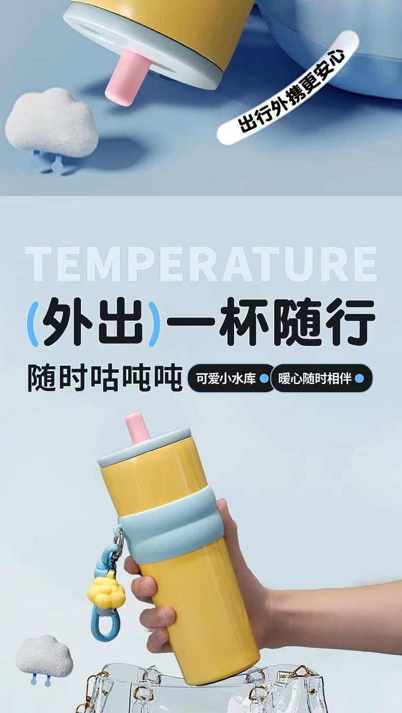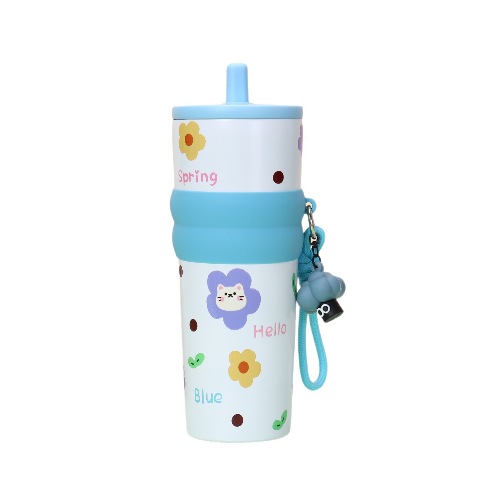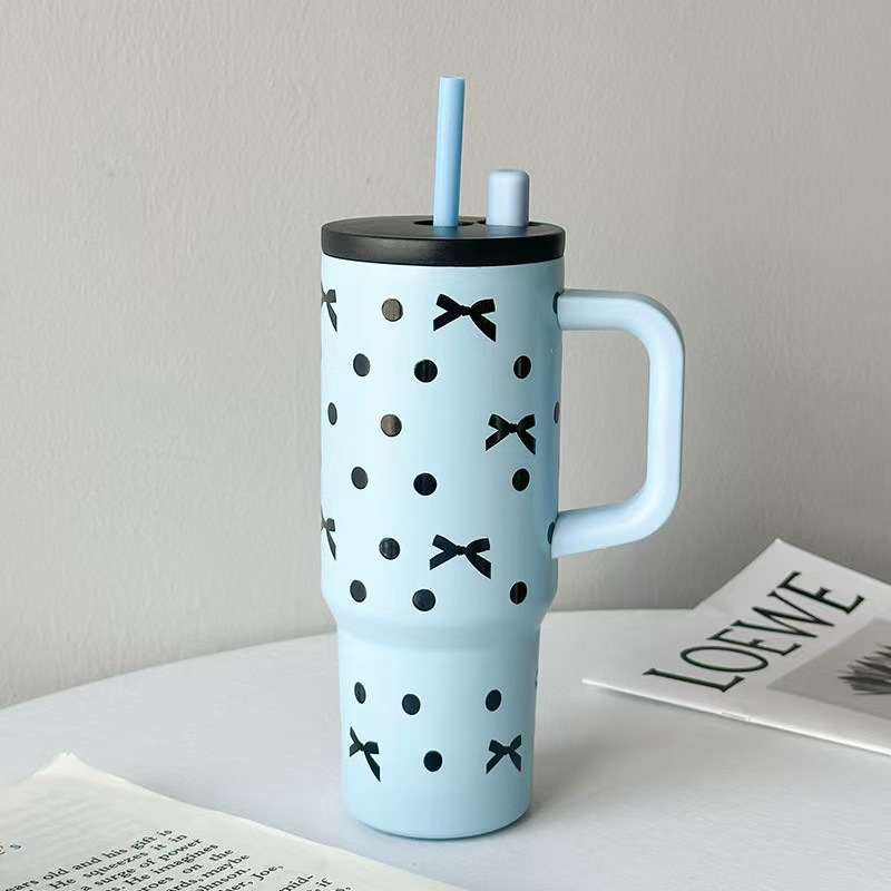 국경 간 대용량 스테인레스 스틸 보온병 컵 휴대용 로프 휴대용 자동차 컵 창조적 인 고가의 짚 얼음 컵스토어 가기
