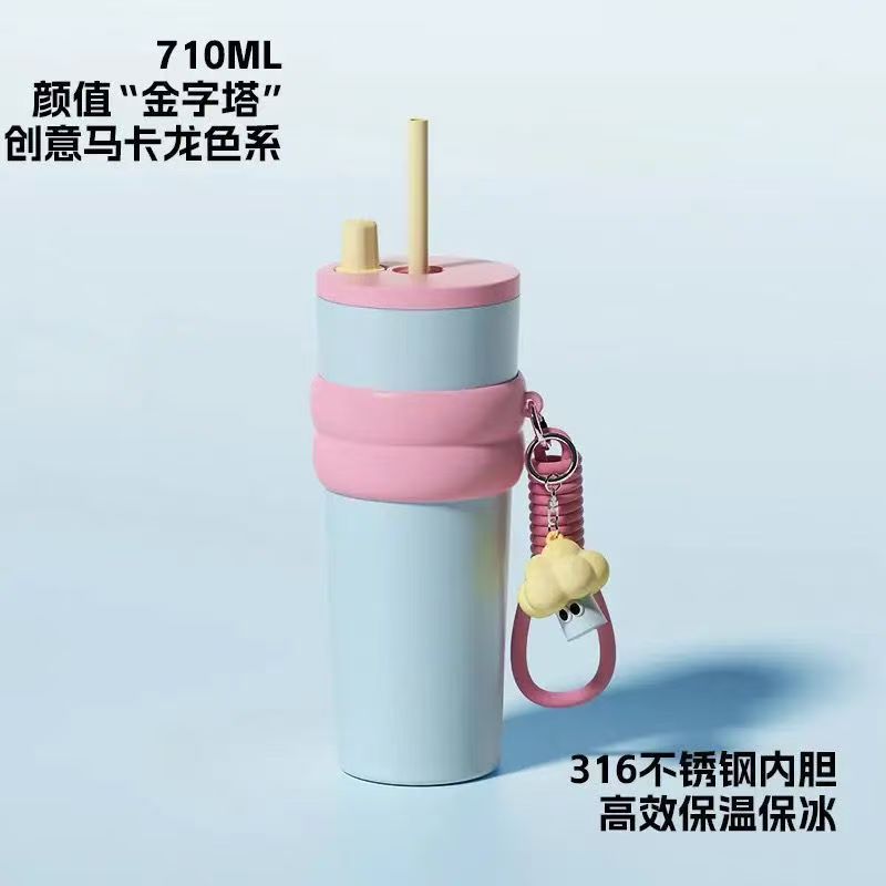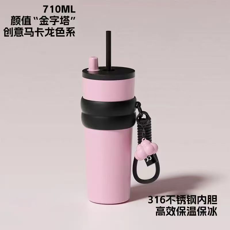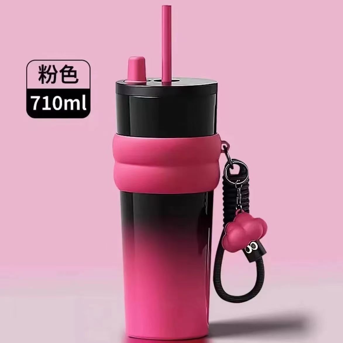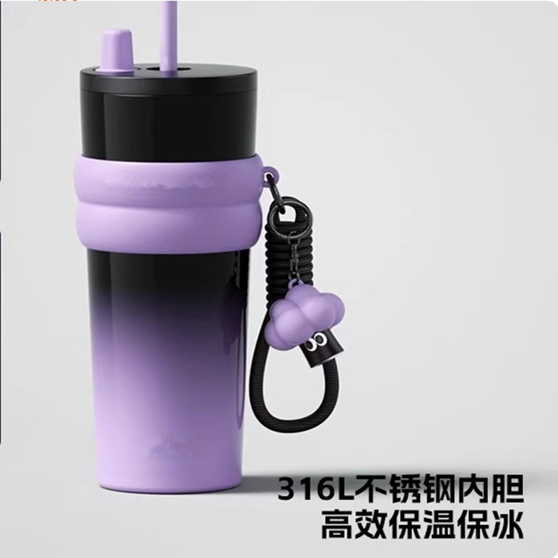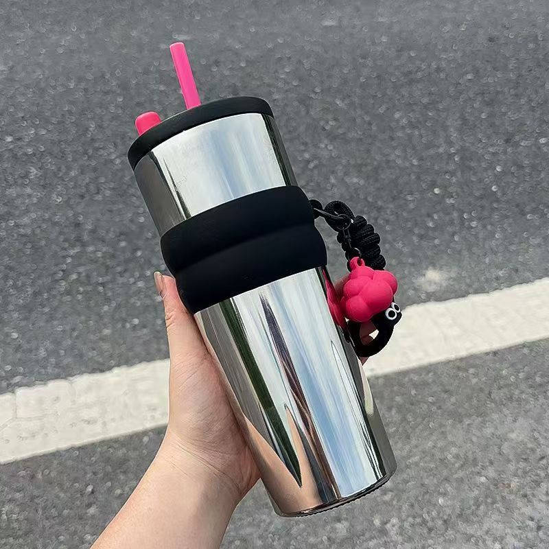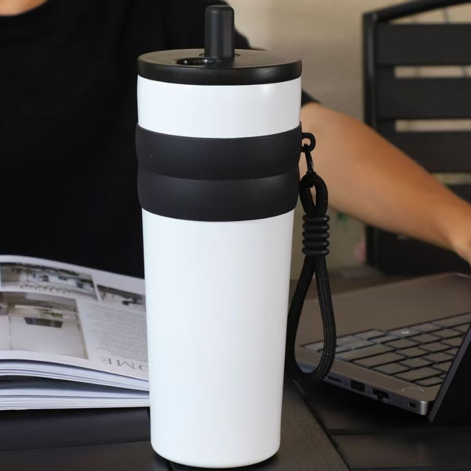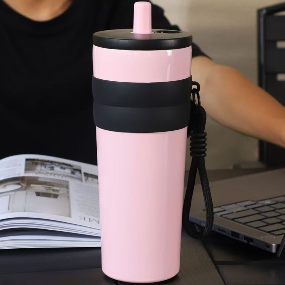 국경 간 대용량 스테인레스 스틸 보온병 컵 휴대용 로프 휴대용 자동차 컵 창조적 인 고가의 짚 얼음 컵