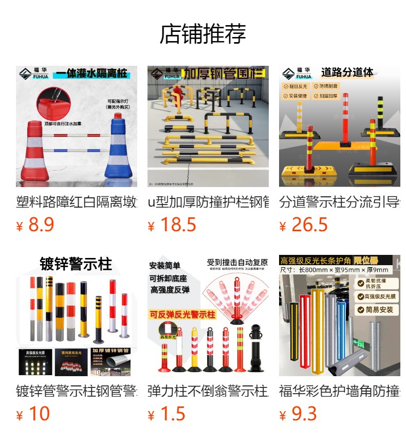 停车路障桩防撞柱反光弹力柱塑料橡胶警示柱立柱护栏PU道路隔离桩
