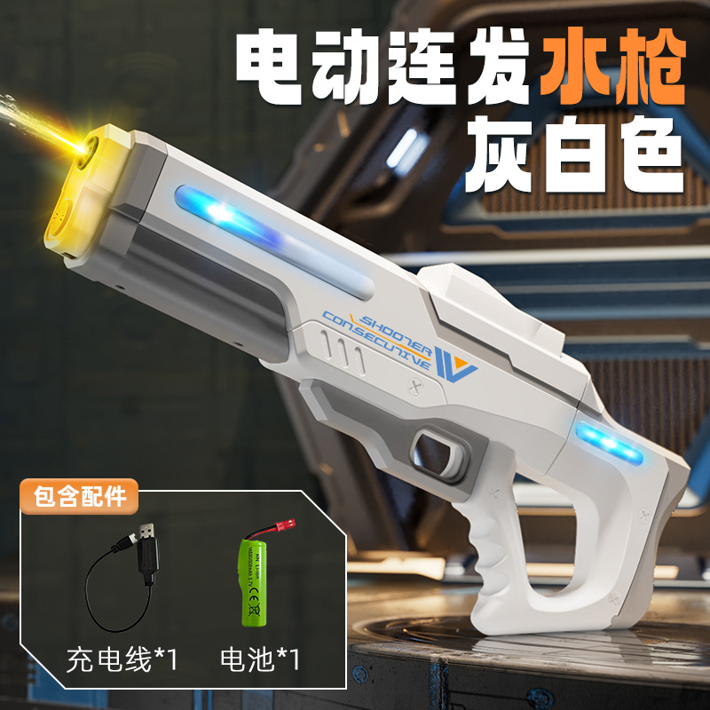 • [라이트 버전 - 그레이 화이트] 전동 버스트 물총 + 배터리 세트