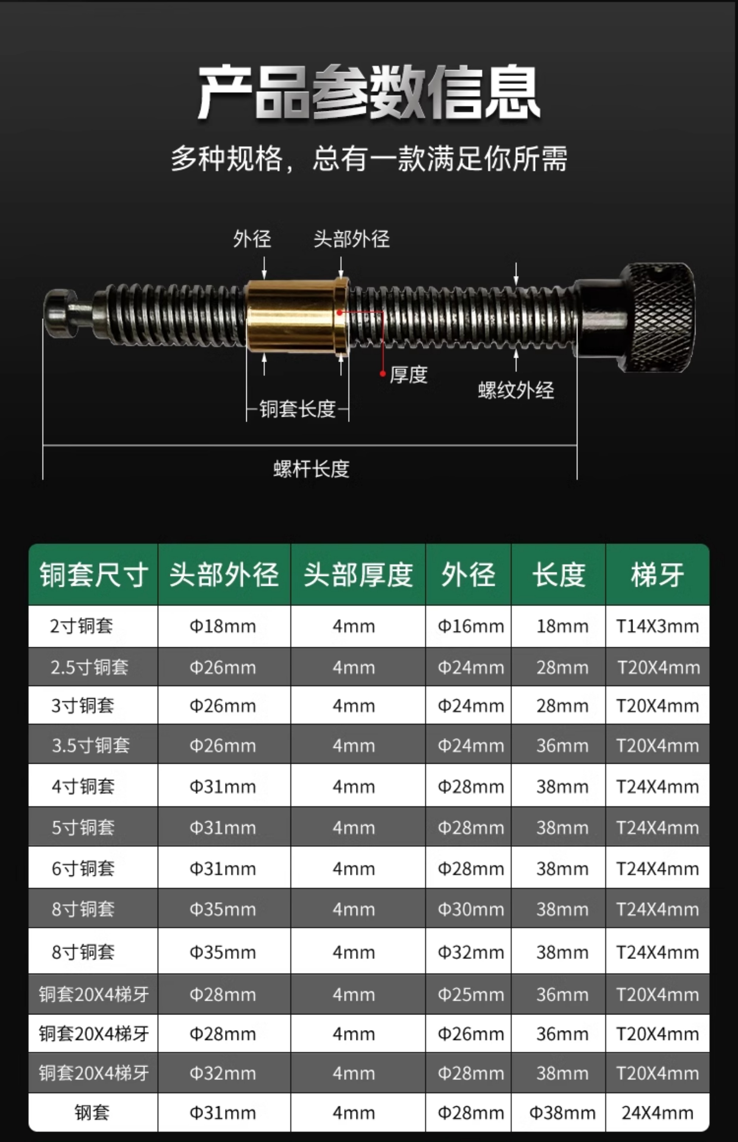 • 2inch 나사 막대(사다리 톱니 14x3)(구리 슬리브 제외)