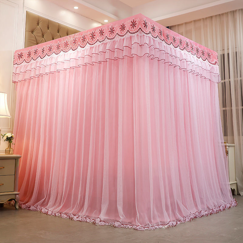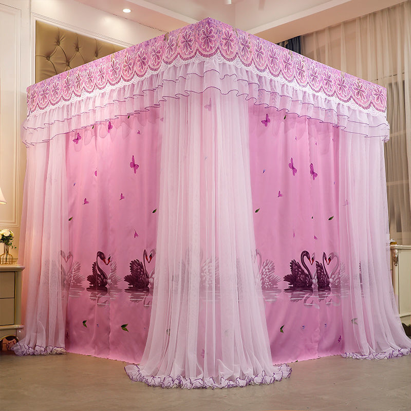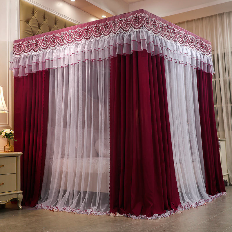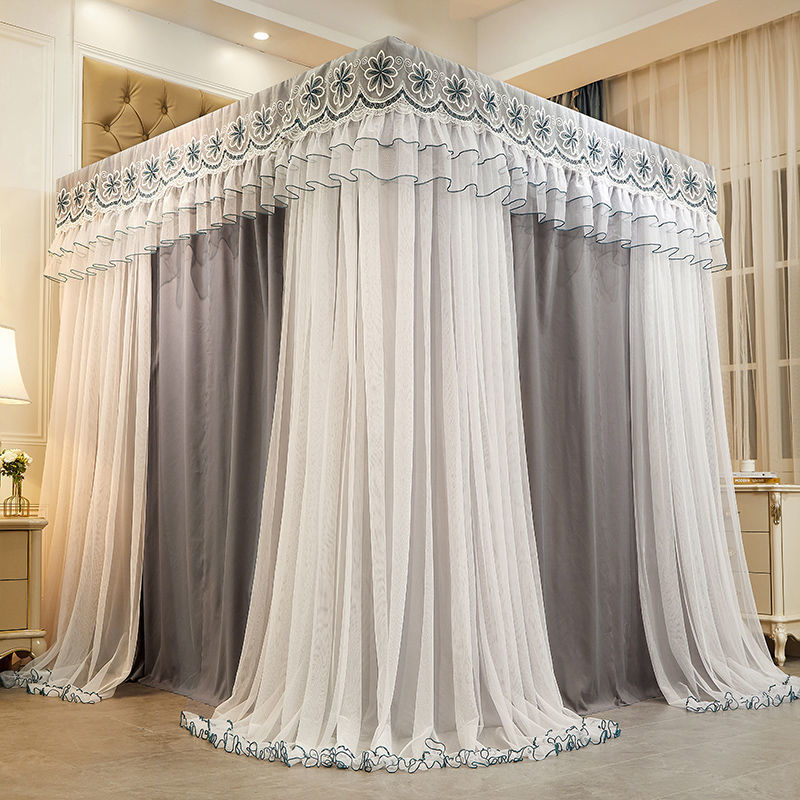 새로운 모기장 공주 스타일 하이 엔드 침대 커튼 브래킷 더블 로드 더블 레이어 차광 방진 방풍 따뜻한 바닥